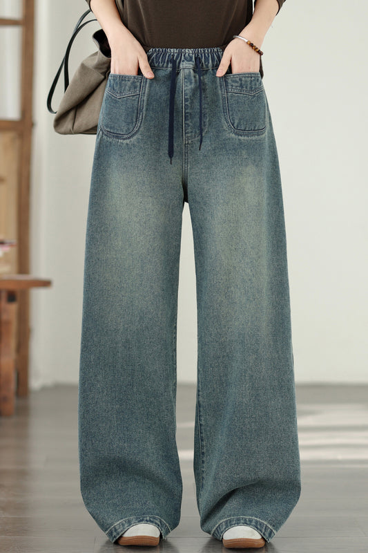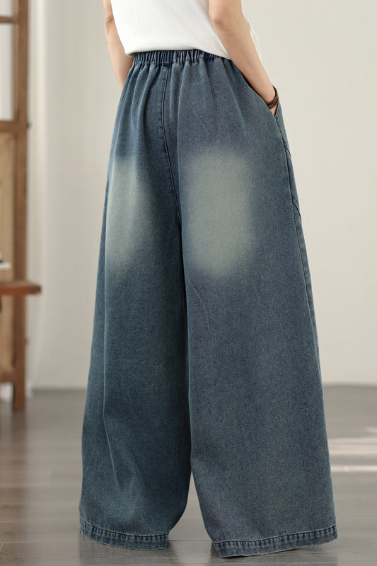Women's Jeans Elastic Waist Baggy Wide Leg Pants