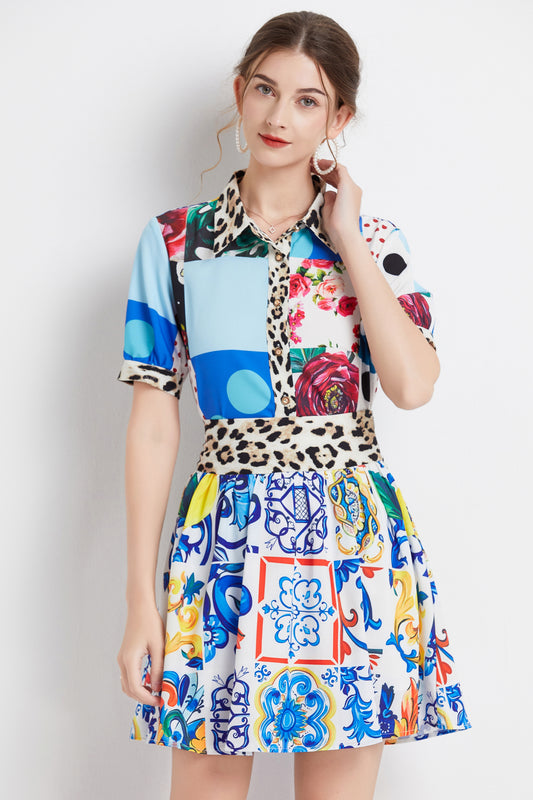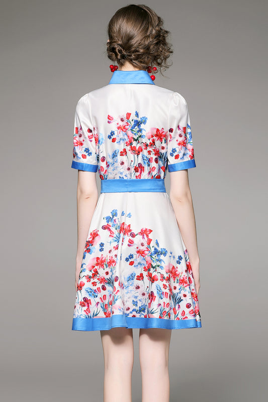 SSY-Women's Floral Lapel Collar Short Sleeve Mini Dress
