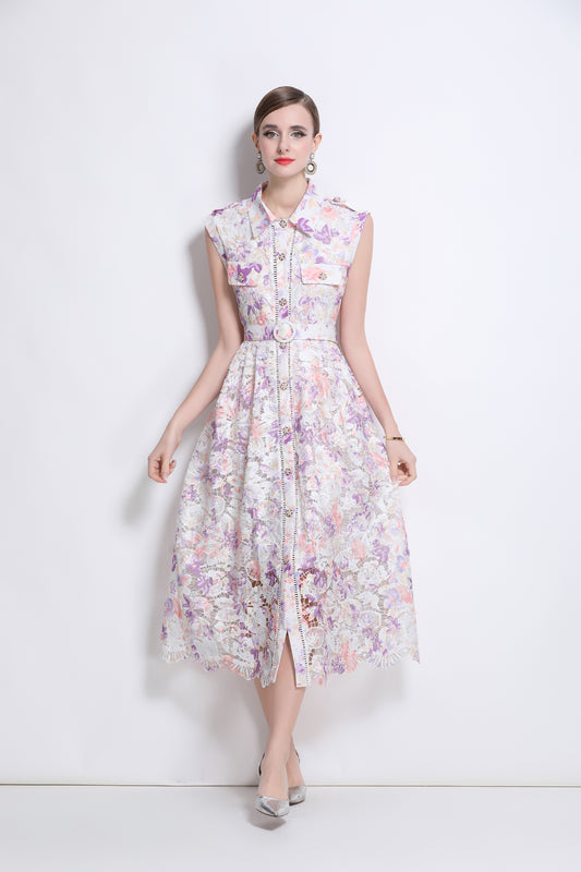 Stylish Lace Floral Print Shirt Dress with Belt - Perfect for Spring & Summer
