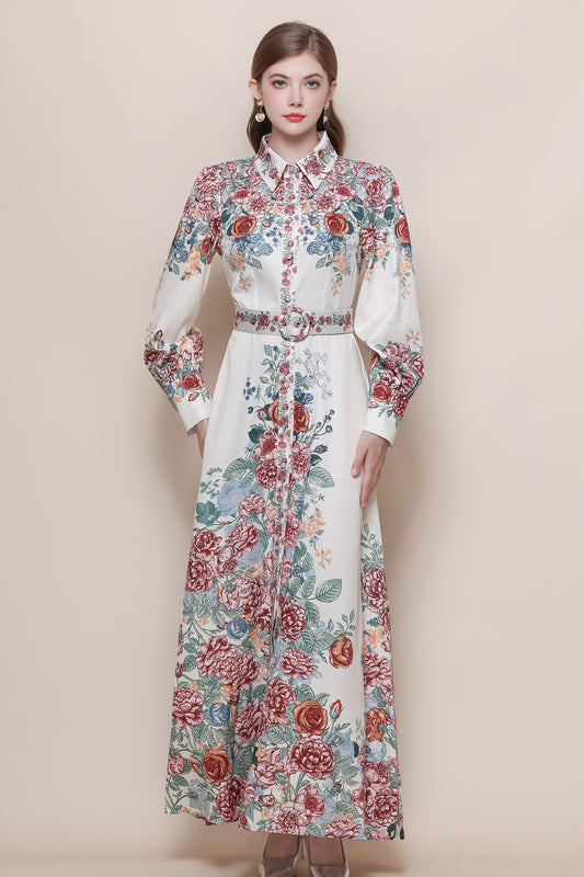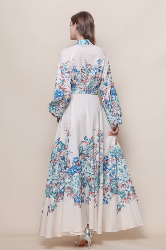 26-Women's Floral Print Puff Sleeve Button Maxi Dress