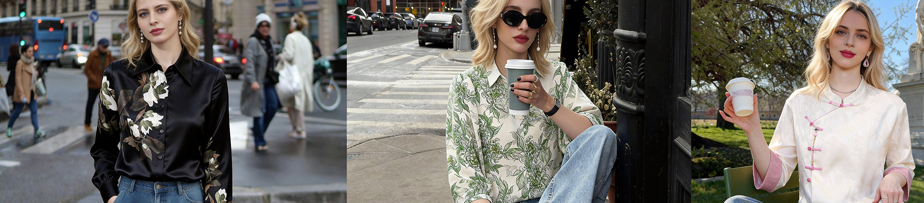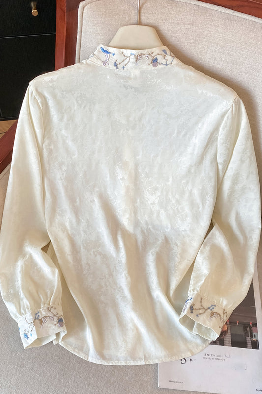 Women's Chinese Style Silk Satin Jacquard Shirt