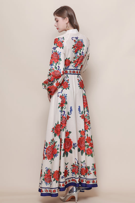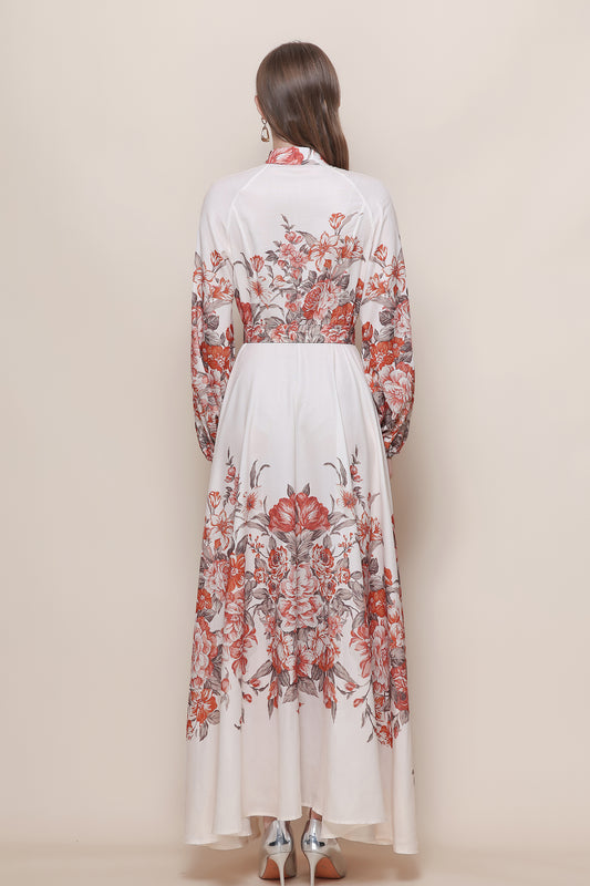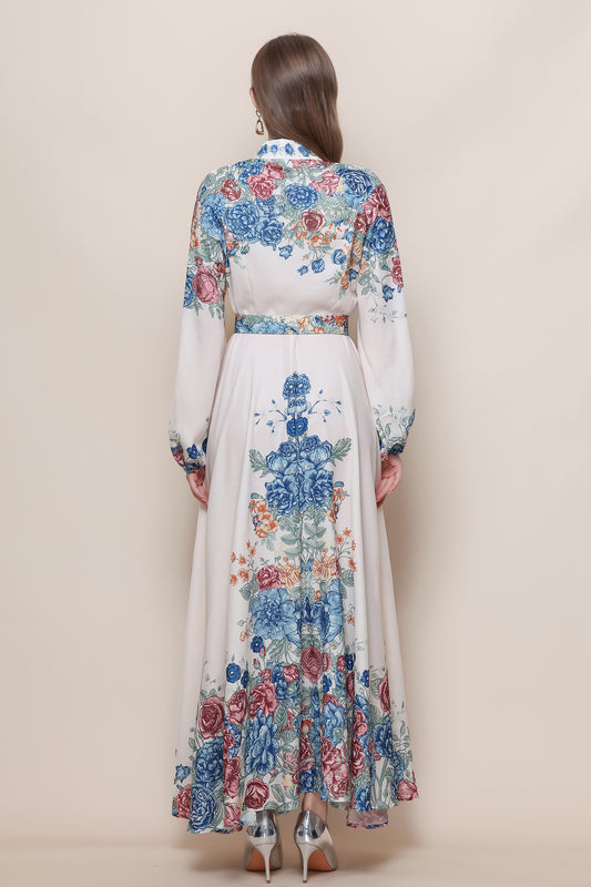 FSY-Women's Floral Print Long Sleeve Button Loose Maxi Dress