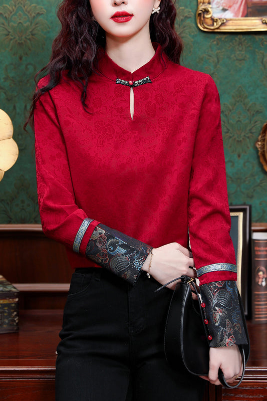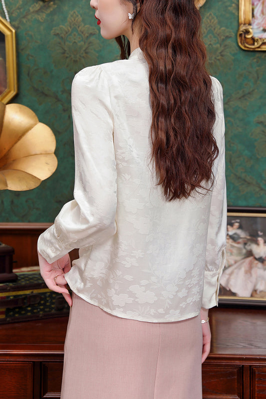 Women's Silk Satin Jacquard Long Sleeve Blouses
