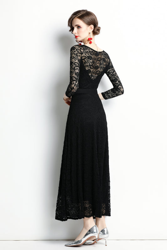 FSY-Women's Lace Floral U Neck Stretchy Maxi Dress
