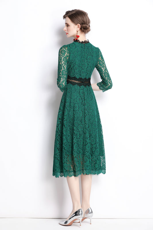 SSY-Women's 3/4 Sleeve Floral Lace Cocktail Midi Dress