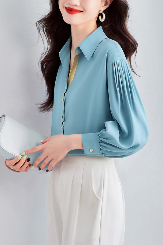 Women's Lapel Collar Long Sleeve Casual Button Blouse