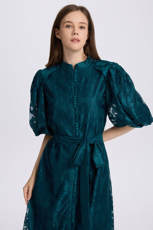 26-Women's Puff Sleeves Floral Print Button Maxi Dress