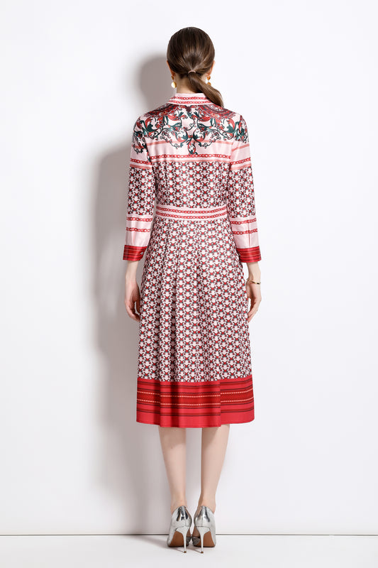 FSY-Women's Floral Print Button A-line Flowy Midi Dress