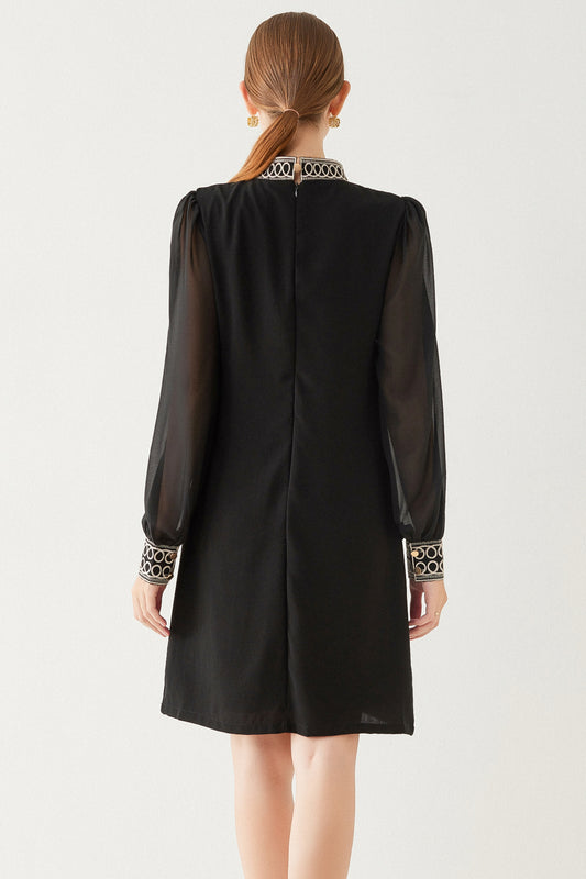 FSY-Women's Embroidered Floral Chiffon Round Neck Mini Dress