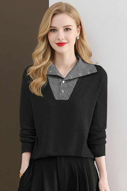 Women's Long Sleeve Sweater Lapel Collar Pullover Tops