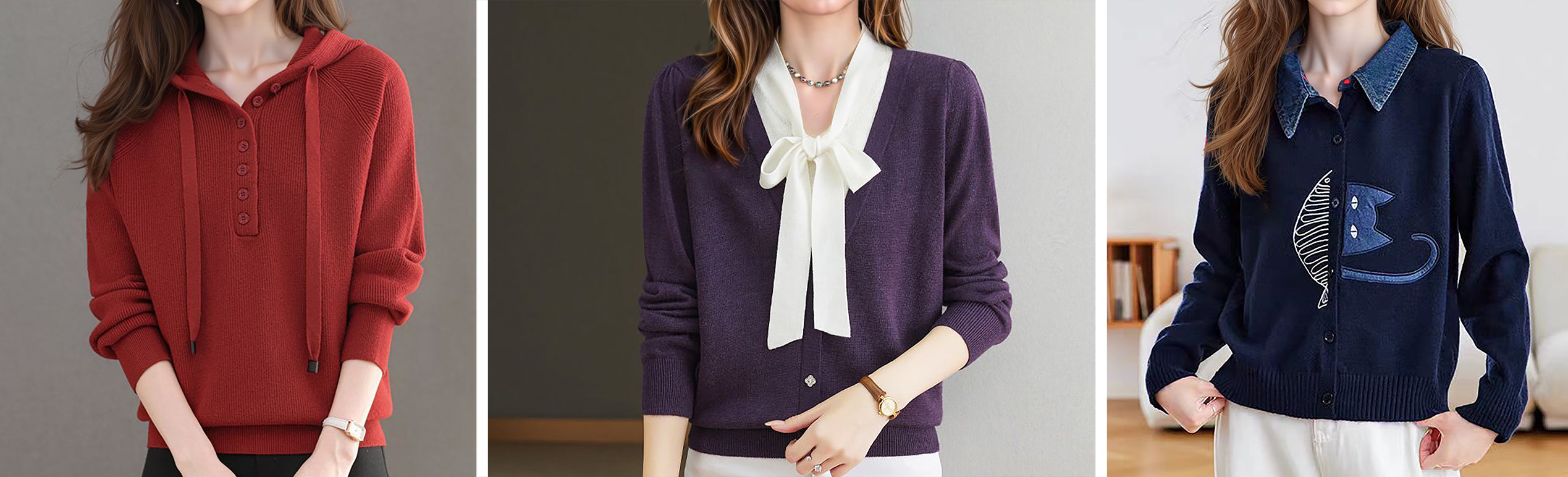 Women's Hoodie Sweaters Quarter Zip Knit Outfits