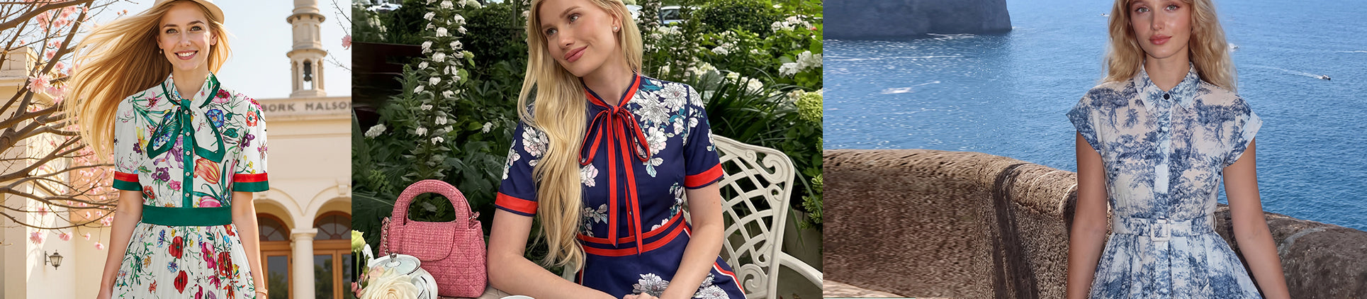 SSY-Women's Floral Lapel Collar Short Sleeve Mini Dress