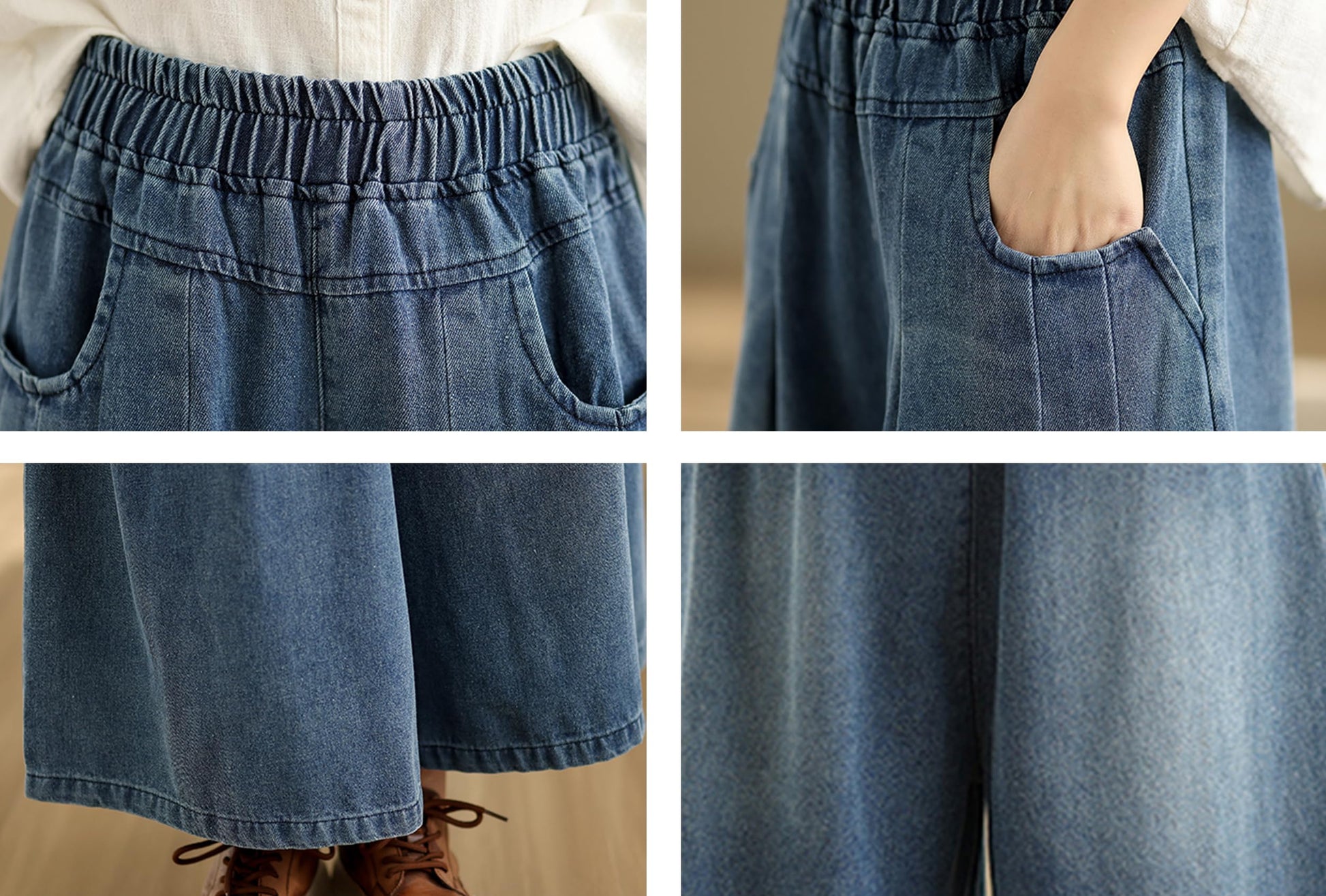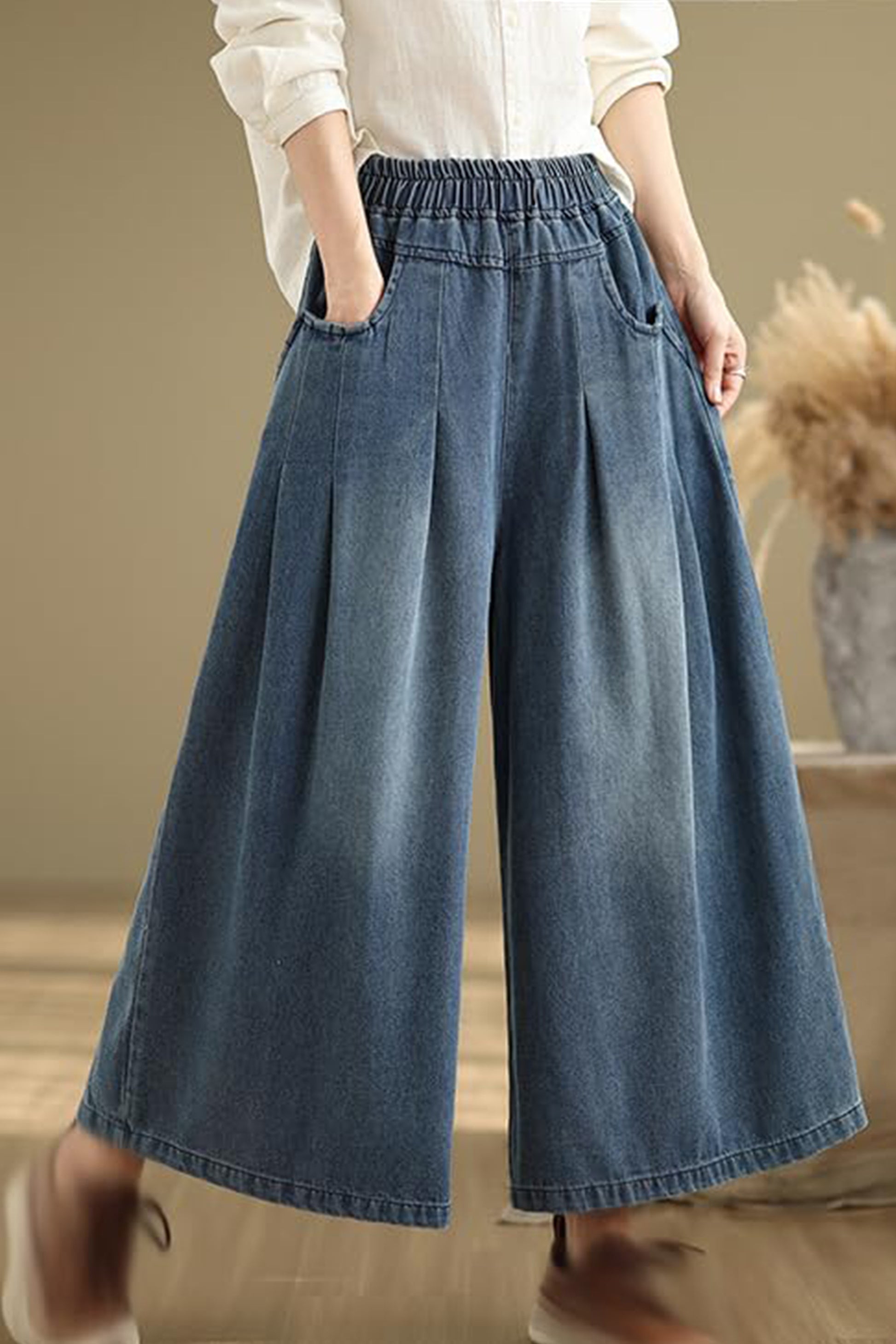 Features: Elastic waisted, Wide Leg, Loose fit, Double pockets.