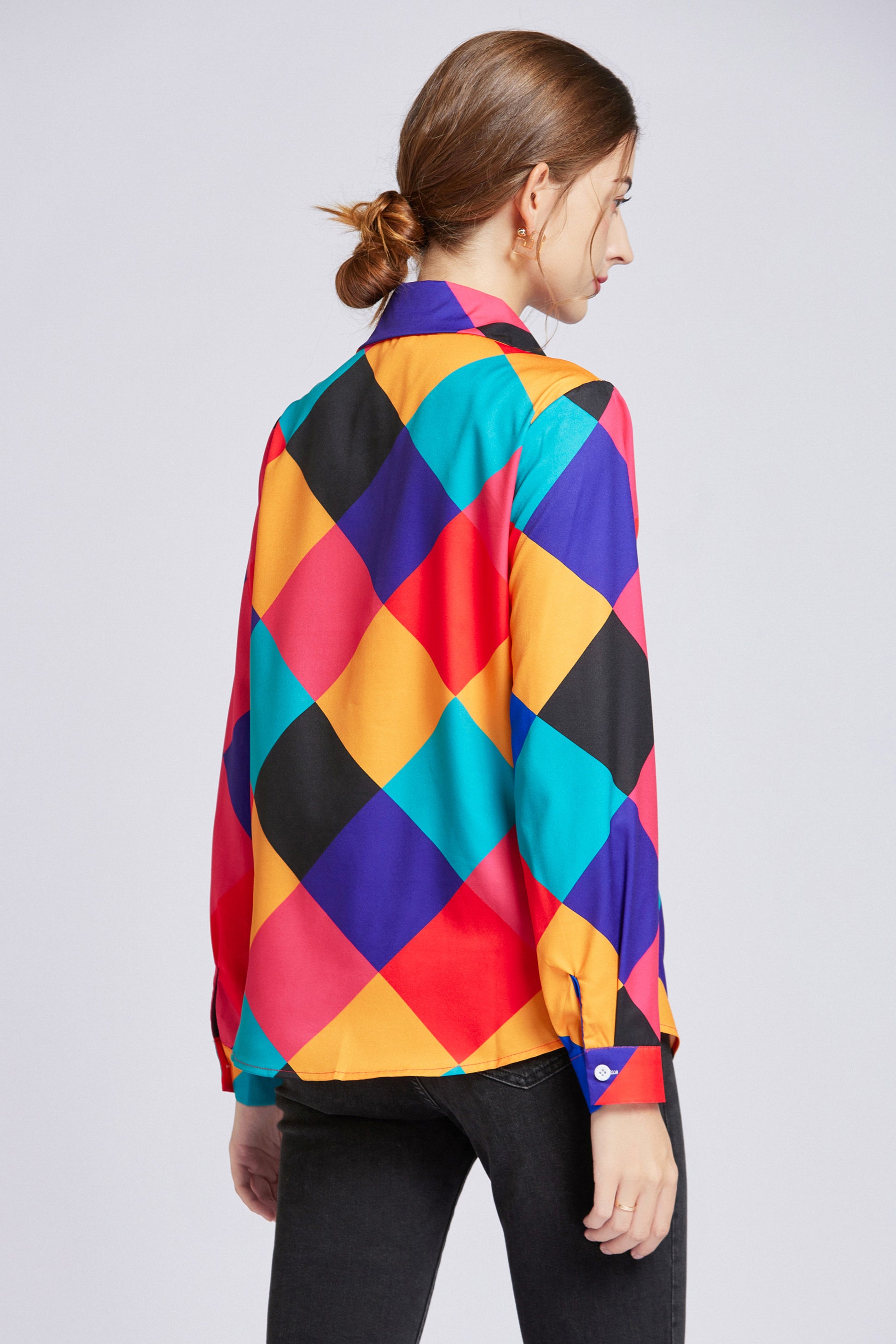 ESY-Women's Shirt Print Long Sleeve Button Blouse