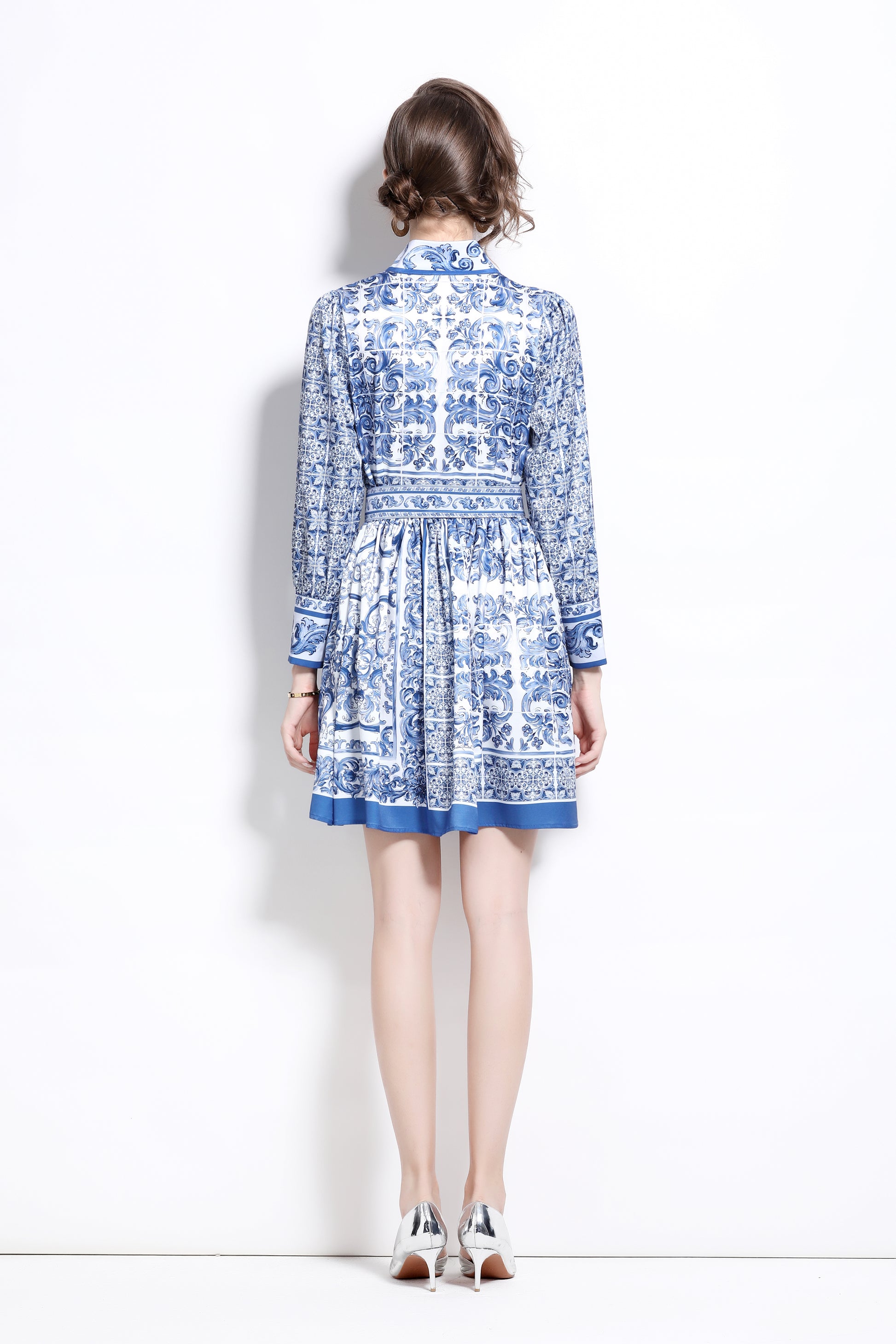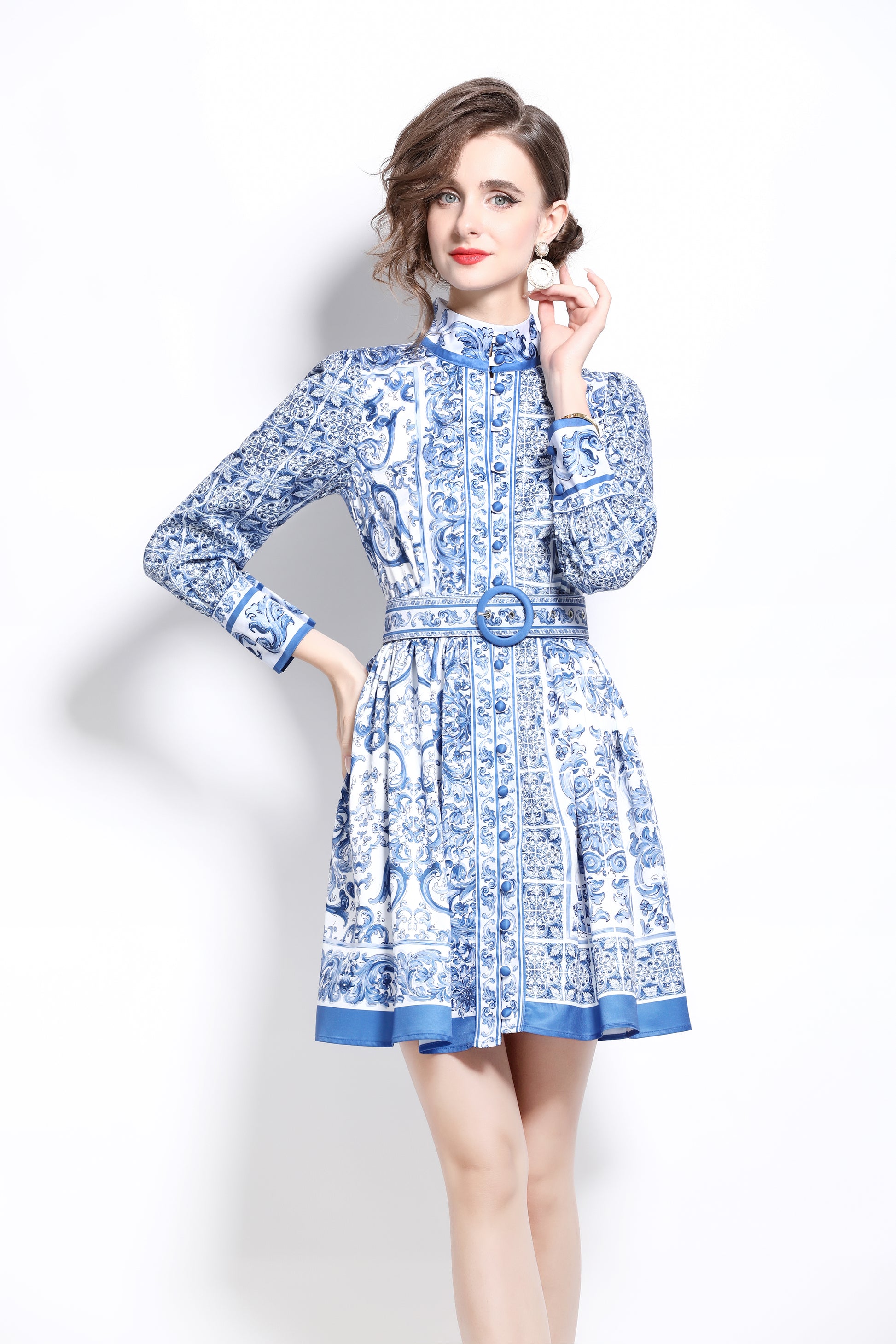 UNIQUE DESIGN:Long Sleeve,Button up,Fashion Floral printing design,high neck, mini length, with Belt
