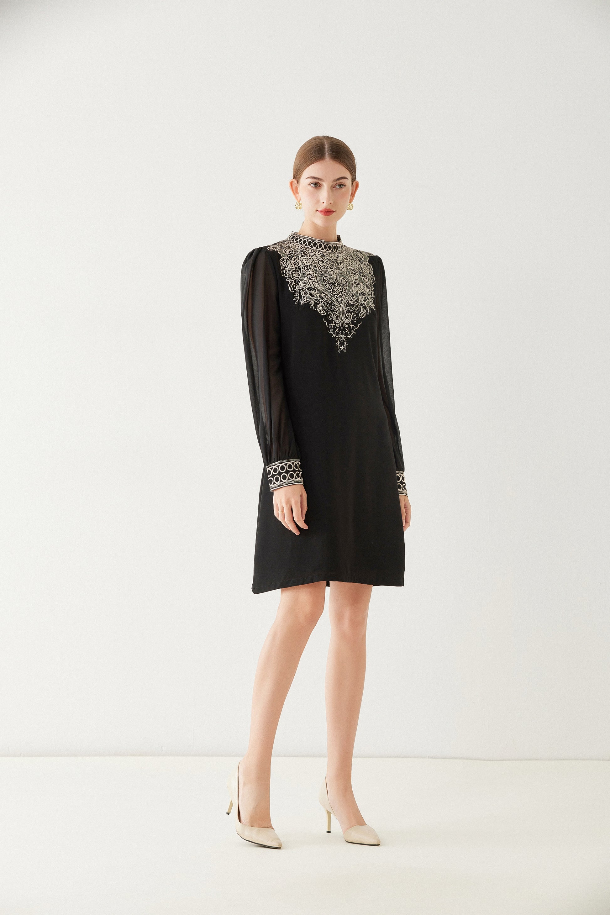 • Features:Gorgeous floral embroidered patterned,long sleeve,round neck,back zipper,short dress,chiffon dress,Casual Flowy Dress for Women.