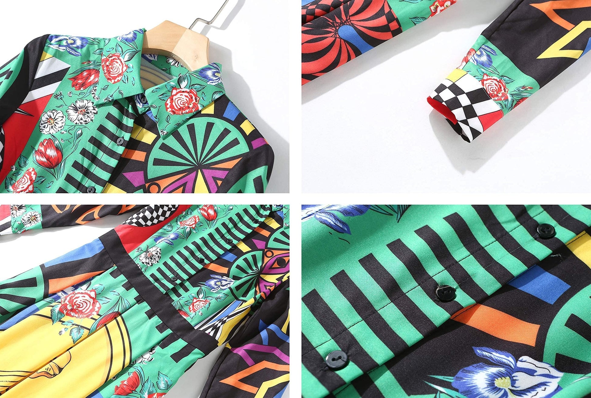 • Features:Collared neckline,With belt,Long Sleeve,Maxi length,Floral print,A-line,Button front fastening. It's long and flowy,high leg slit to still feel breezy and sexy.
