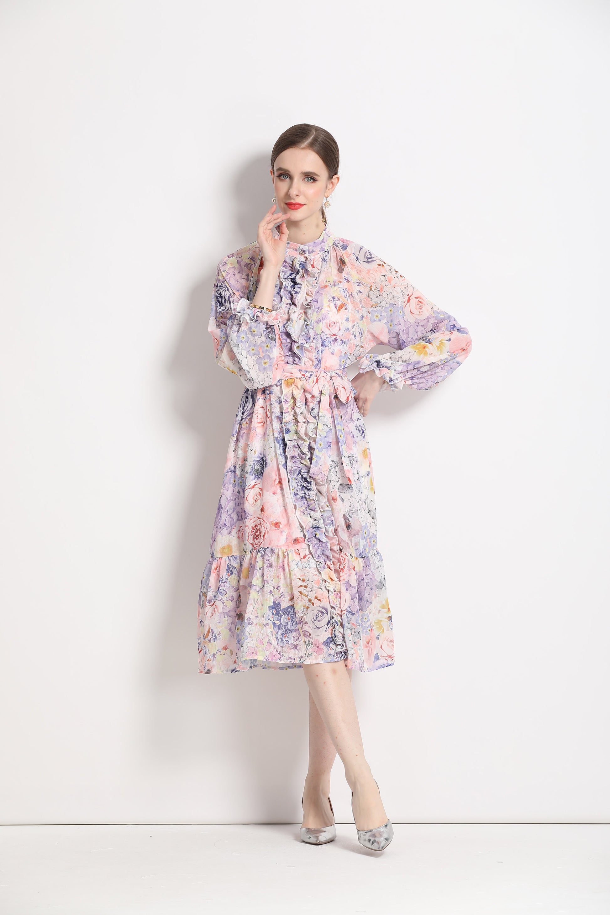 • Features: Front button, ruffled design, puff sleeves, long sleeve,floral print dress,belt,loose fit dress,boho dress for women,midi length,flowy summer dress.