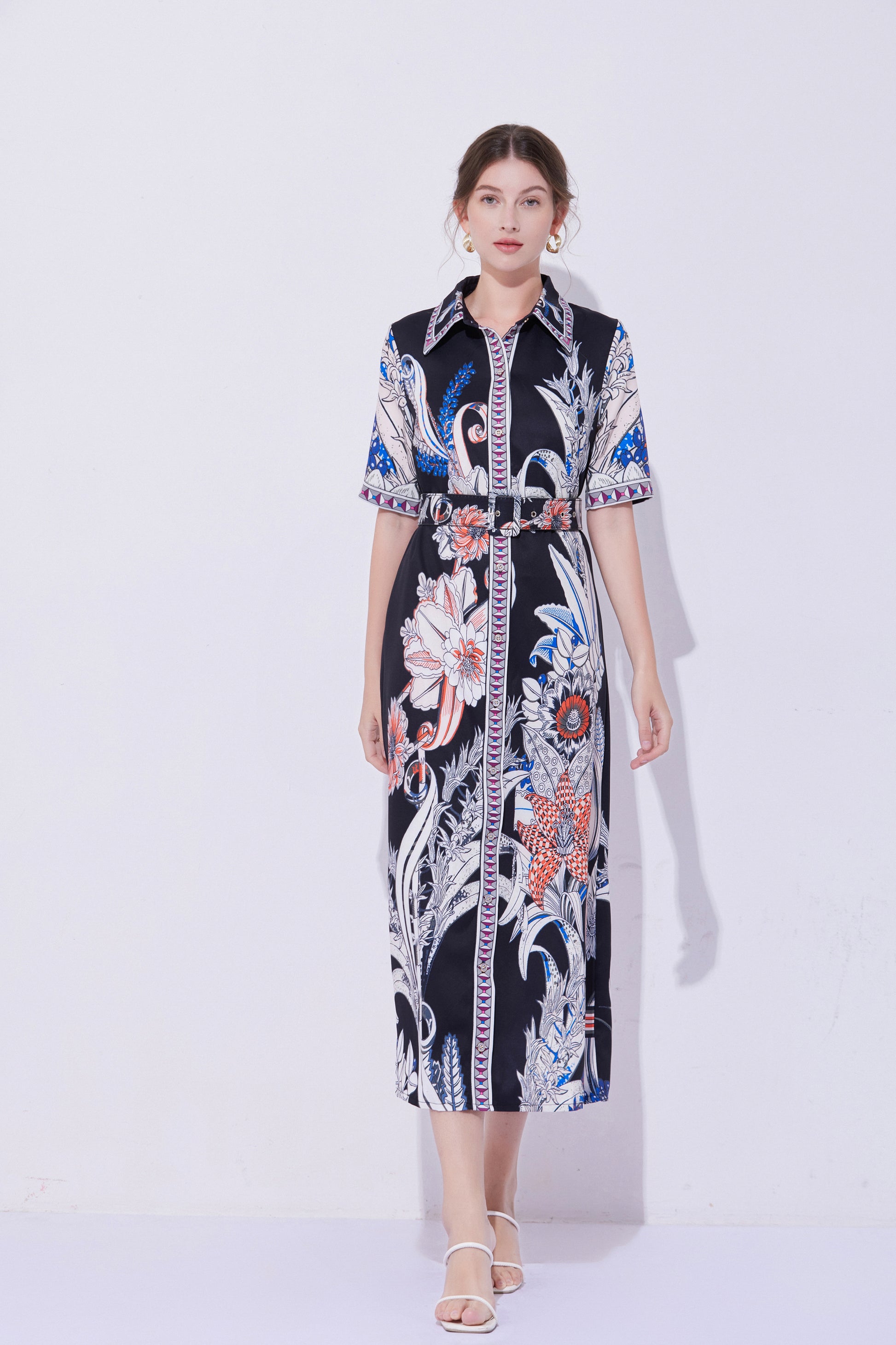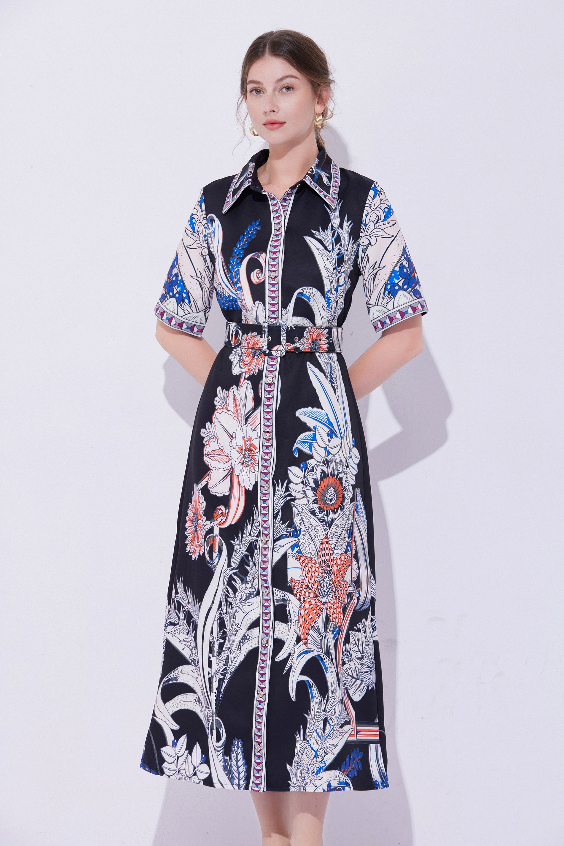 • Feature: Short sleeves, collar, belted waist, floral print, A-line flowy dress. Breathable and comfortable, perfect for spring and summer.