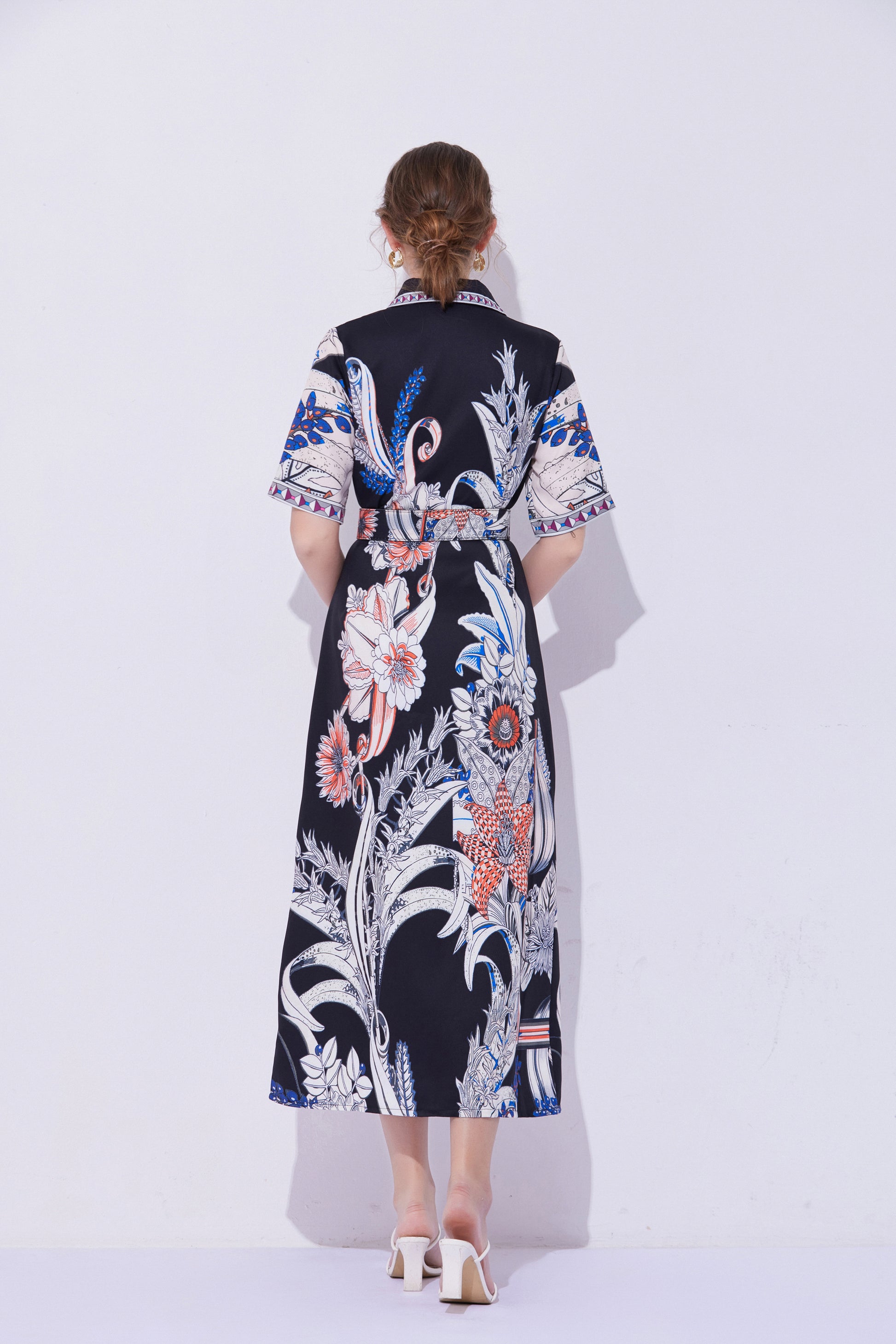 FSY-Women's Short Sleeve Collar Button Floral Midi Dress