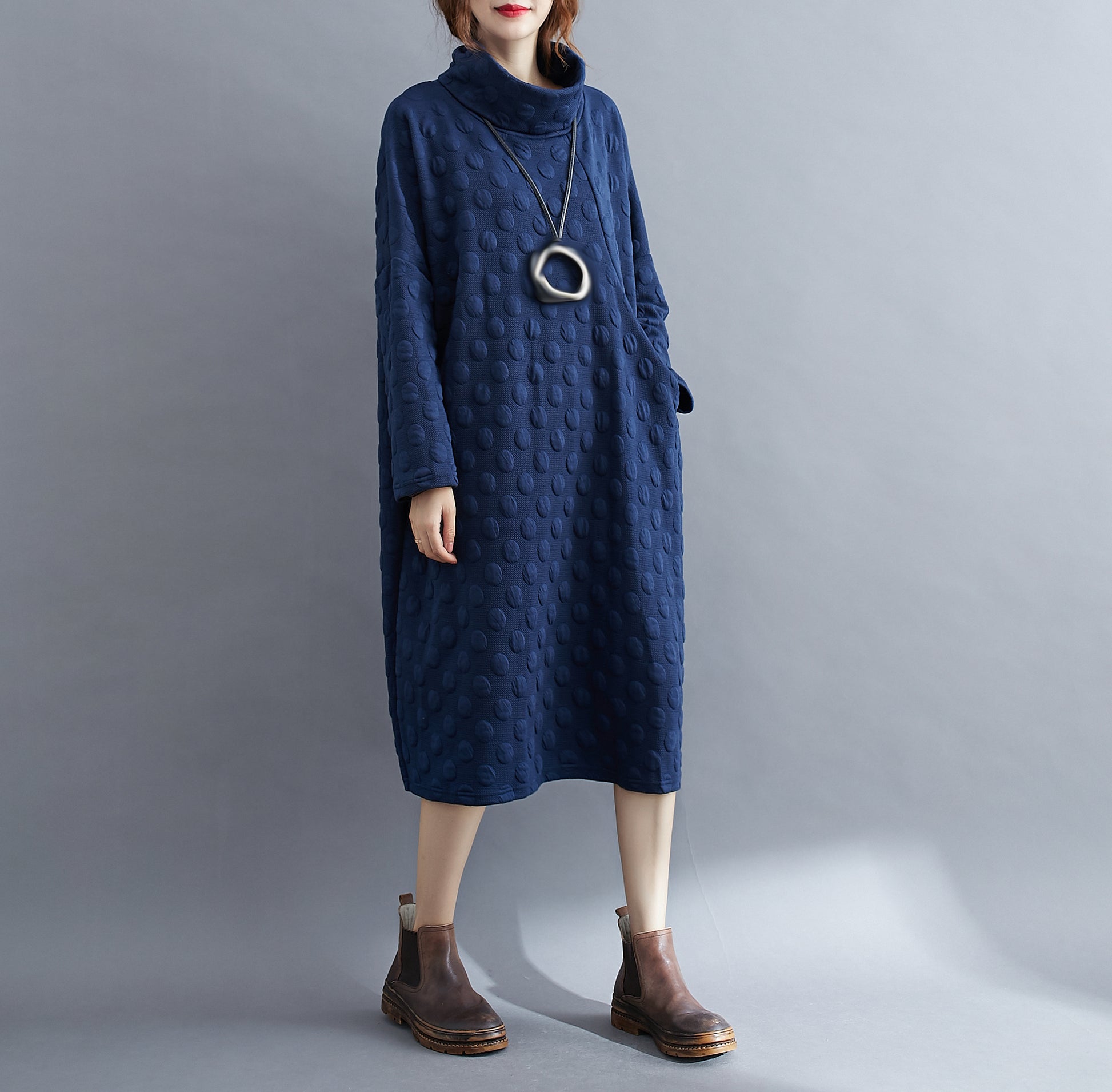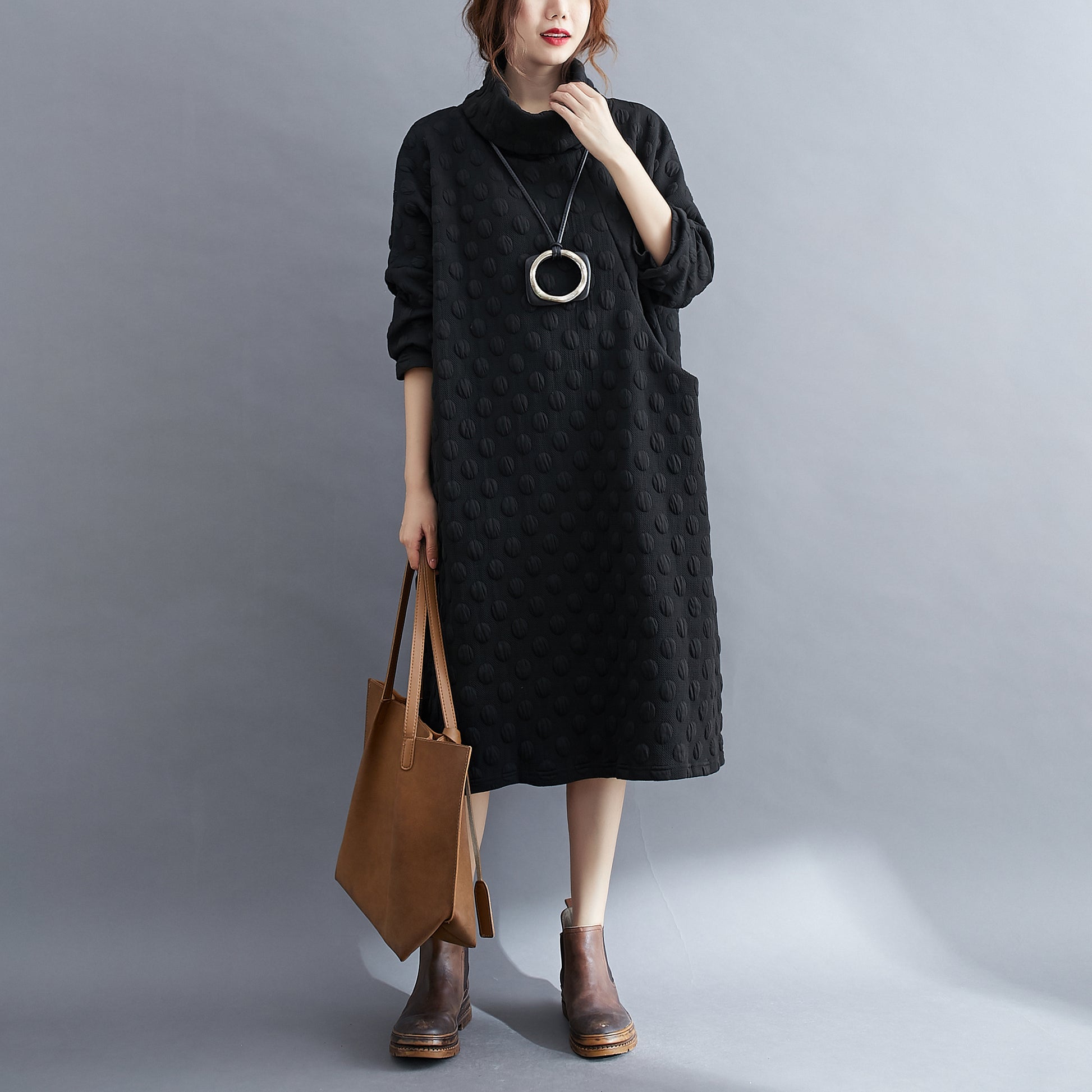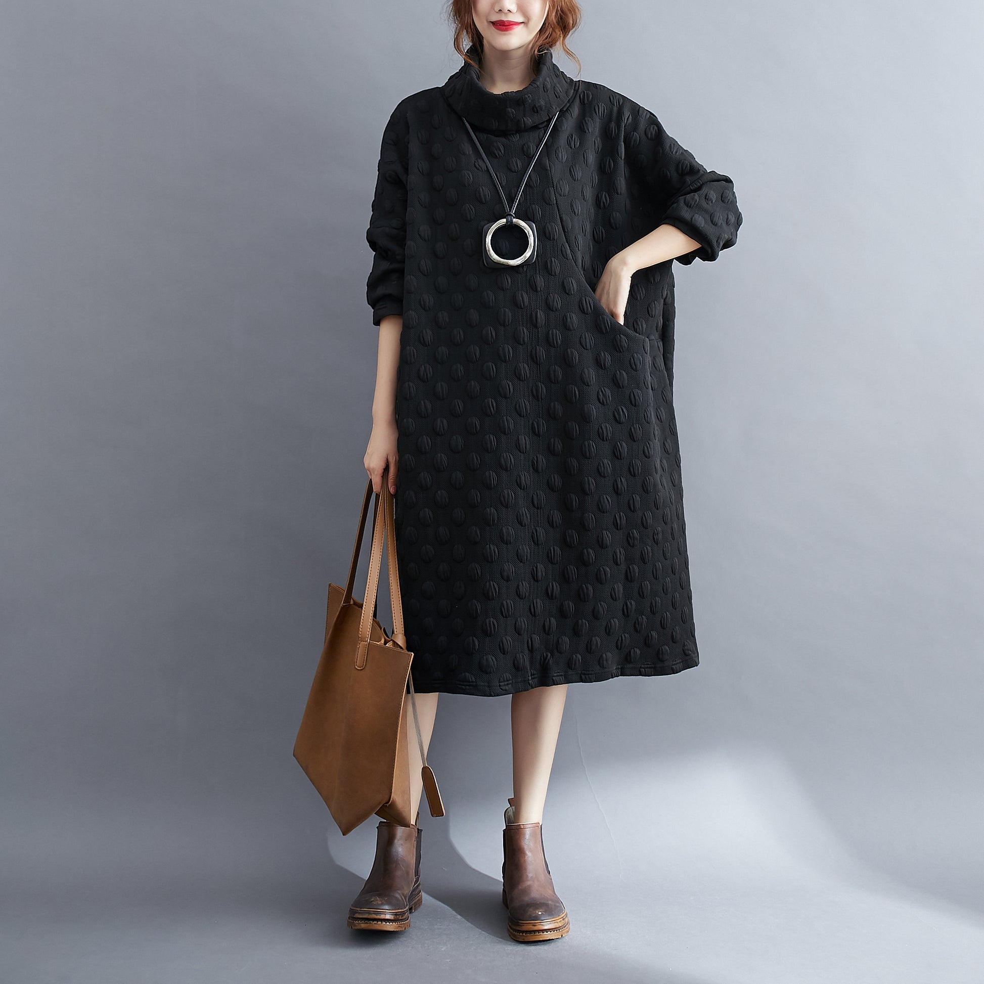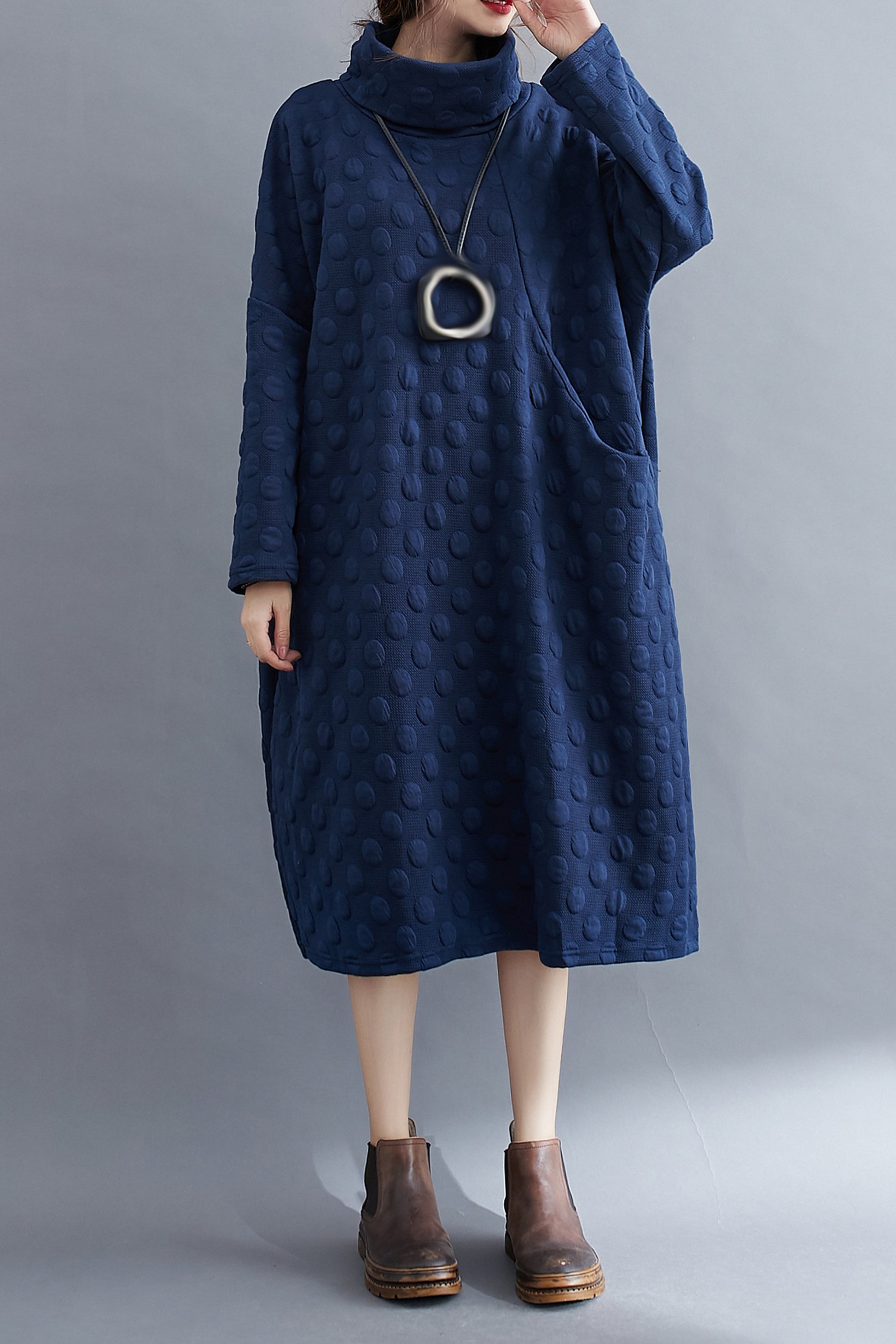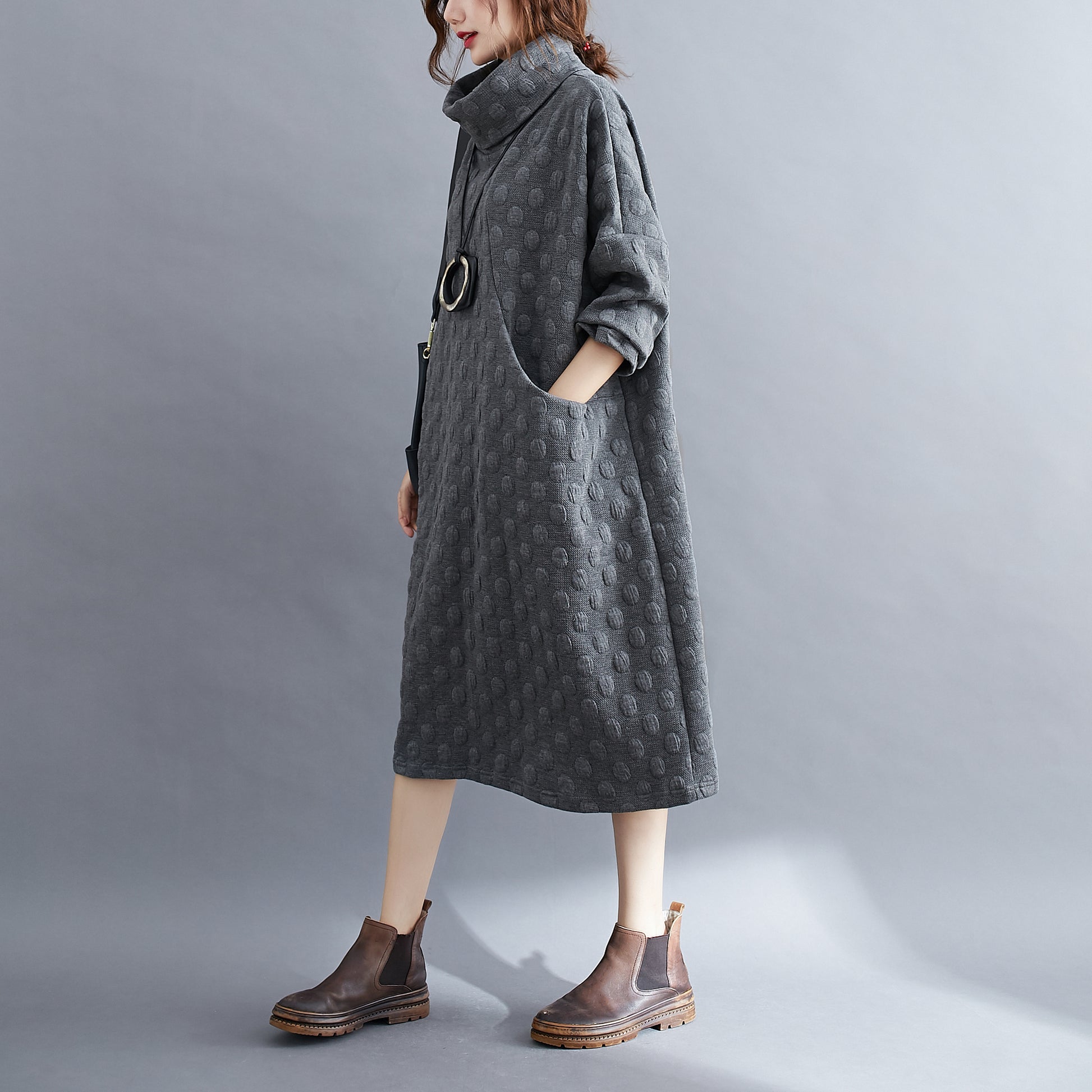 High Collar Pullover Dress With Pocket