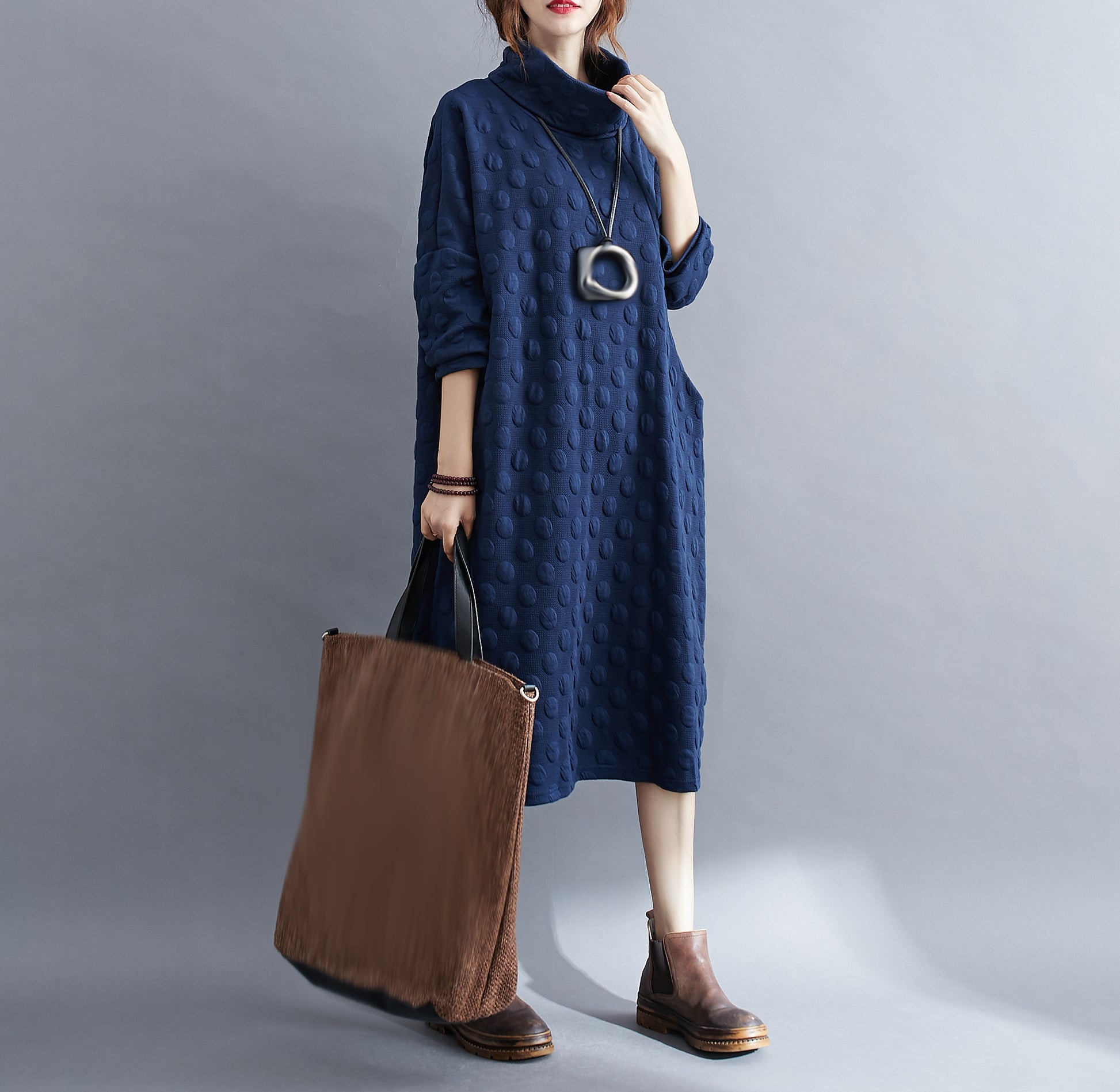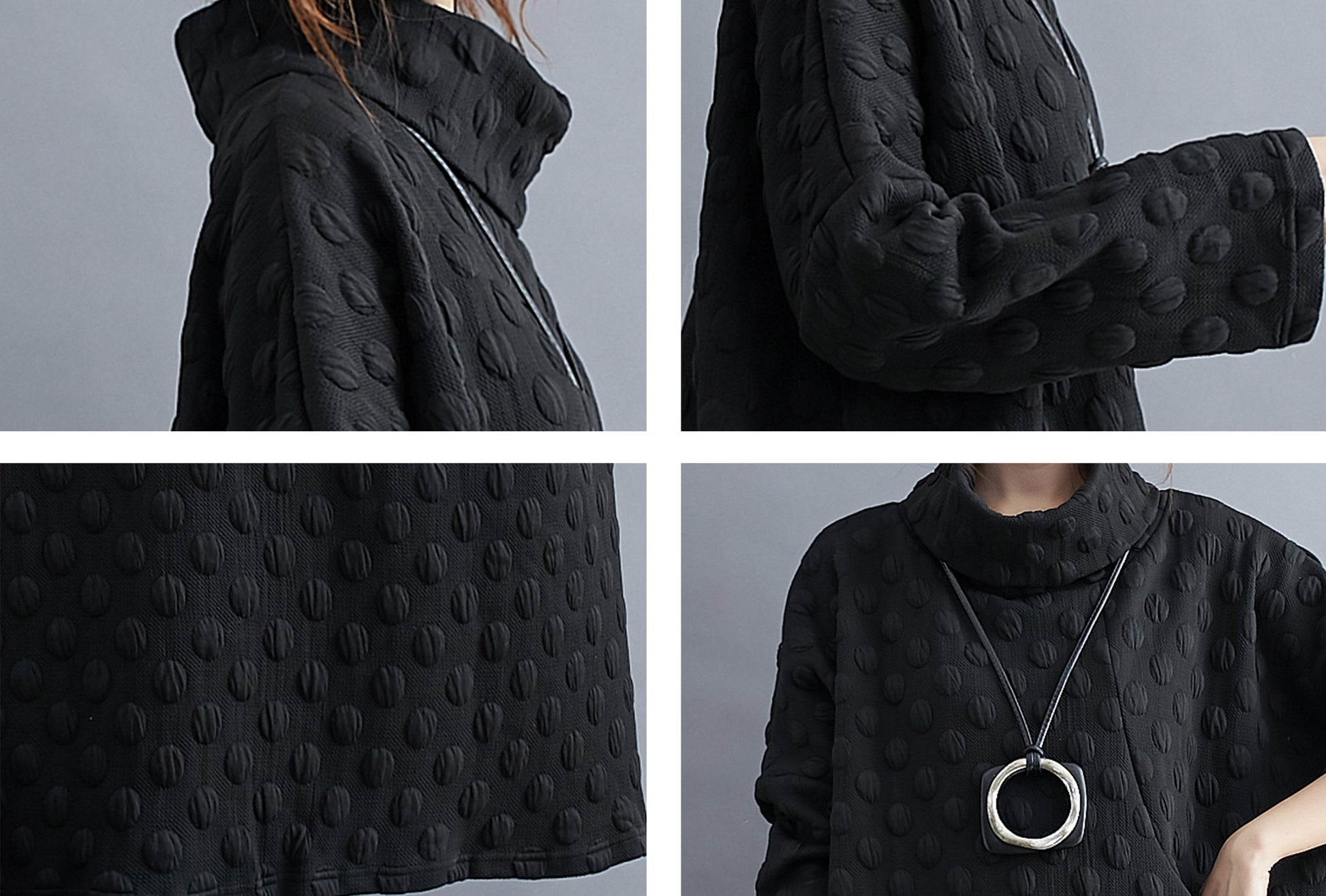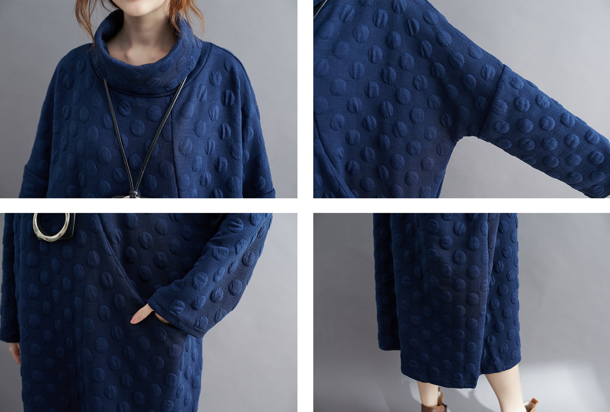 Features: High collar for wind protection, classic solid color, bat sleeves, above-knee length, side large pockets for ample storage.