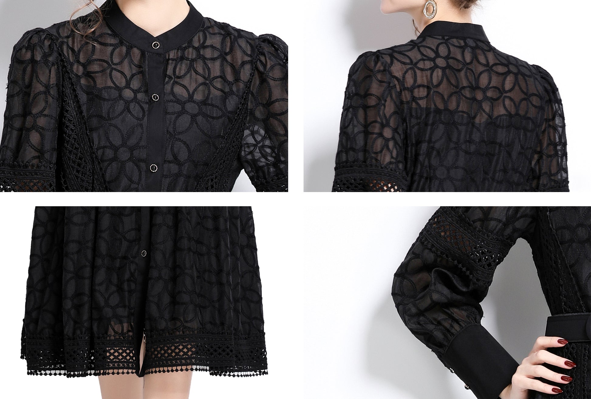 Design:Lantern sleeves can modify the arm lines, the button design as a decorative element adds exquisiteness and retro style, and the lace layering design gives the dress a rich sense of layering.