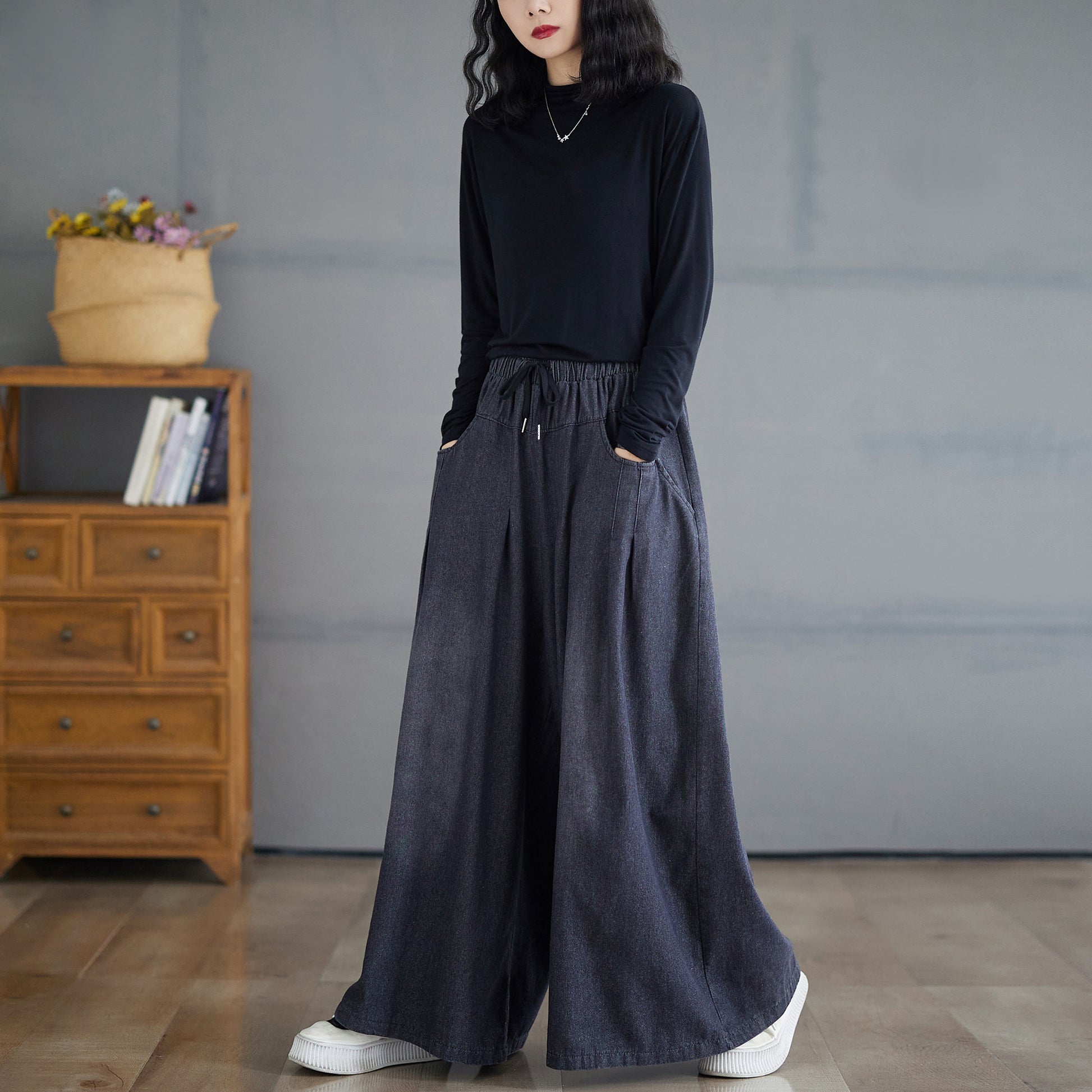 Features:These casual pants feature a loose wide-leg design that perfectly hides any leg shape and allows for easy movement. They feature a drawstring and two side pockets for enhanced functionality.