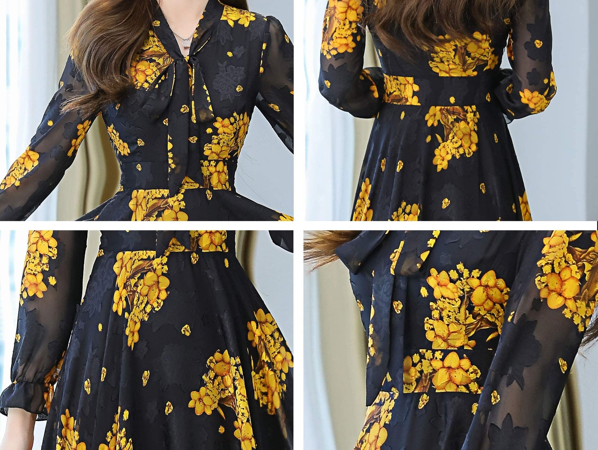 • Features:Tie v-neck,long Ruffled Lantern sleeve,A Line, Flowy,All over Floral Print,Big Swing,Long Maxi Dress,zip,long dress,chiffon dress.