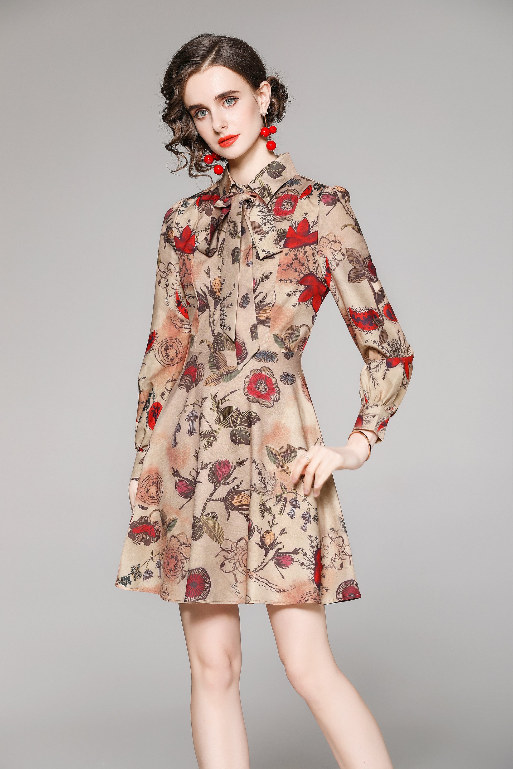 • Features: Tie collared, floral print, long sleeves, a-line, button down dress, summer short dress,casual daily dress,spring dress for women.
