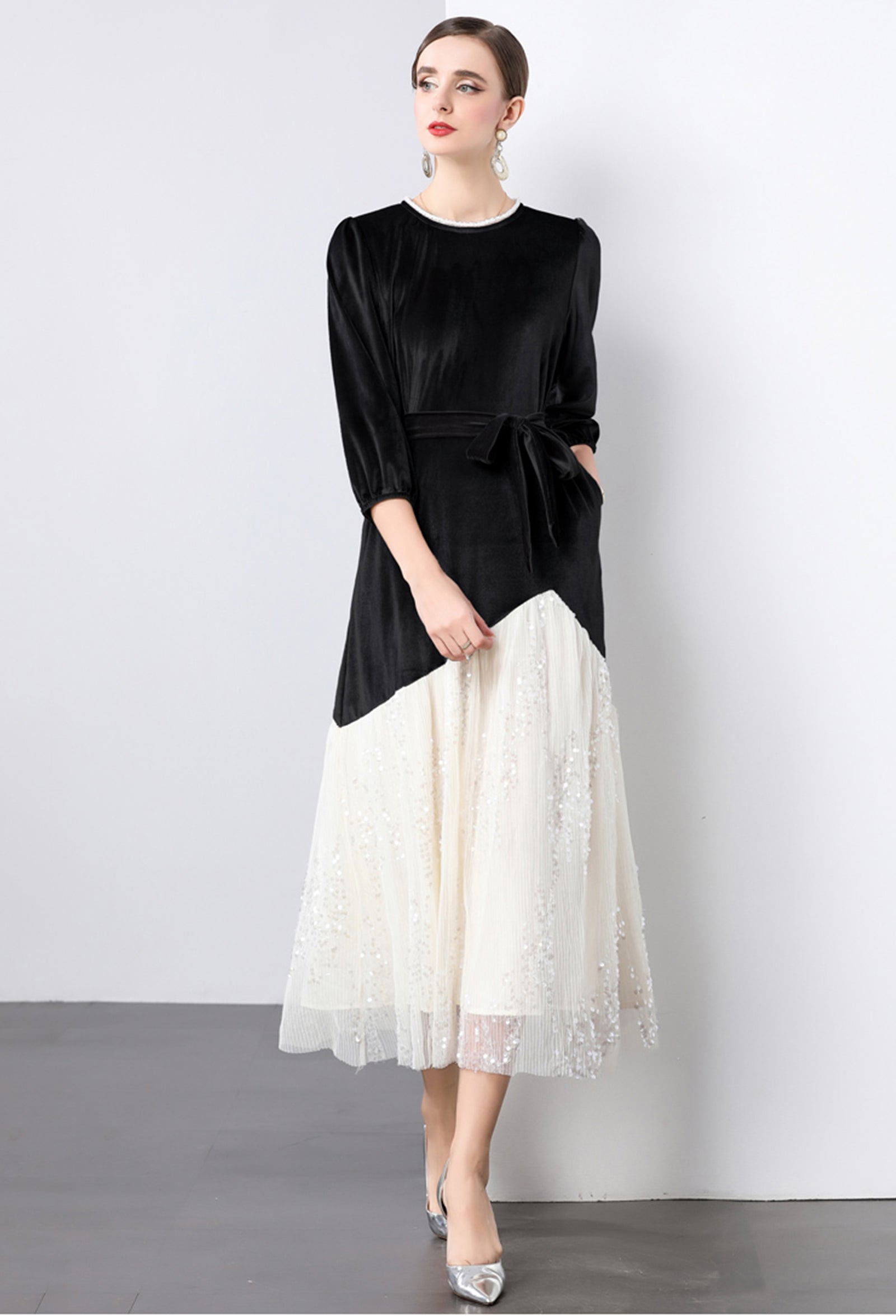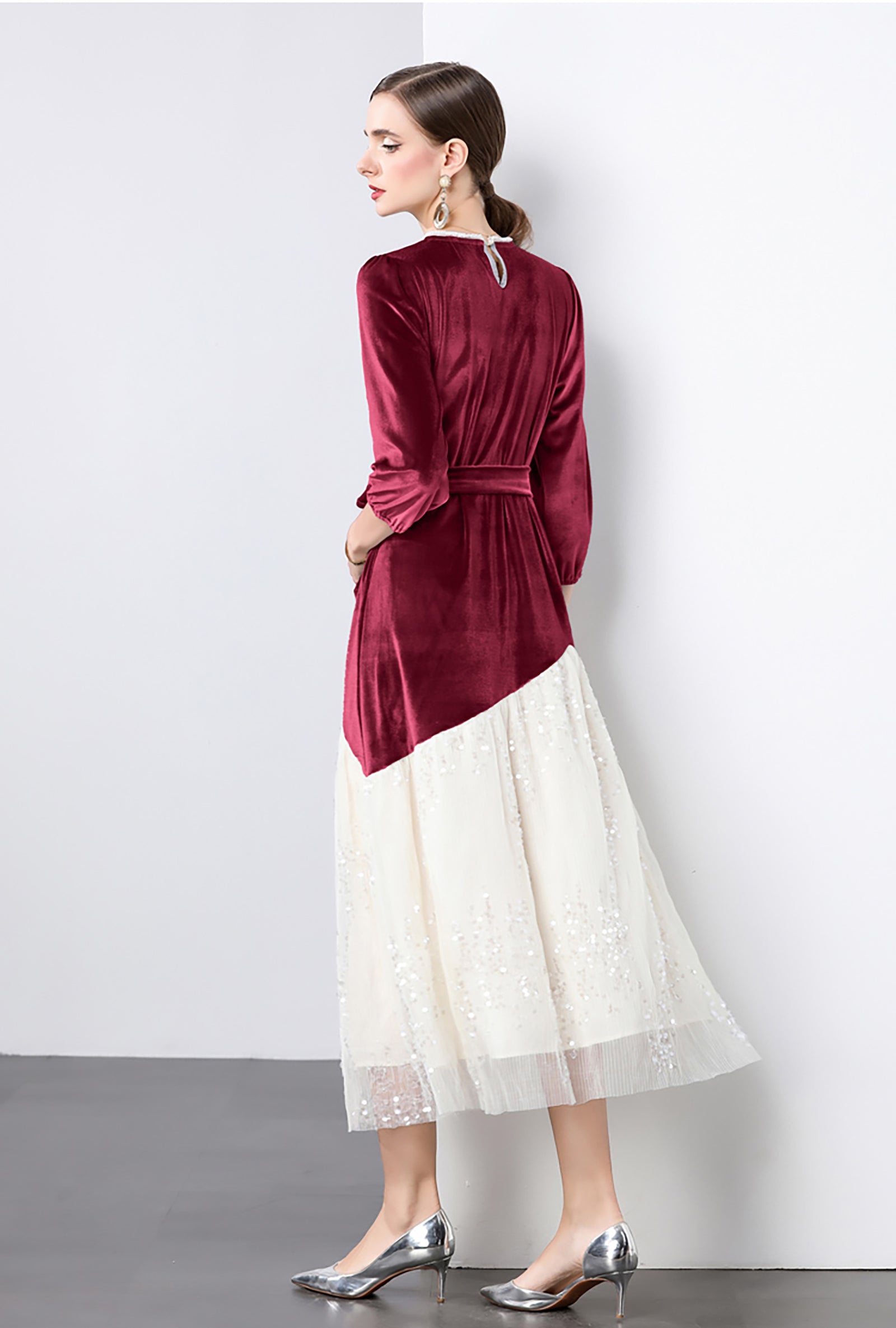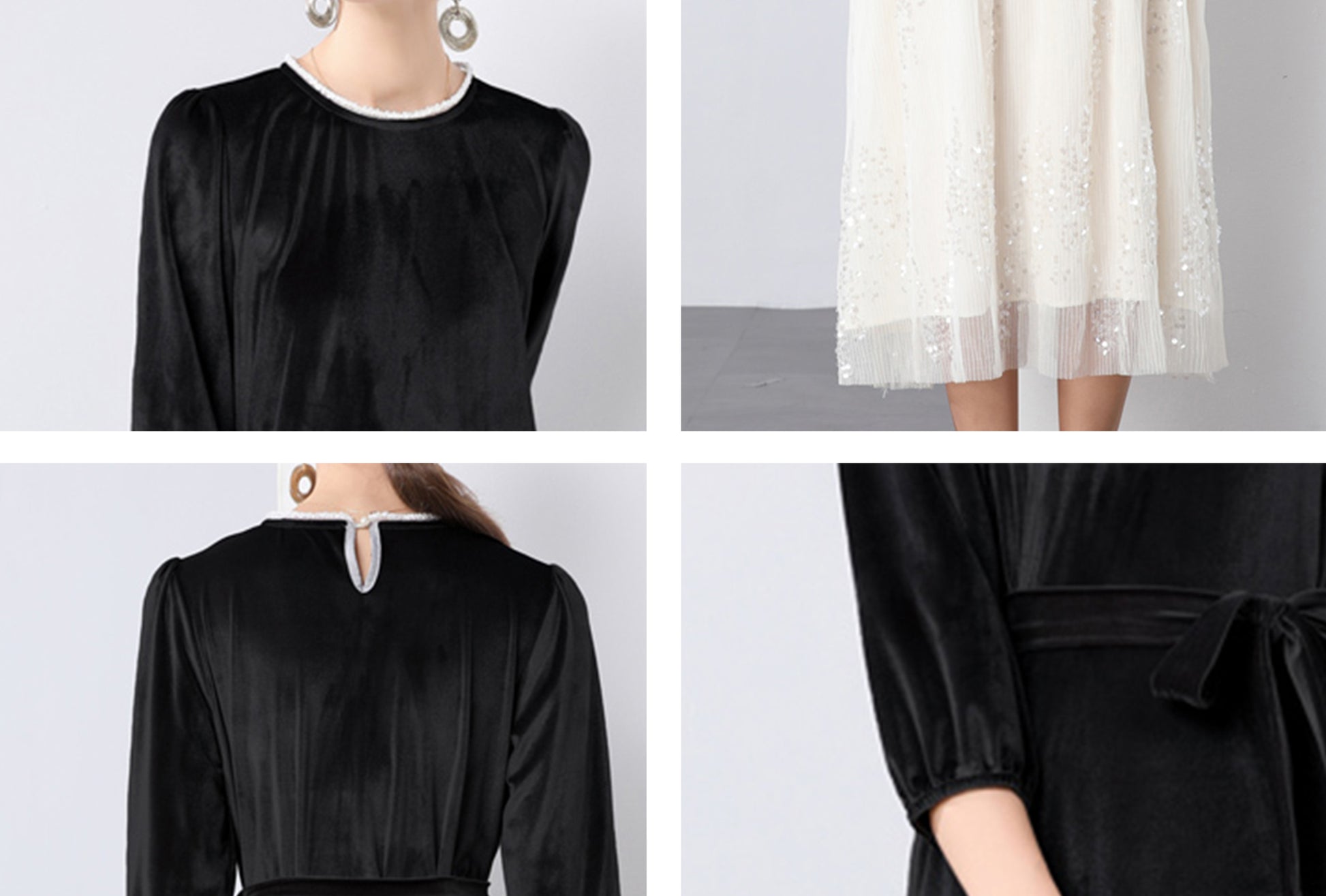 Design:The lace and sequins stitching design adds elegance and refinement, and the belt can highlight the waistline. It keeps you warm and modifies your body shape.