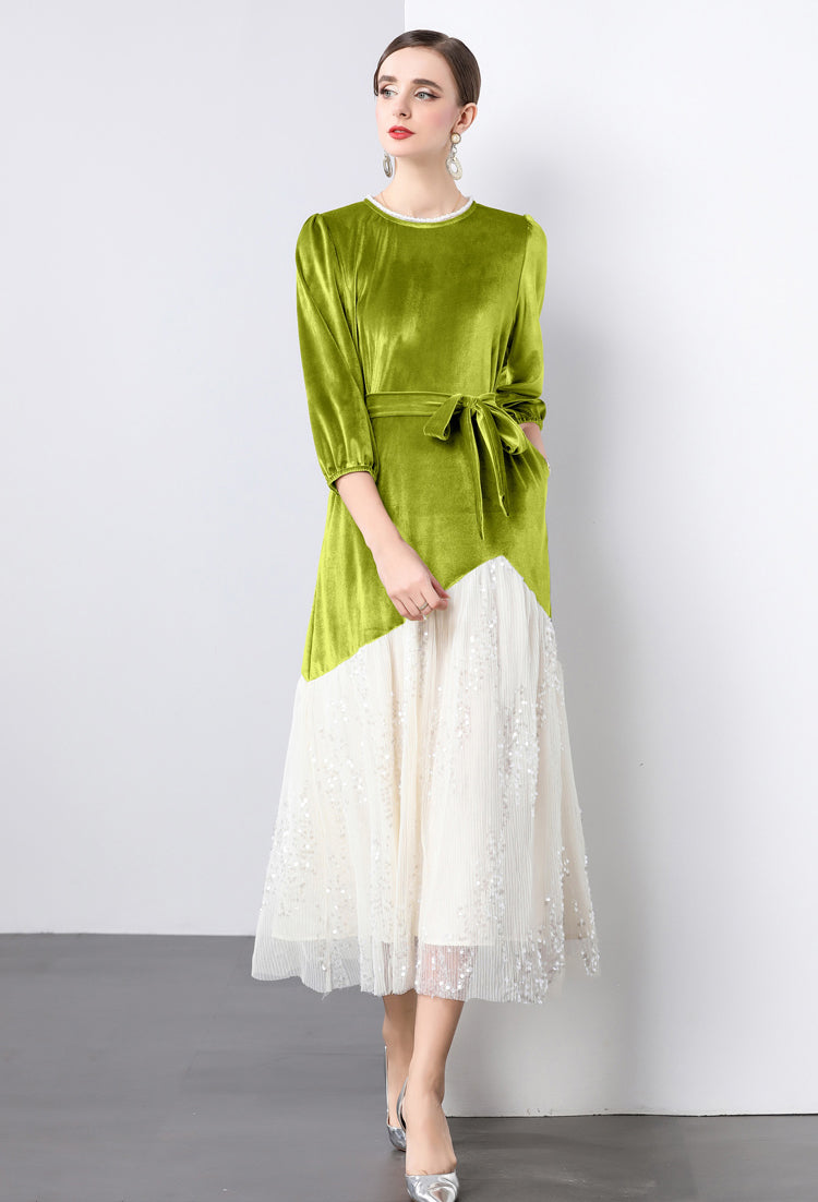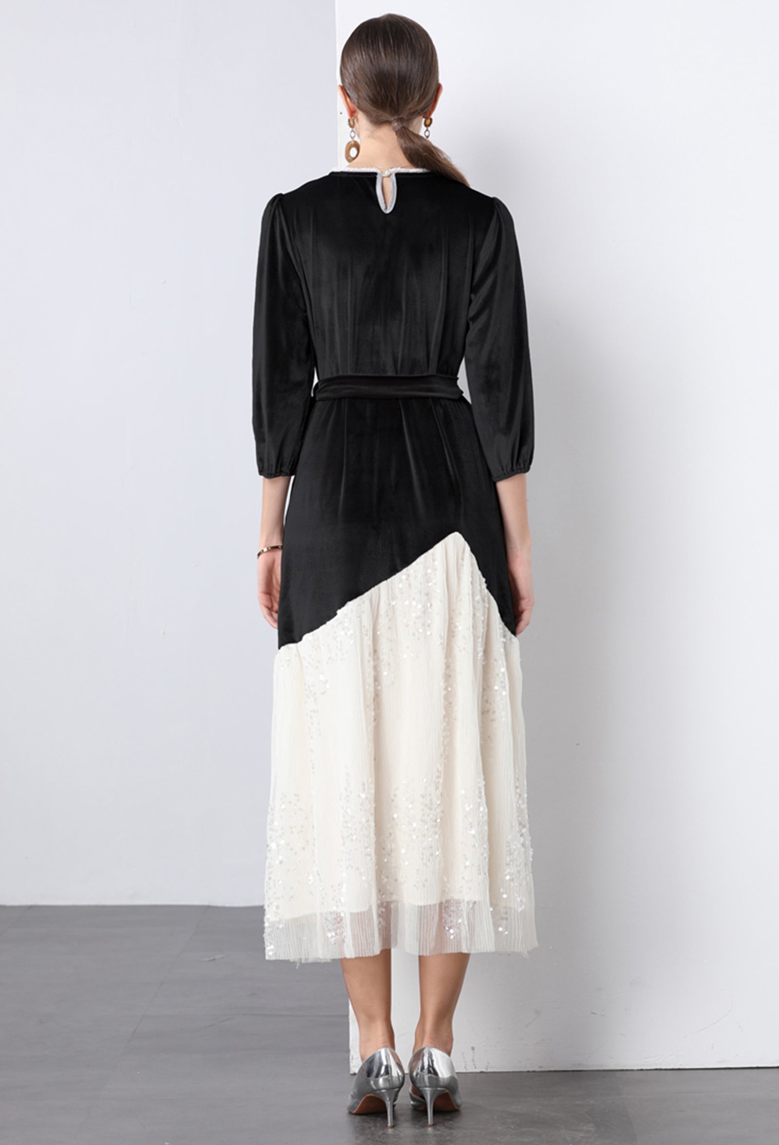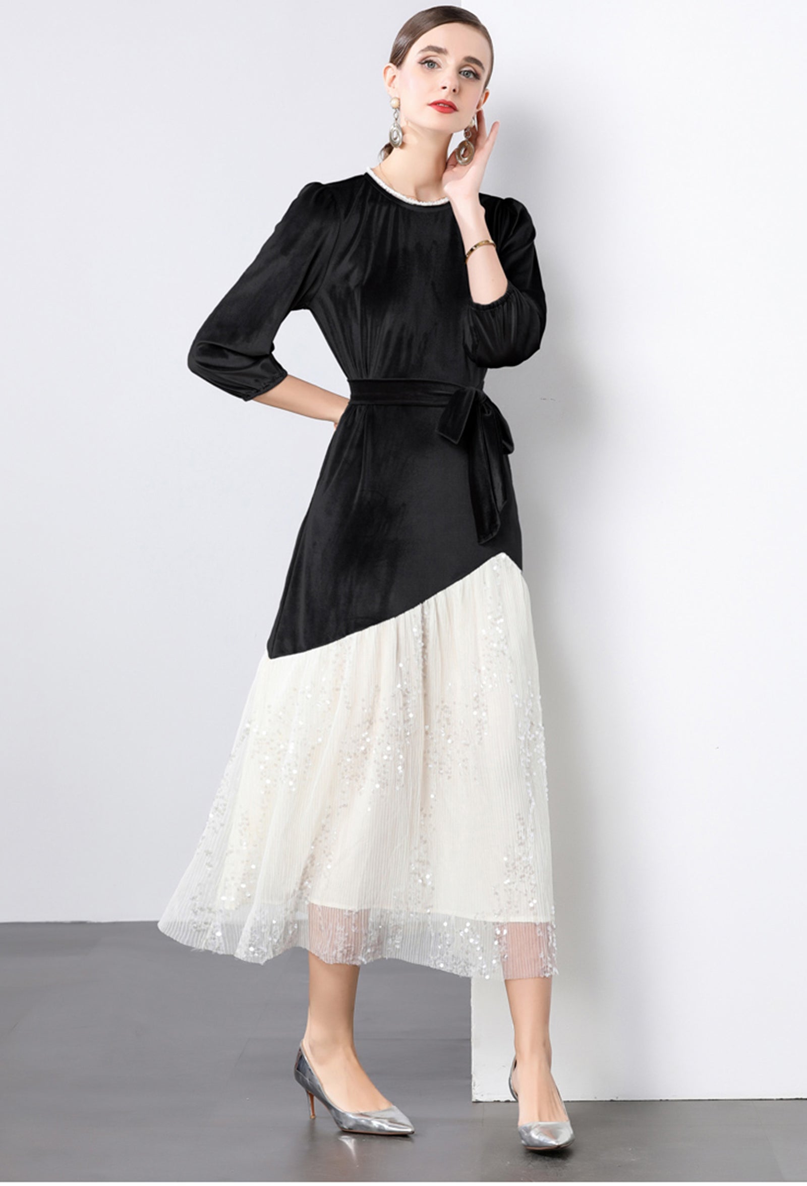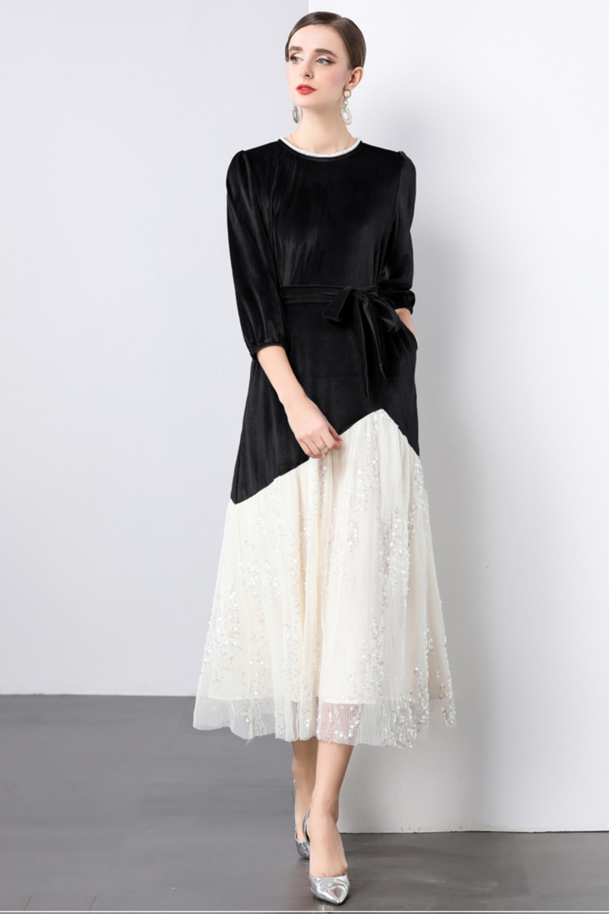 Design:The lace and sequins stitching design adds elegance and refinement, and the belt can highlight the waistline. It keeps you warm and modifies your body shape.