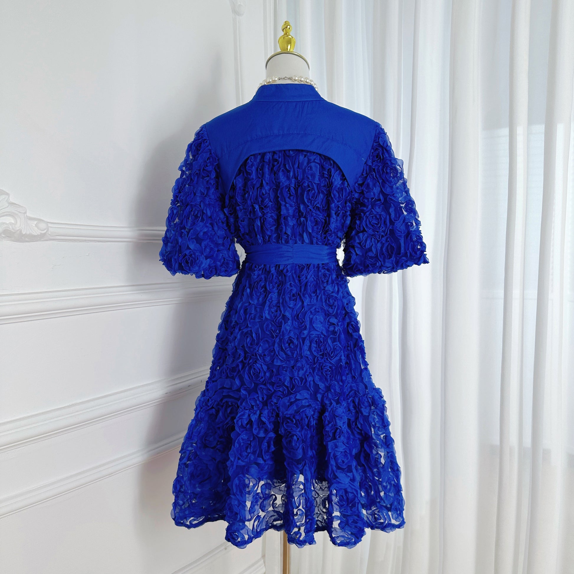 Women 3D Floral Puff Sleeve Ruffle Mini Dress