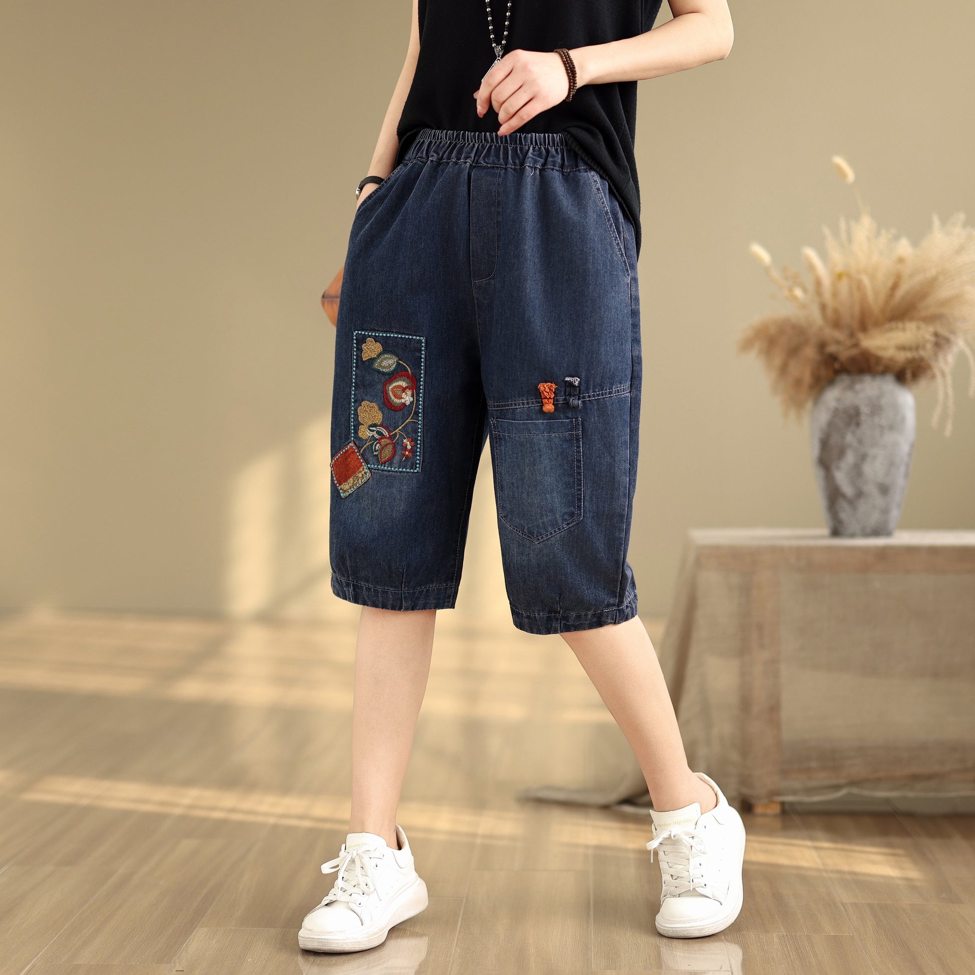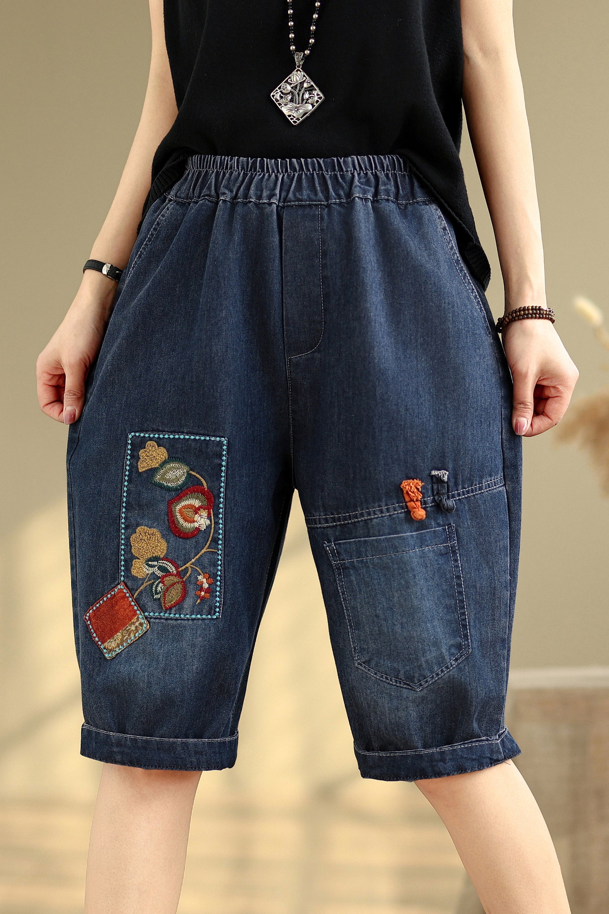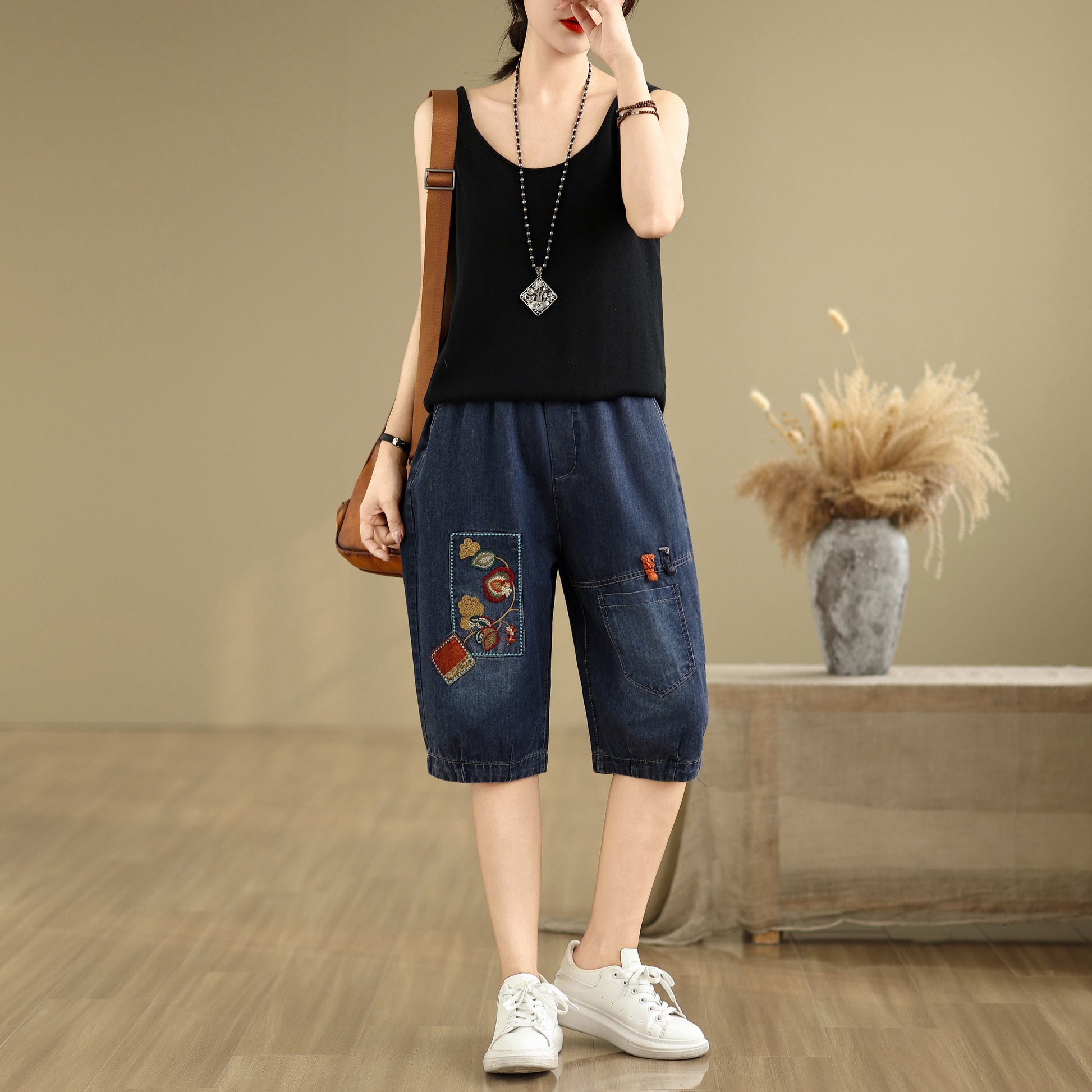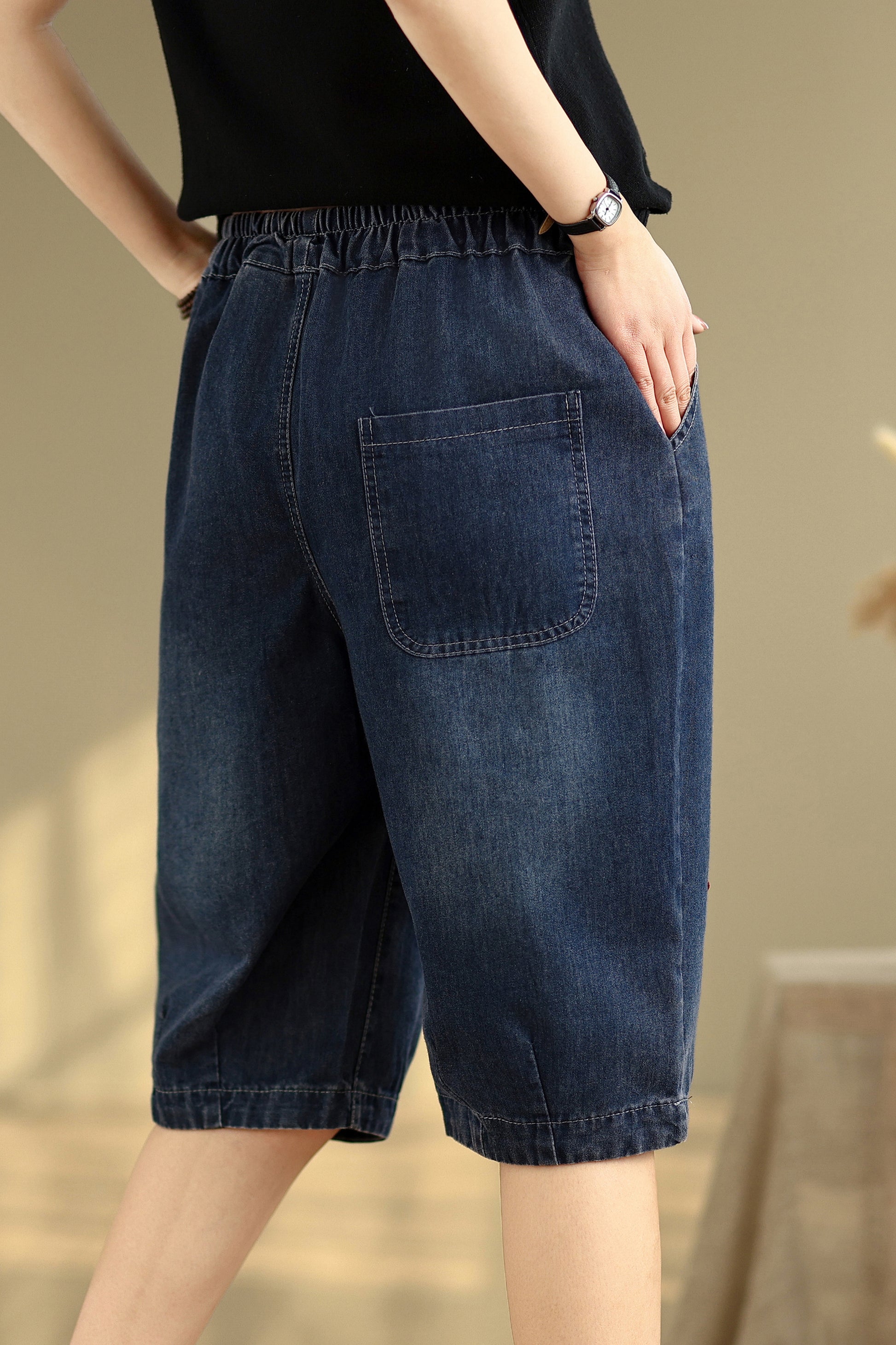 Women Denim Jeans Elastic Waist Harem Short Pants