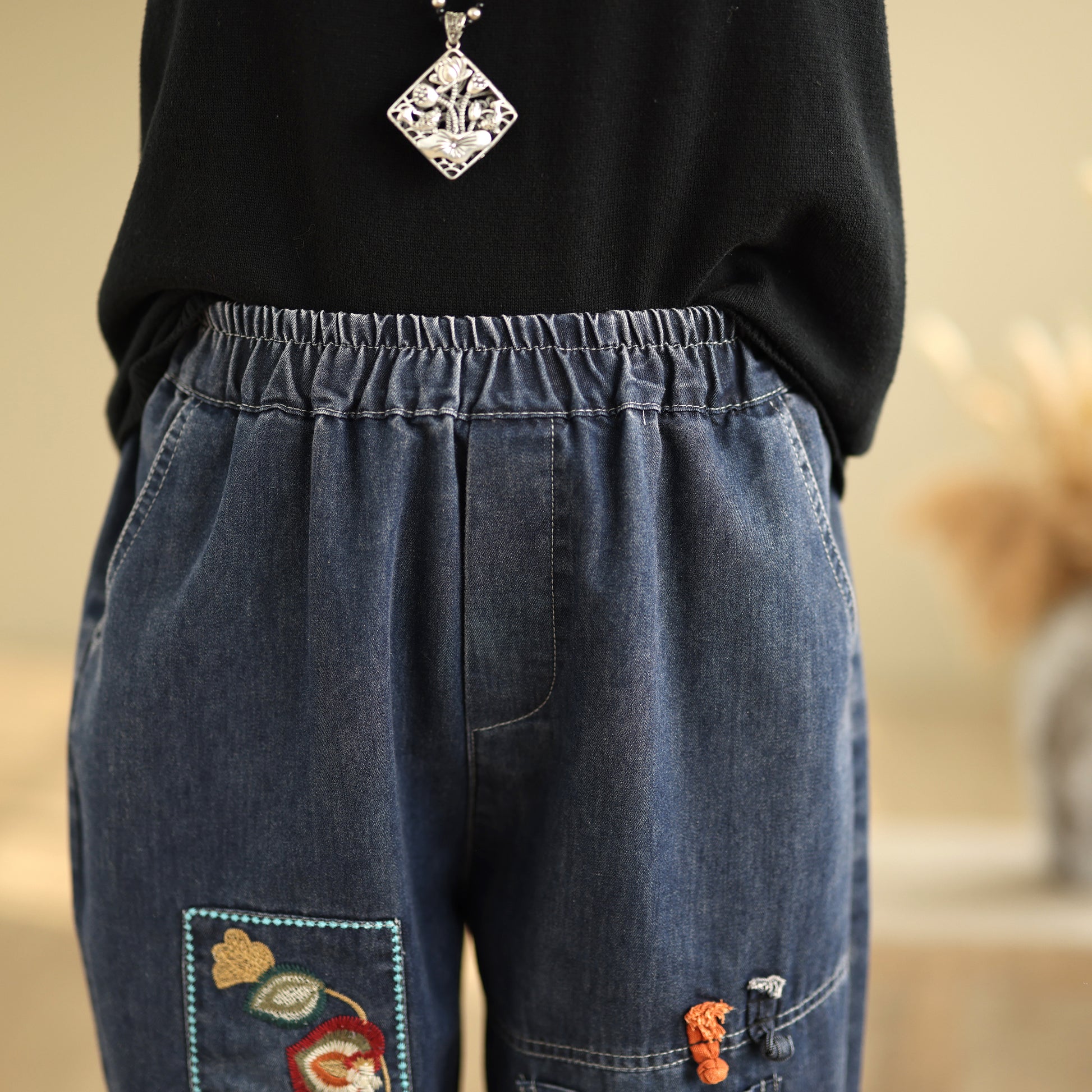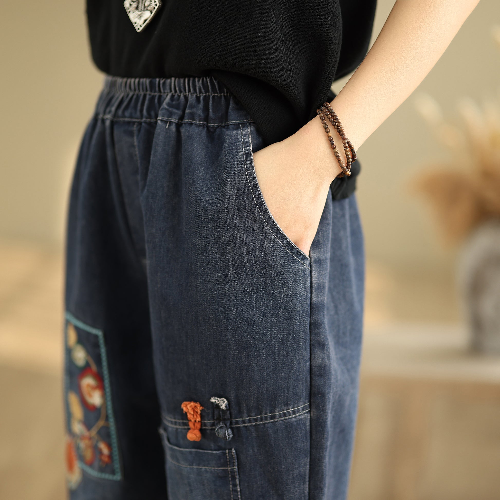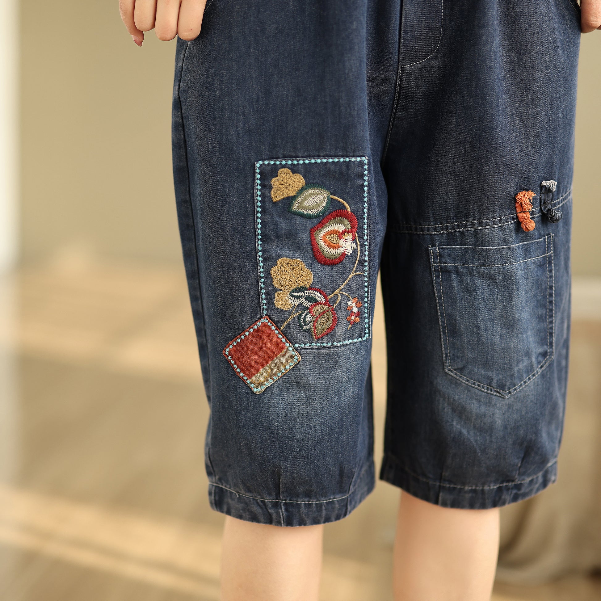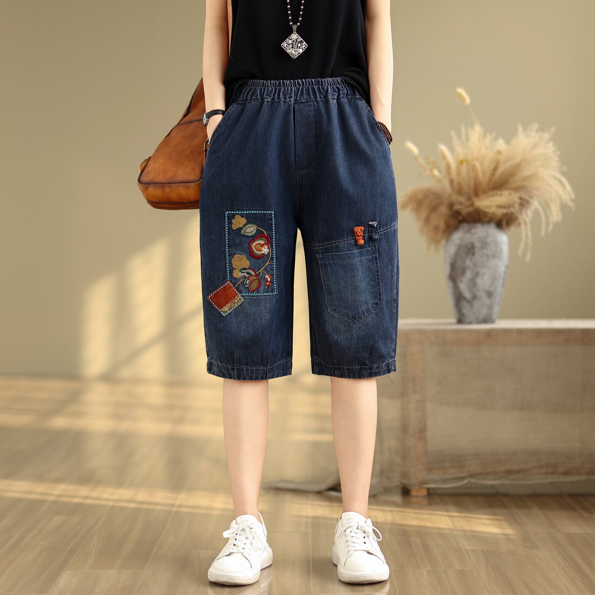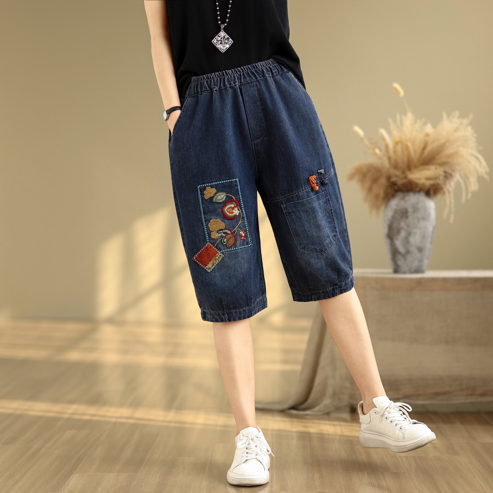 Women Denim Jeans Elastic Waist Harem Short Pants