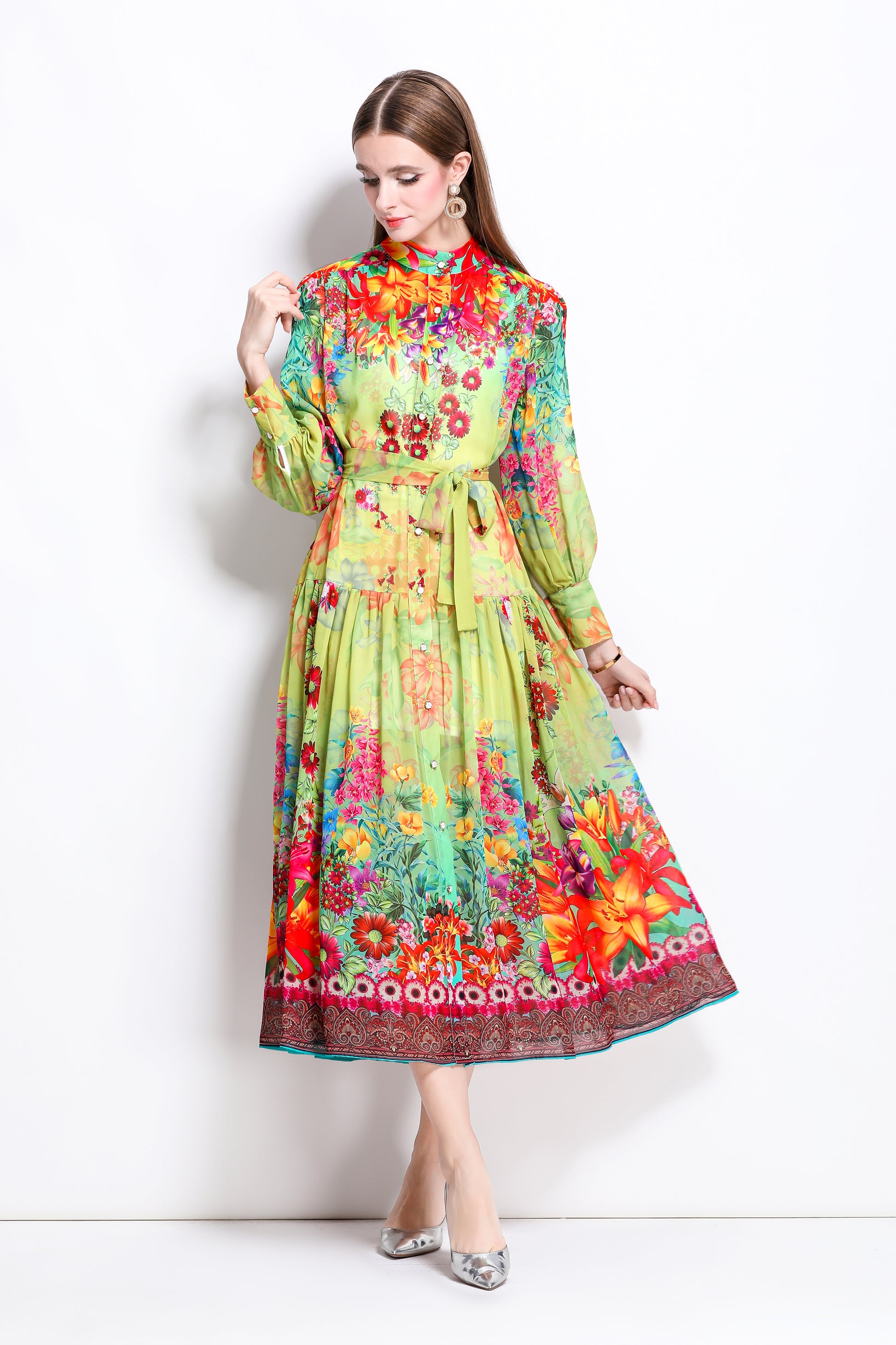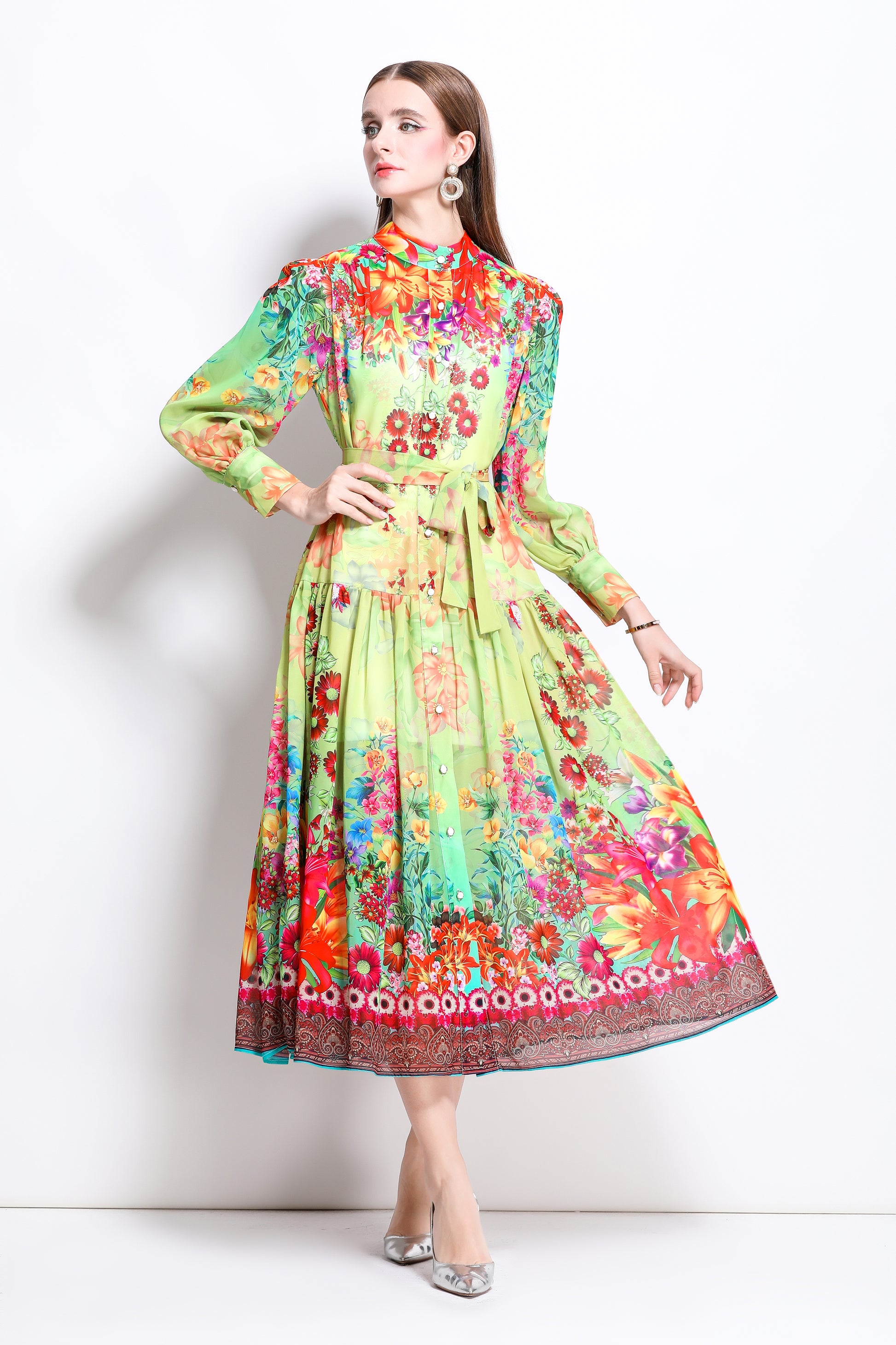 • Features:Shirt Collar,A Line, Buttons Up, Flowy, Split,Ruff Long Sleeve,with Belt,Floral Print,Big Swing,Long Maxi Shirt Dress.