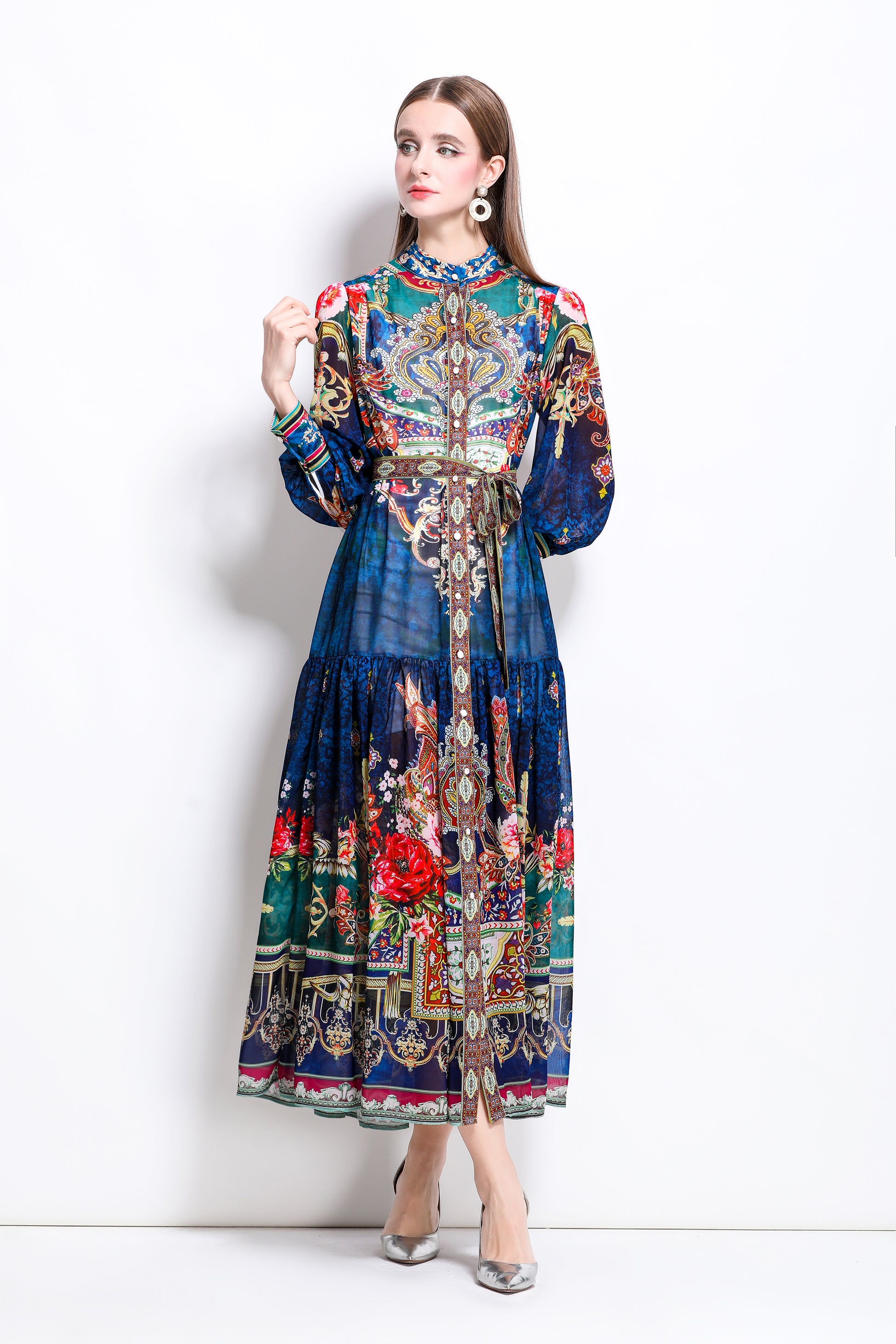 • Features:Shirt Collar,A Line, Buttons Up, Flowy, Split,Ruff Long Sleeve,with Belt,Floral Print,Big Swing,Long Maxi Shirt Dress.