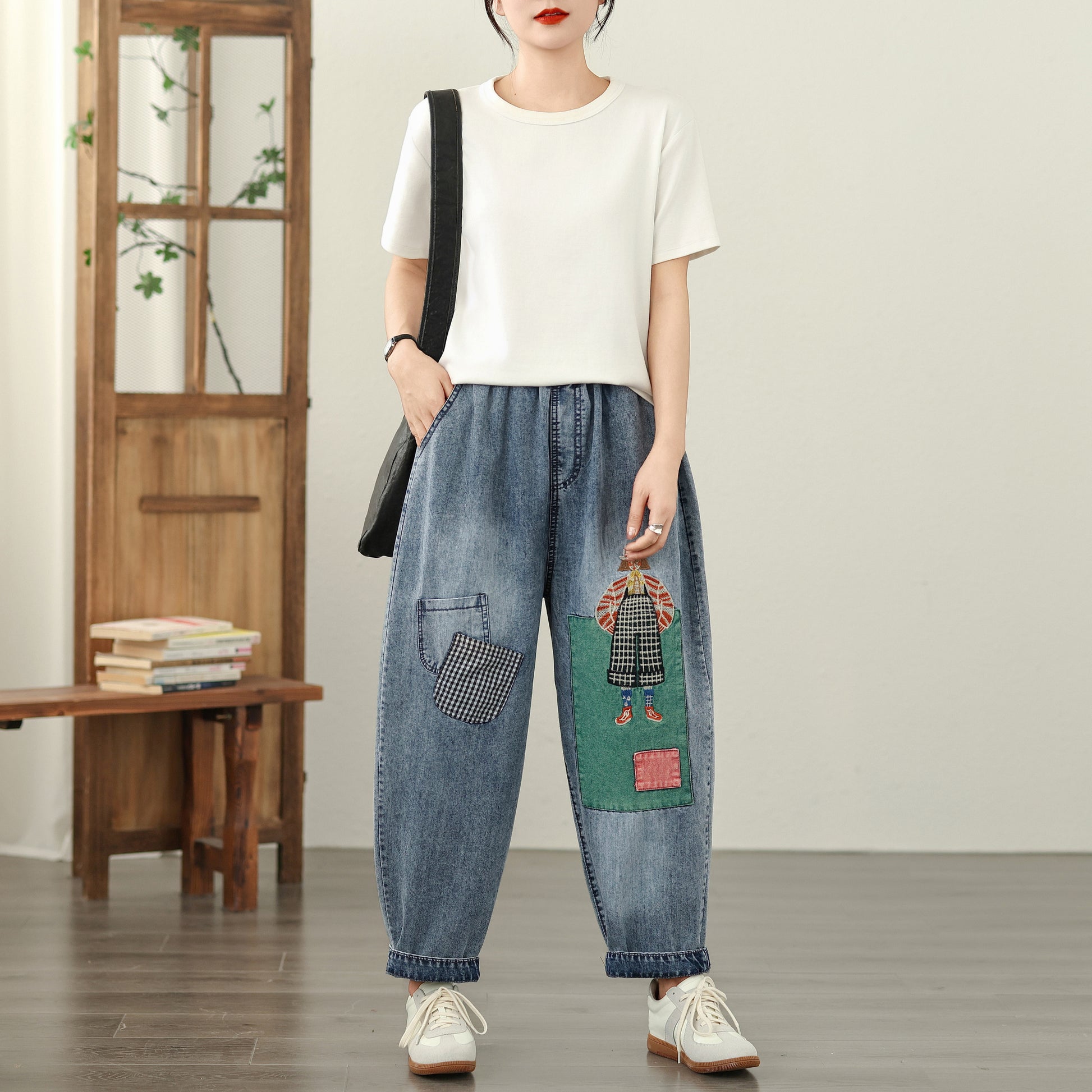 • Features: Elastic waisted,denim,loose leg,knee length pants, classic denim,loose fit.