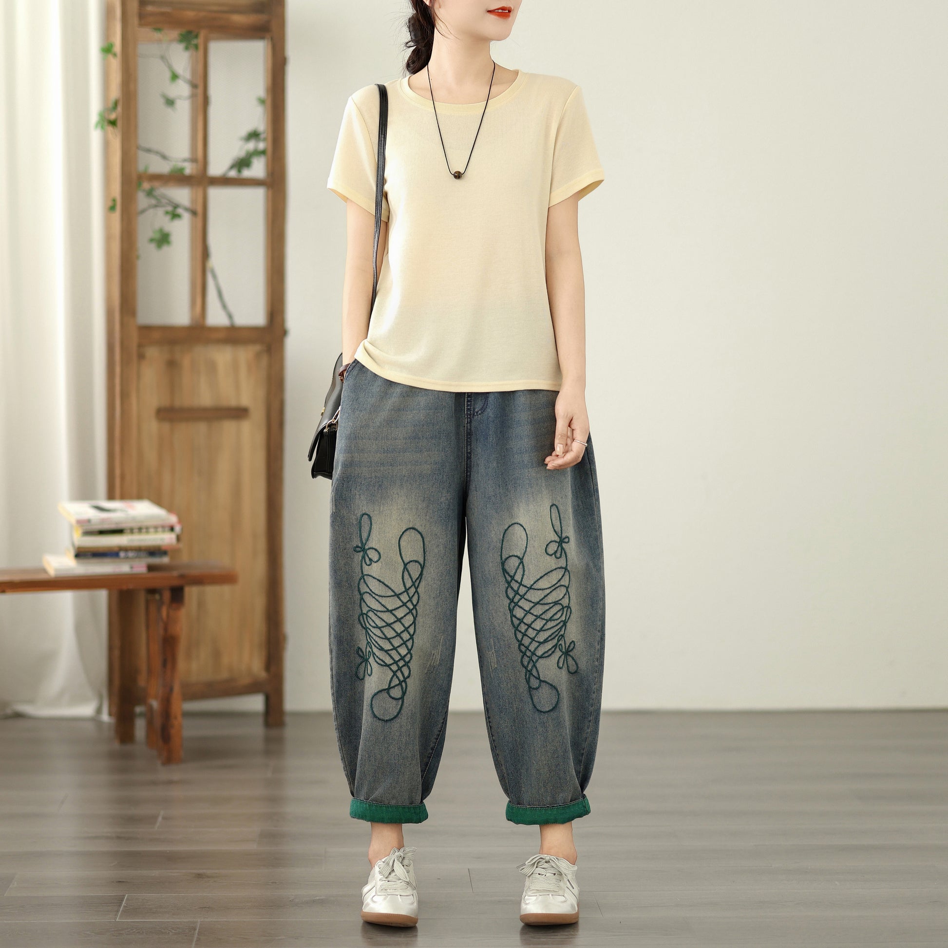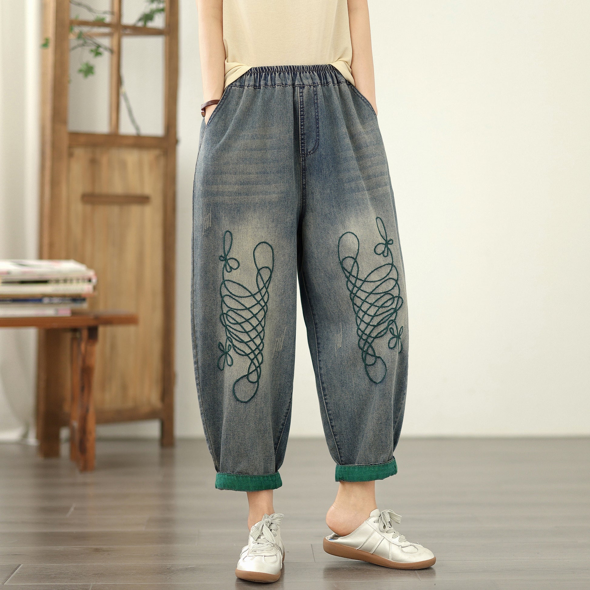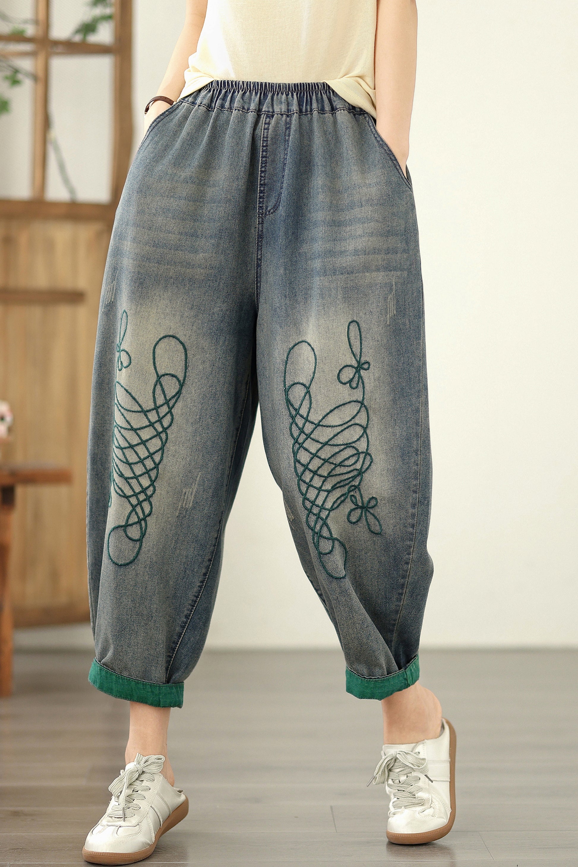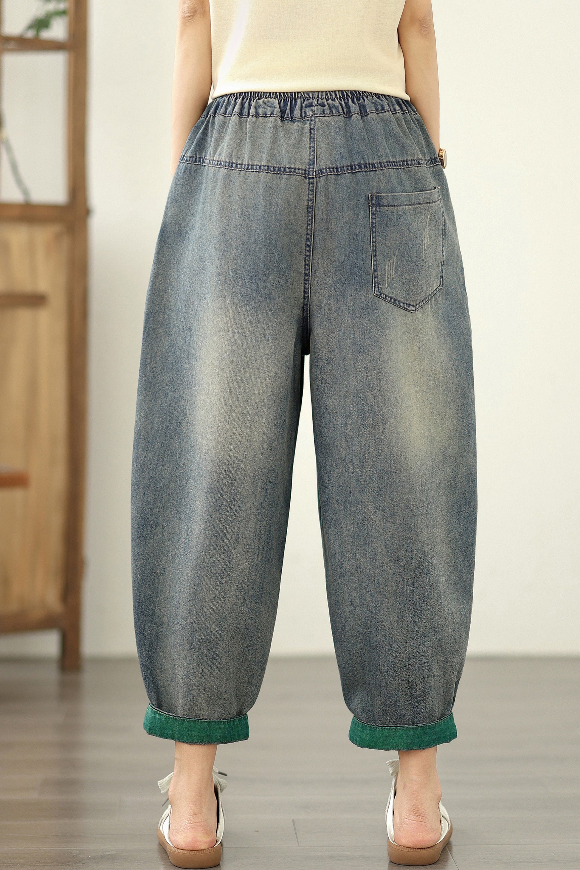 • Features: Elastic waisted,denim,loose leg,knee length pants, classic denim,loose fit.