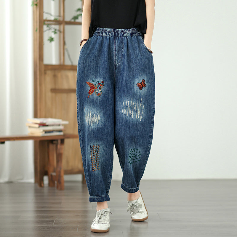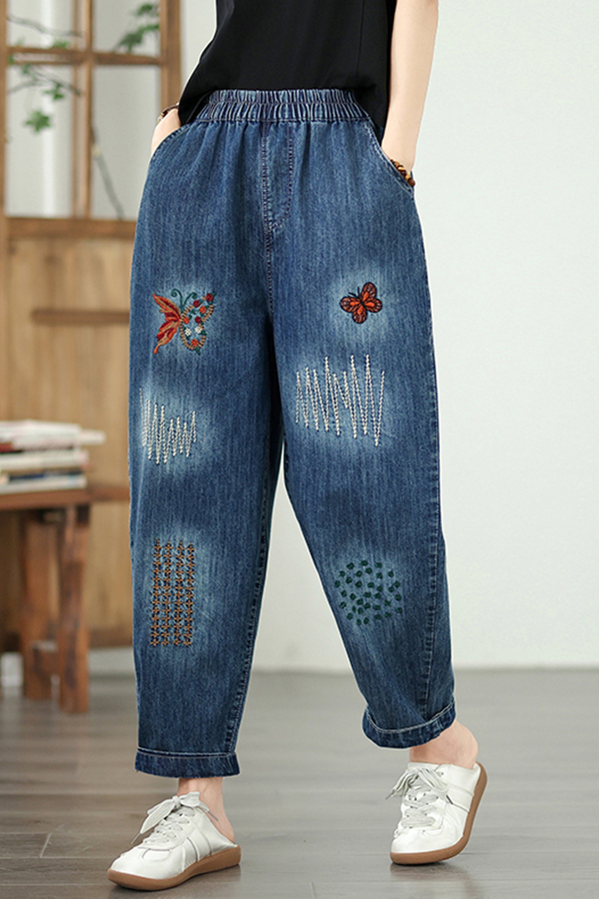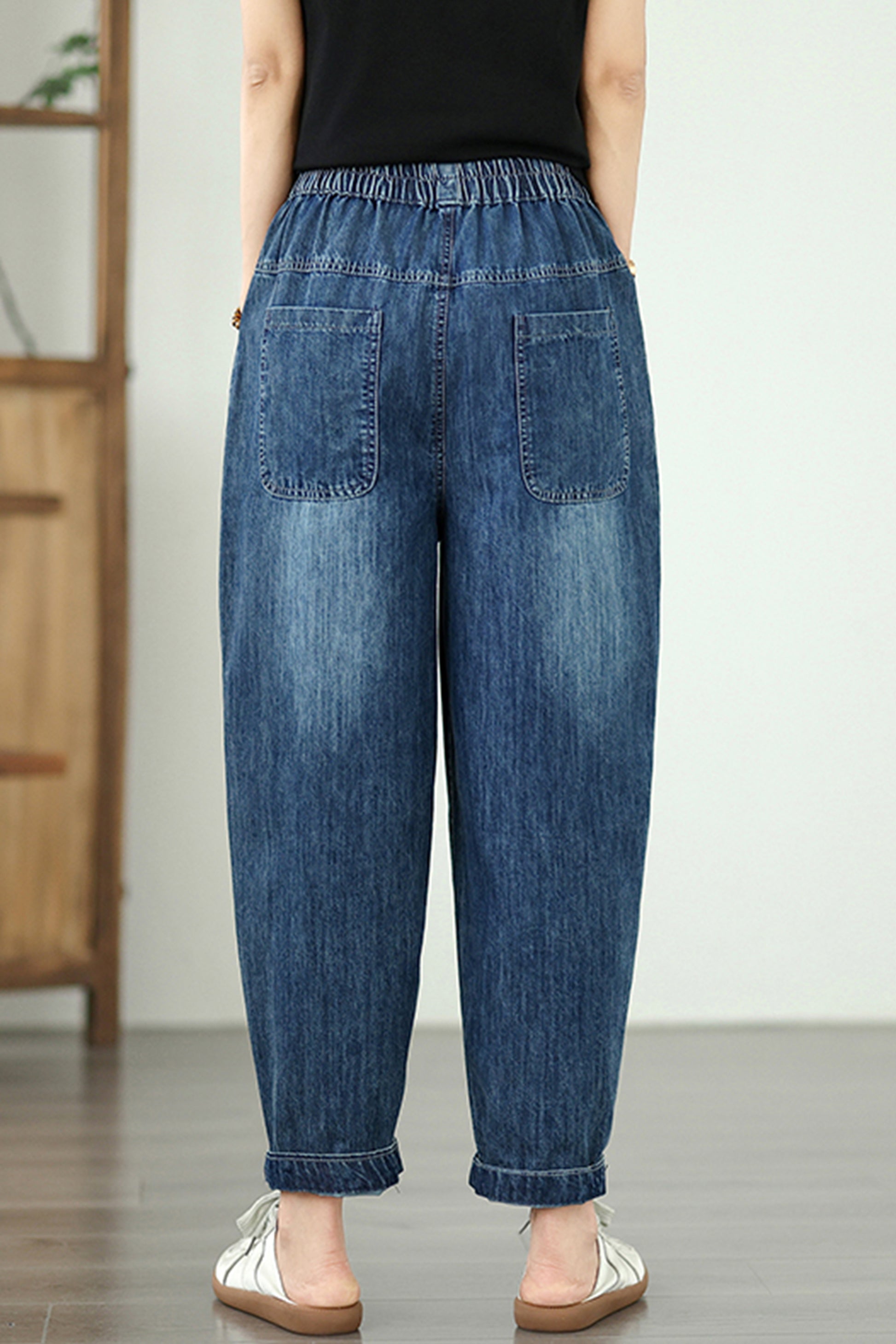 • Features: Elastic Waist,denim,Side Pockets;Casual Wide leg,knee length pants, classic denim,hip-hop,Casual loose fit. The version of the pants is very suitable for covering the flesh of the thigh and modifying the beautiful leg shape,a must-have womens jeans in your wardrobe.