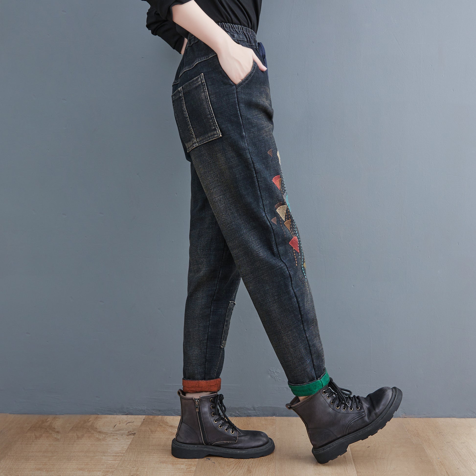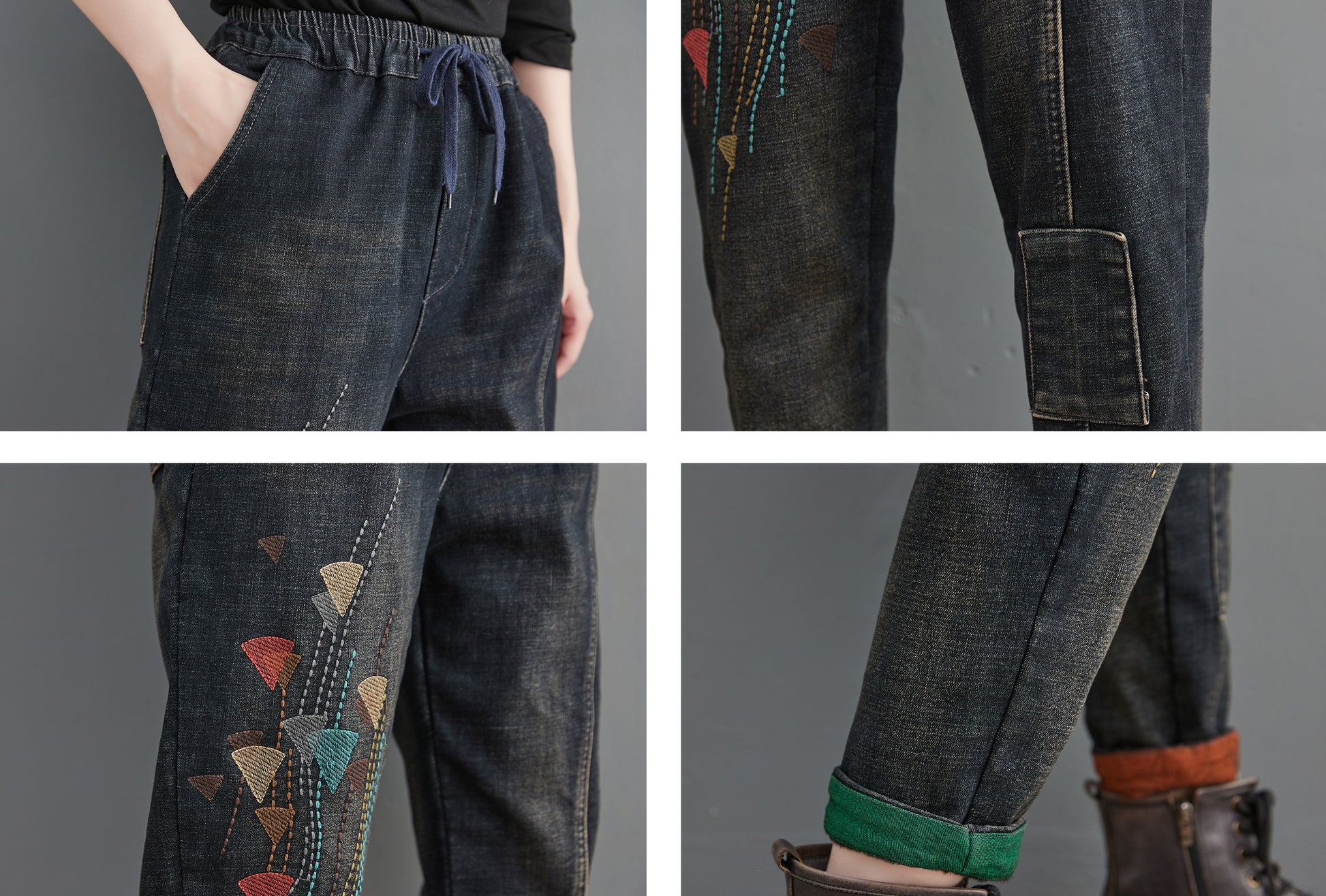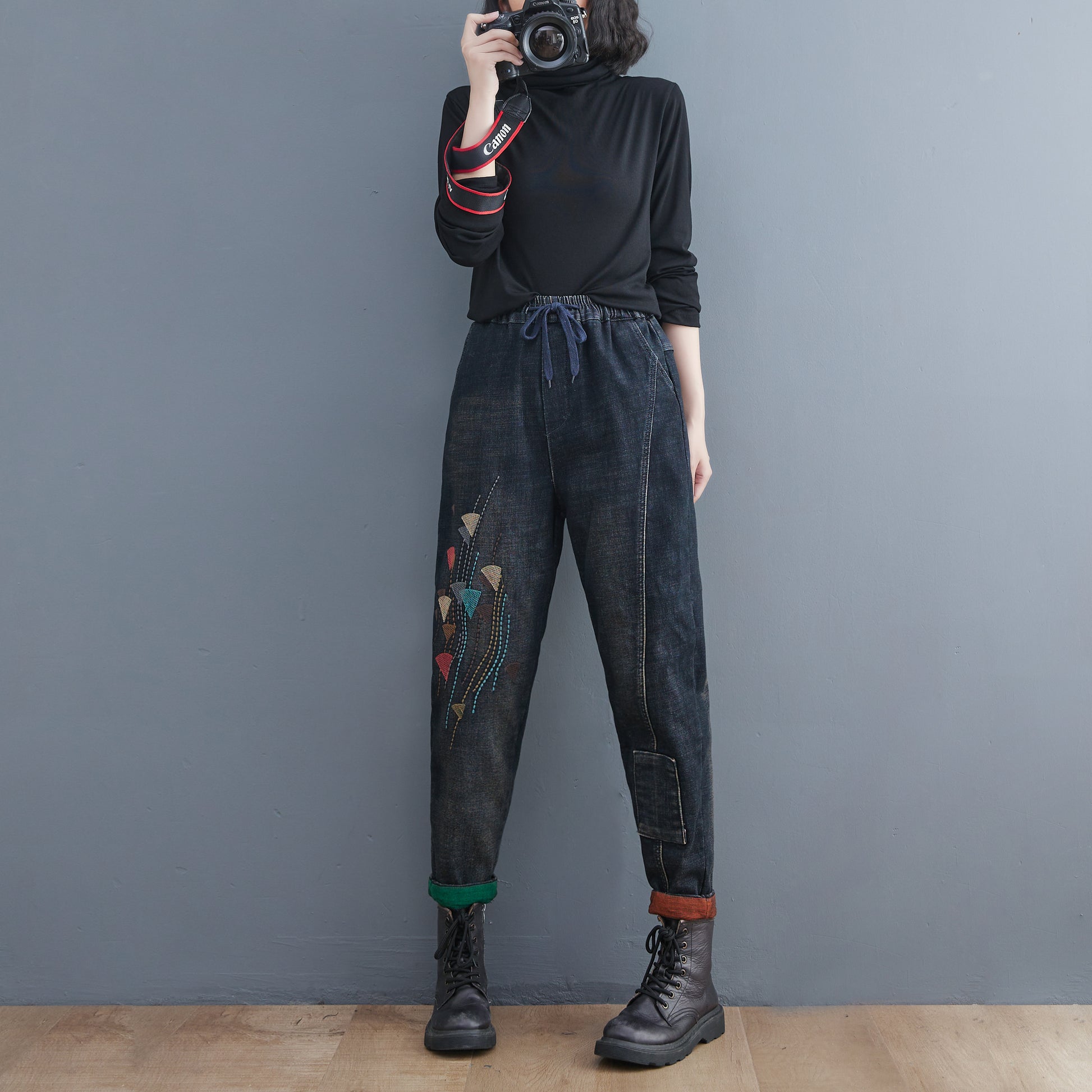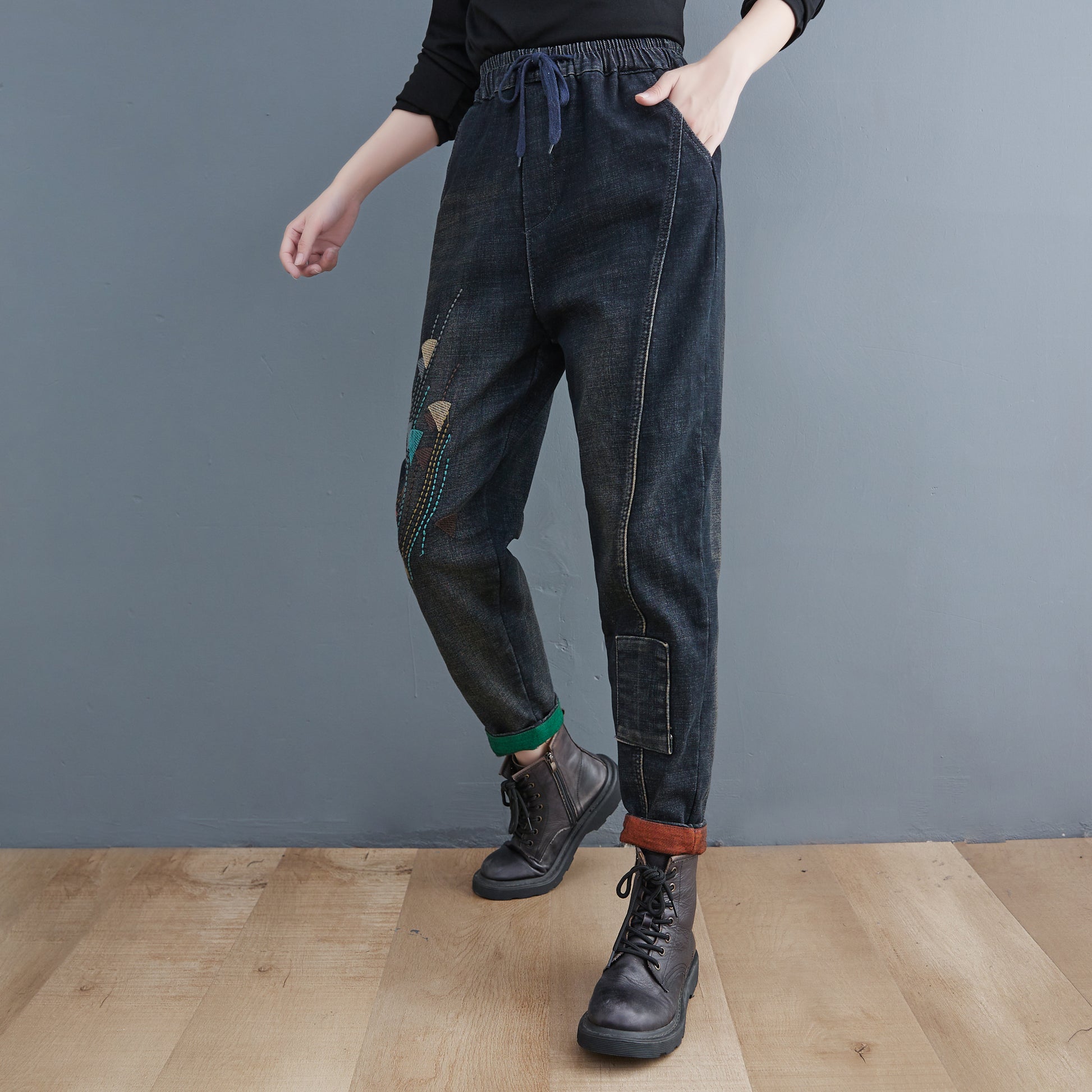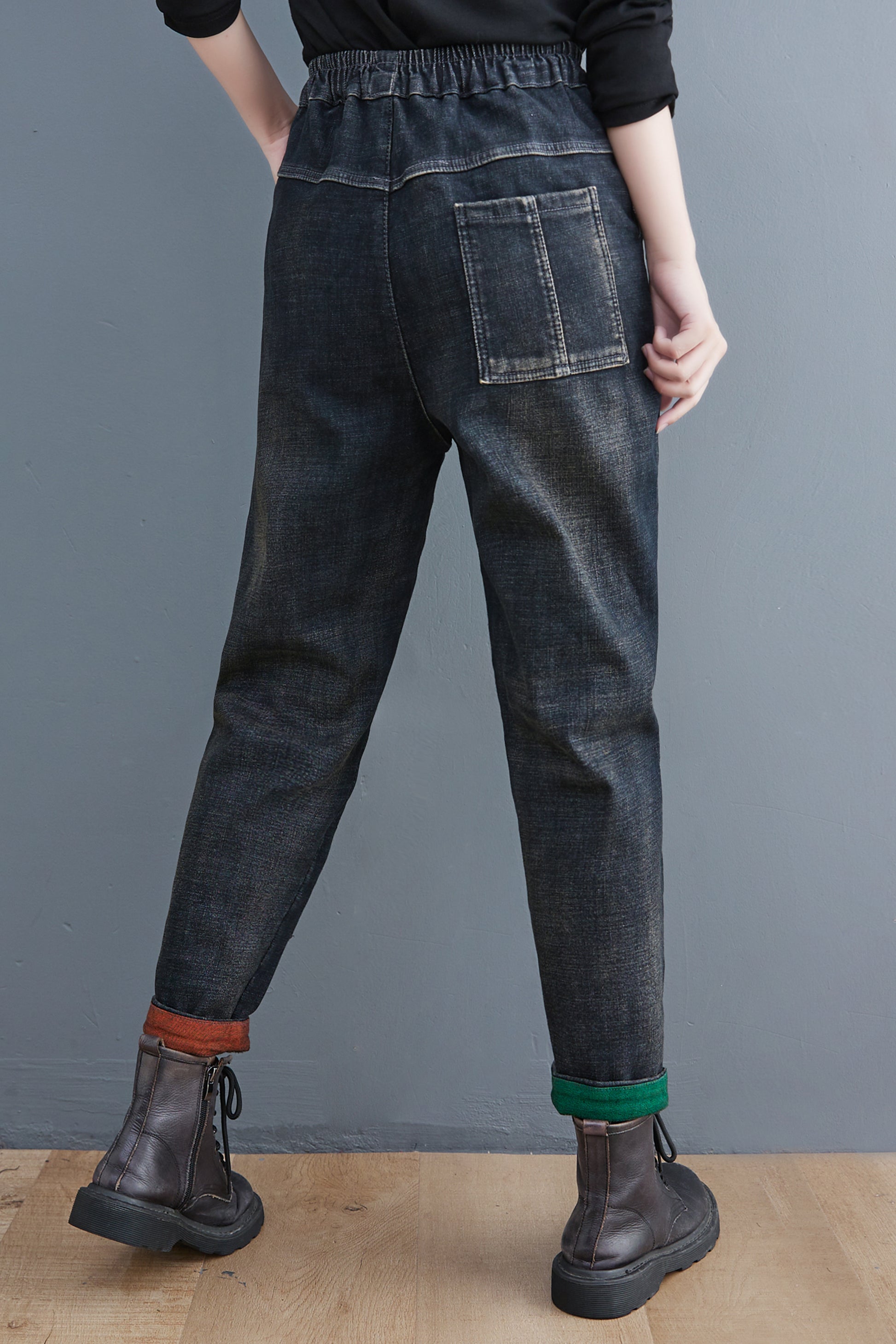 Women Loose Jeans Denim Harem Pants Elastic Waist