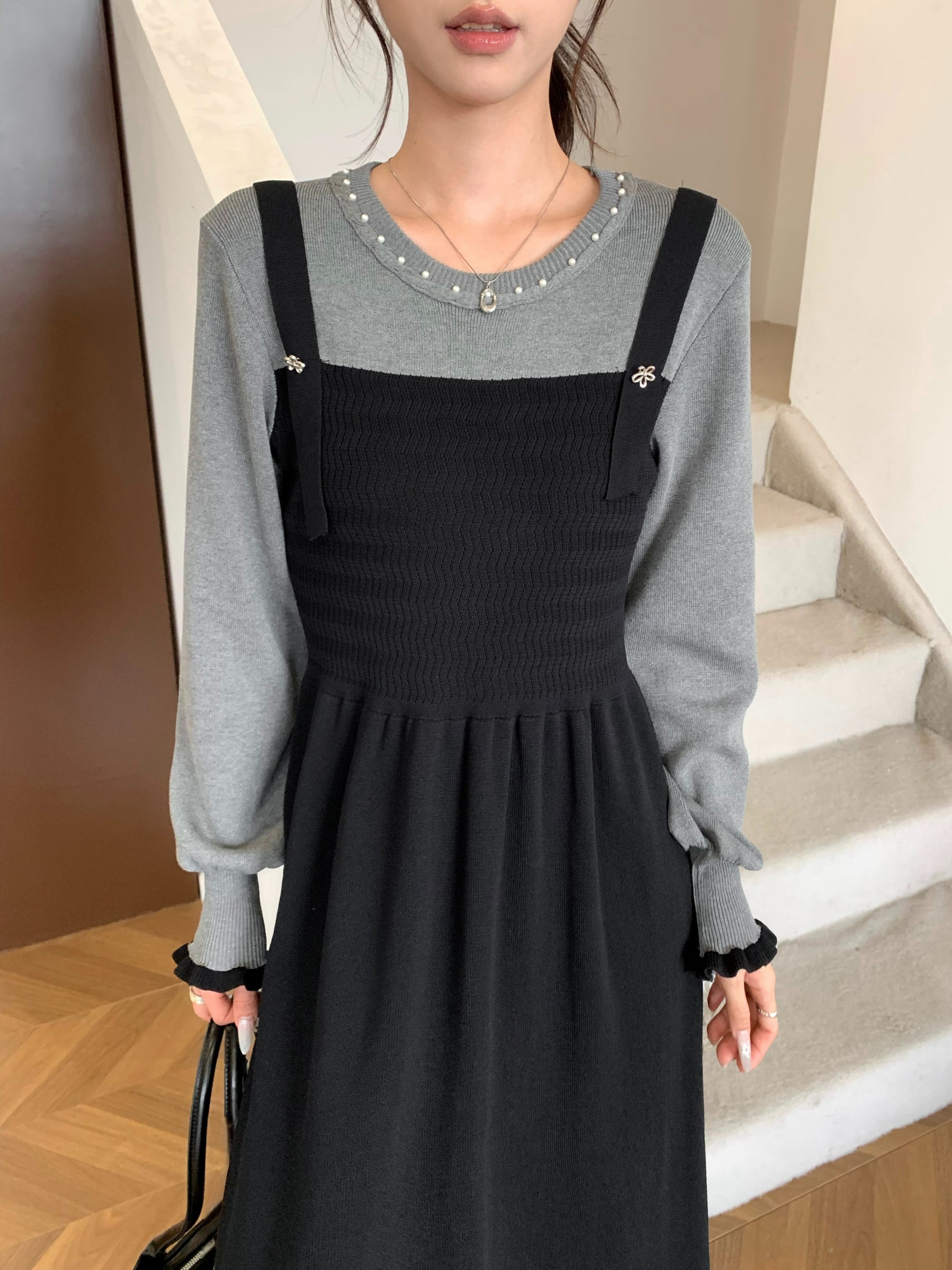 • Features: 2-in-1 dress,knitted dress,long sleeves,lantern sleeves,round neck, pearl decoration,pleats, lightweight knitted dress,autumn dress, Korean-style dress, sweet dress,soft knitted dress,color-blocking dress,autumn and winter knitted dress.