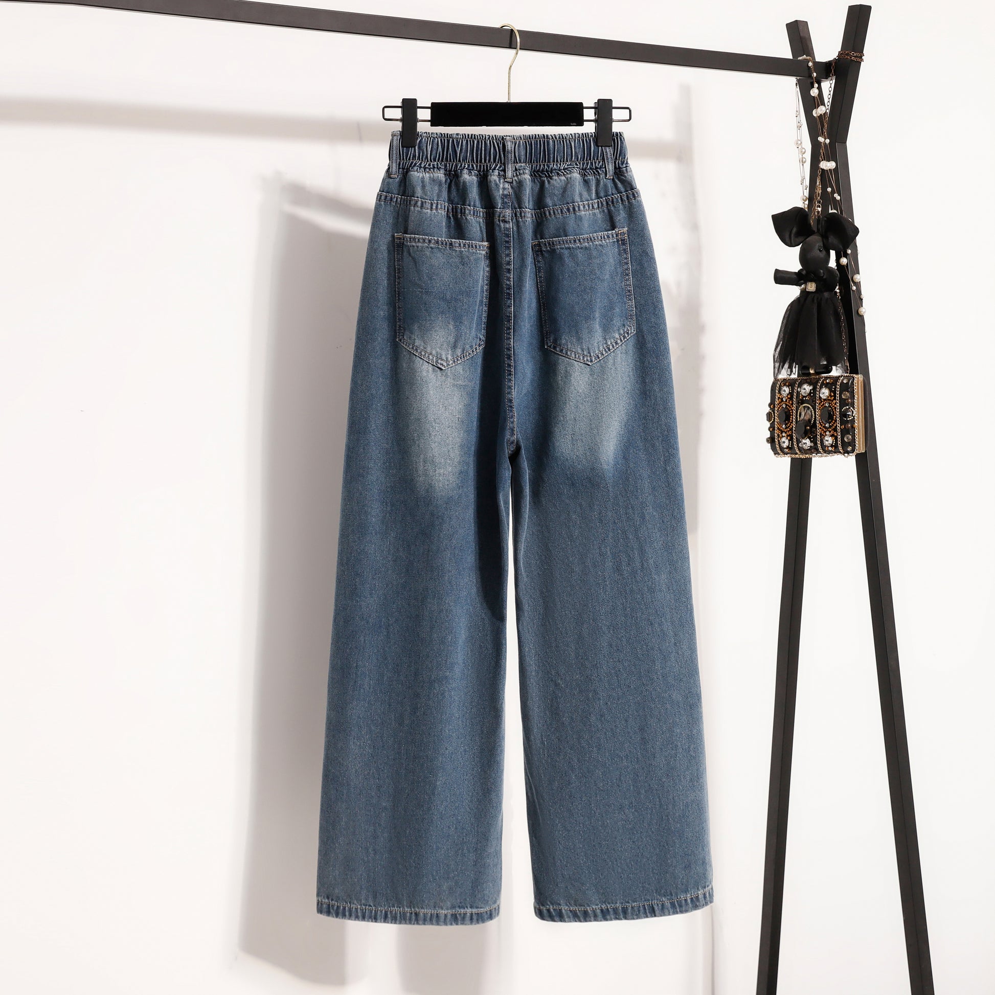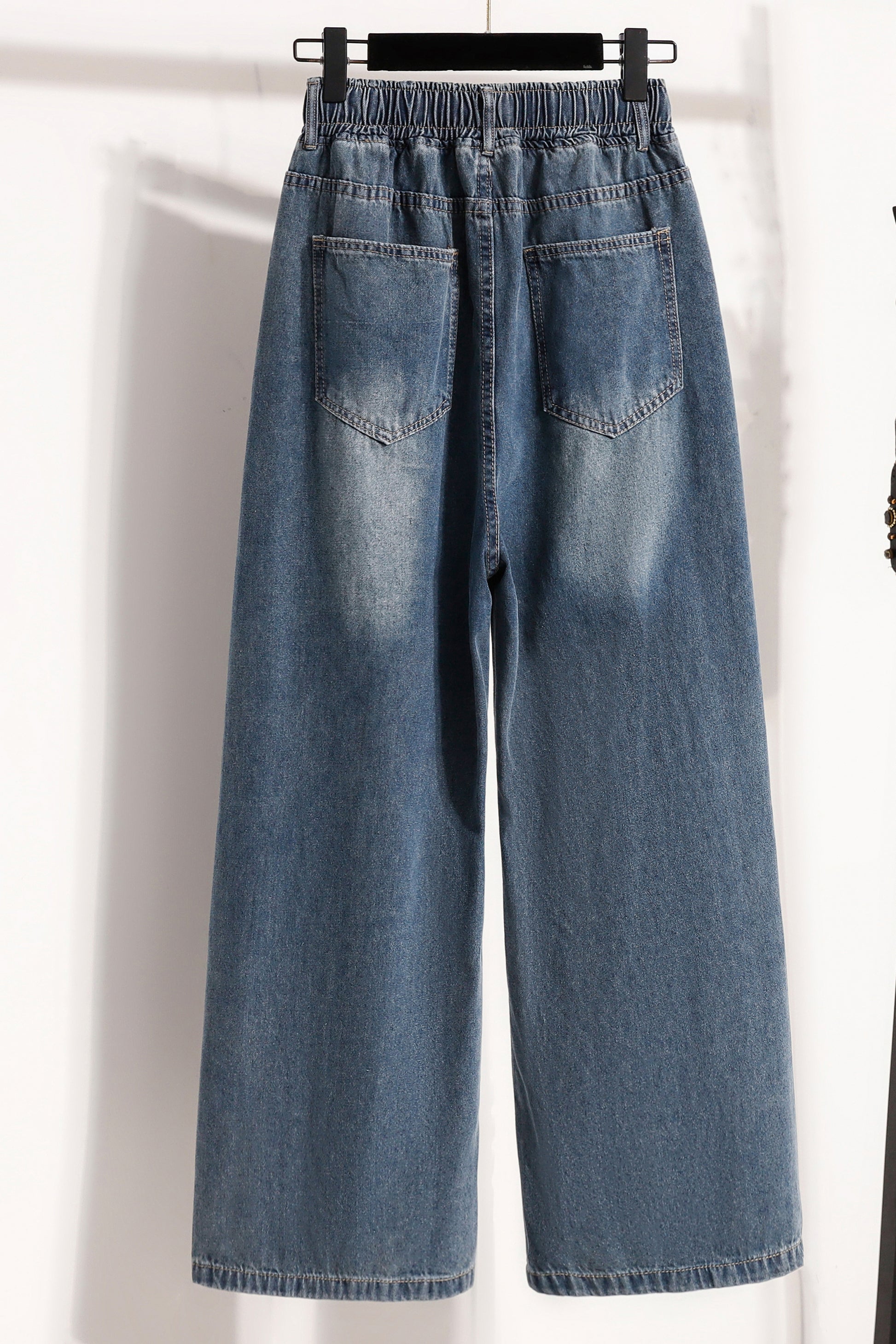 - Features: Fashion jeans,Casual loose,Elastic Waist, denim, Baggy Wide Leg, Classic denim, flared, Double pockets. If you love wide-leg baggy jeans, this is definitely the best choice for you.