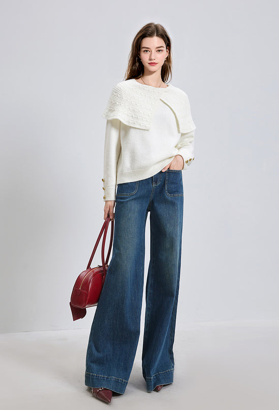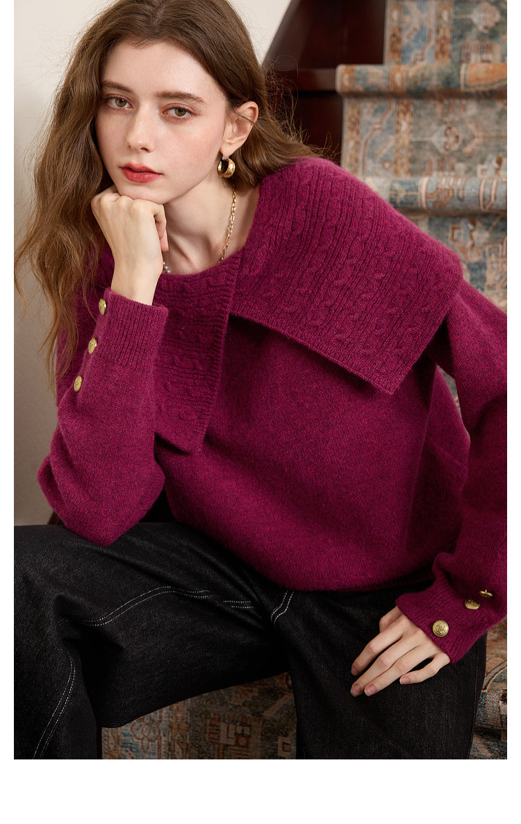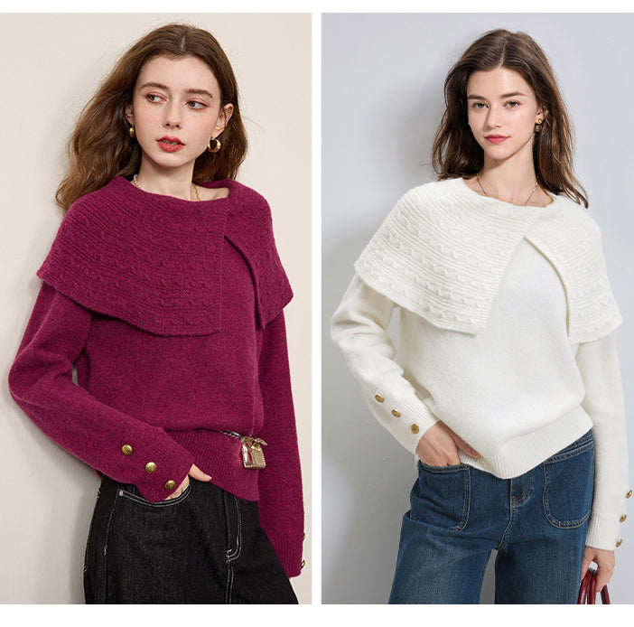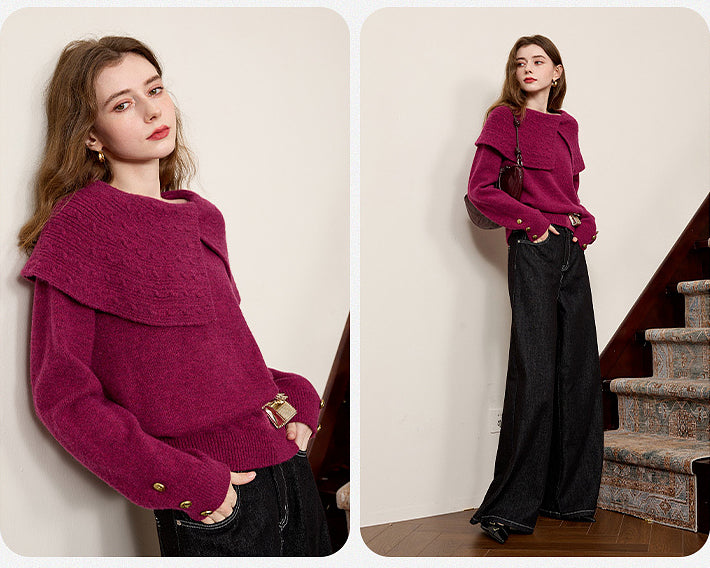 Women's Asymmetric Lapel Sweater Chunky Knitwear Top