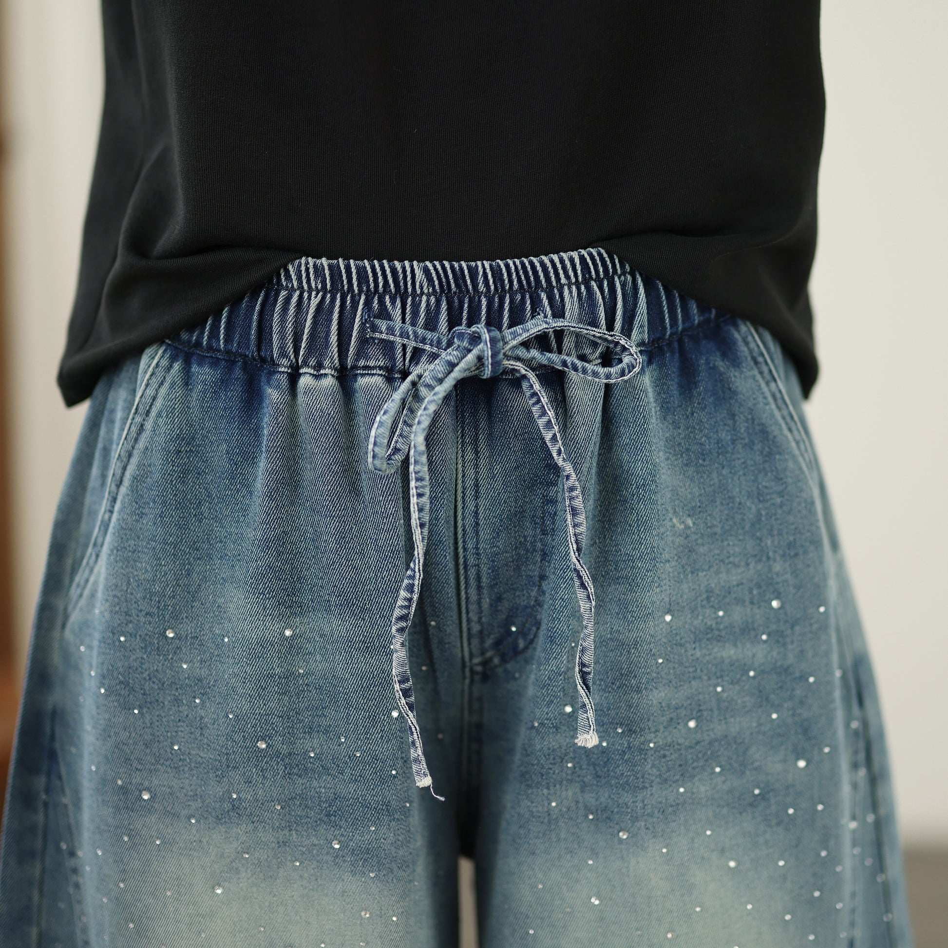 Women's Baggy Jeans Drawstring Waist Wide Leg Denim Pants