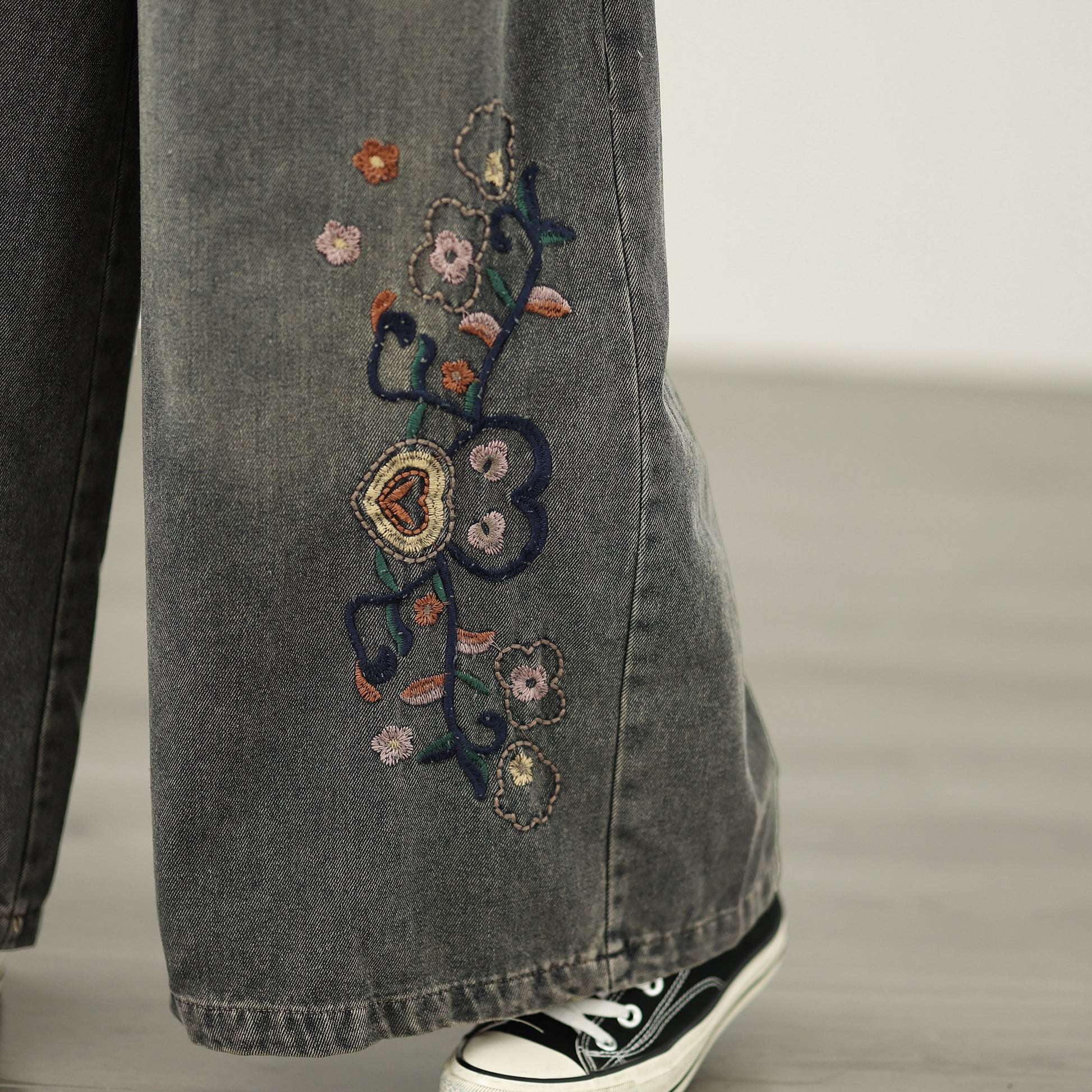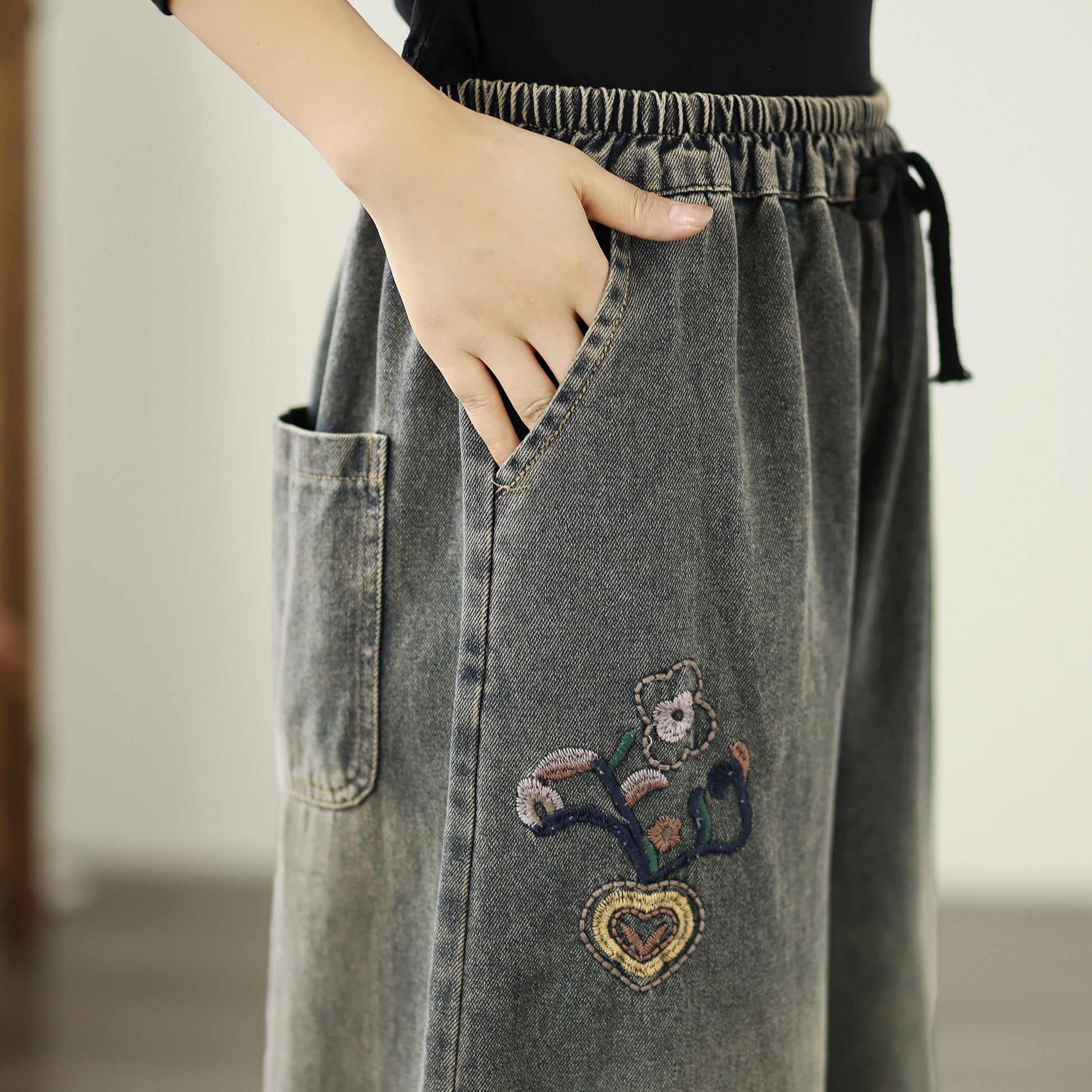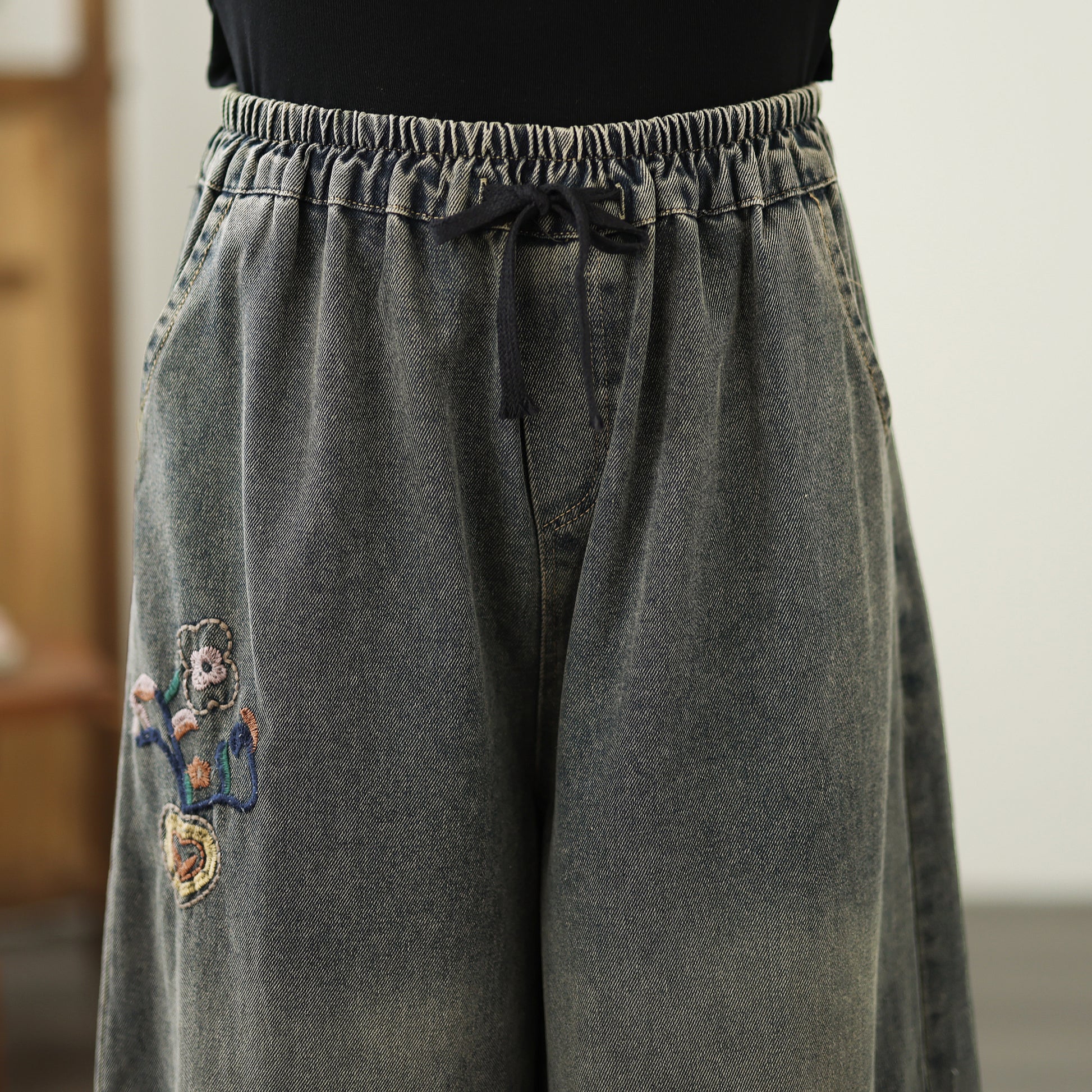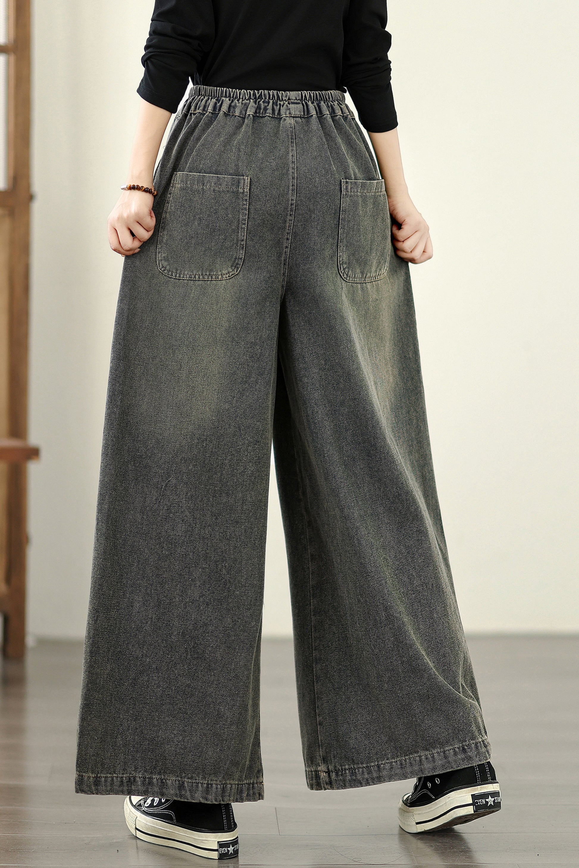 • Features: Fashion baggy jeans,Embroidery pattern,Casual loose,Drawstring elastic waisted,Wide Leg denim, Classic denim, flared jeans, pockets on the front and back. If you love wide-leg baggy jeans, this is definitely the best choice for you.