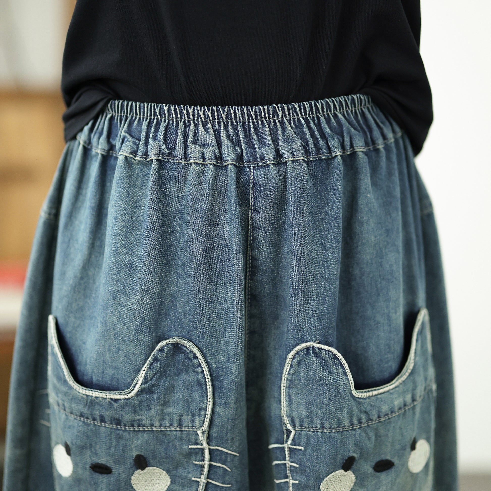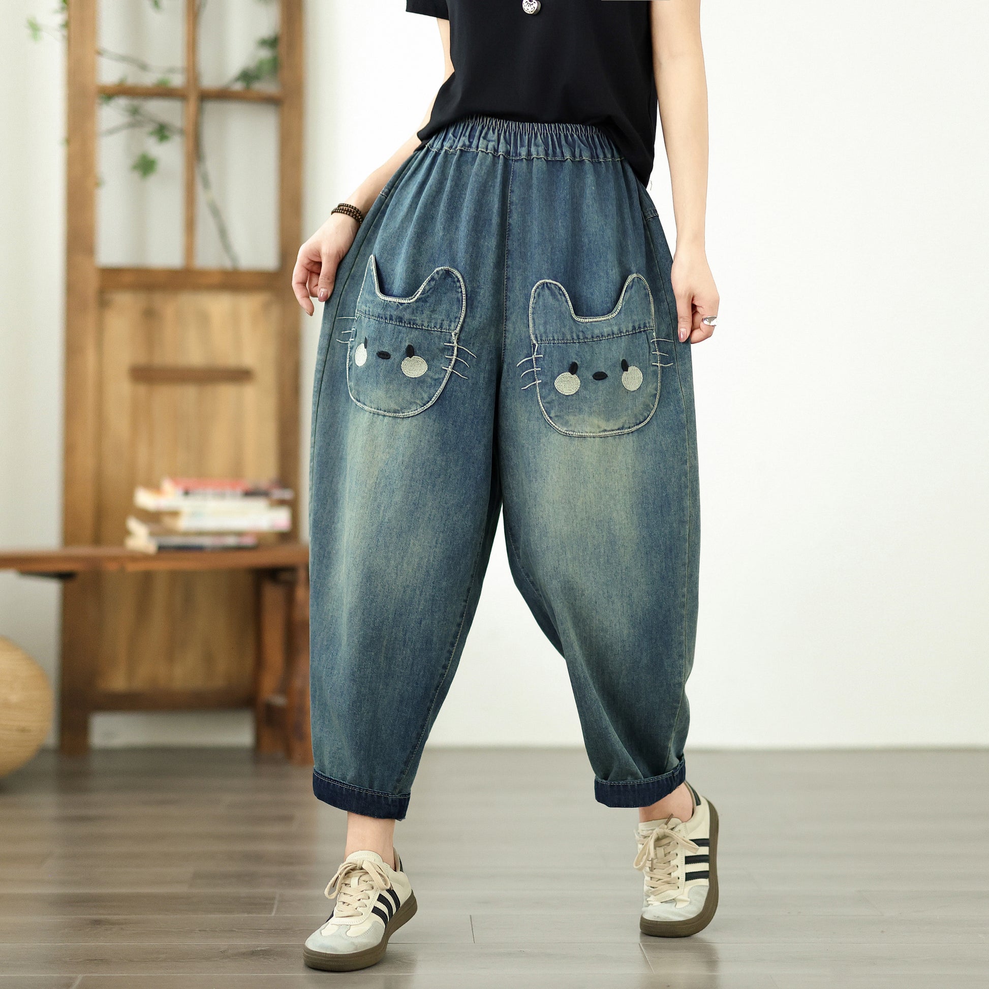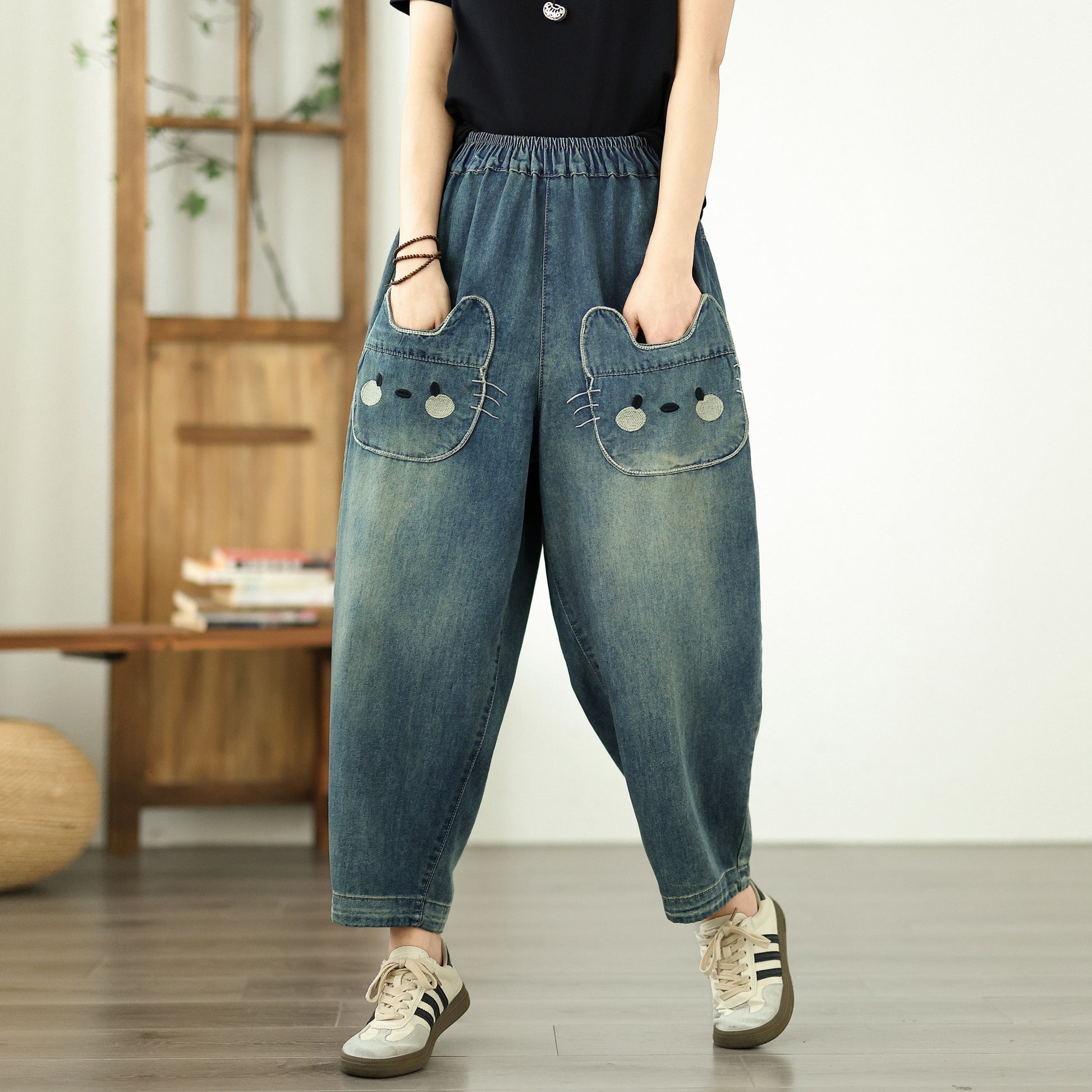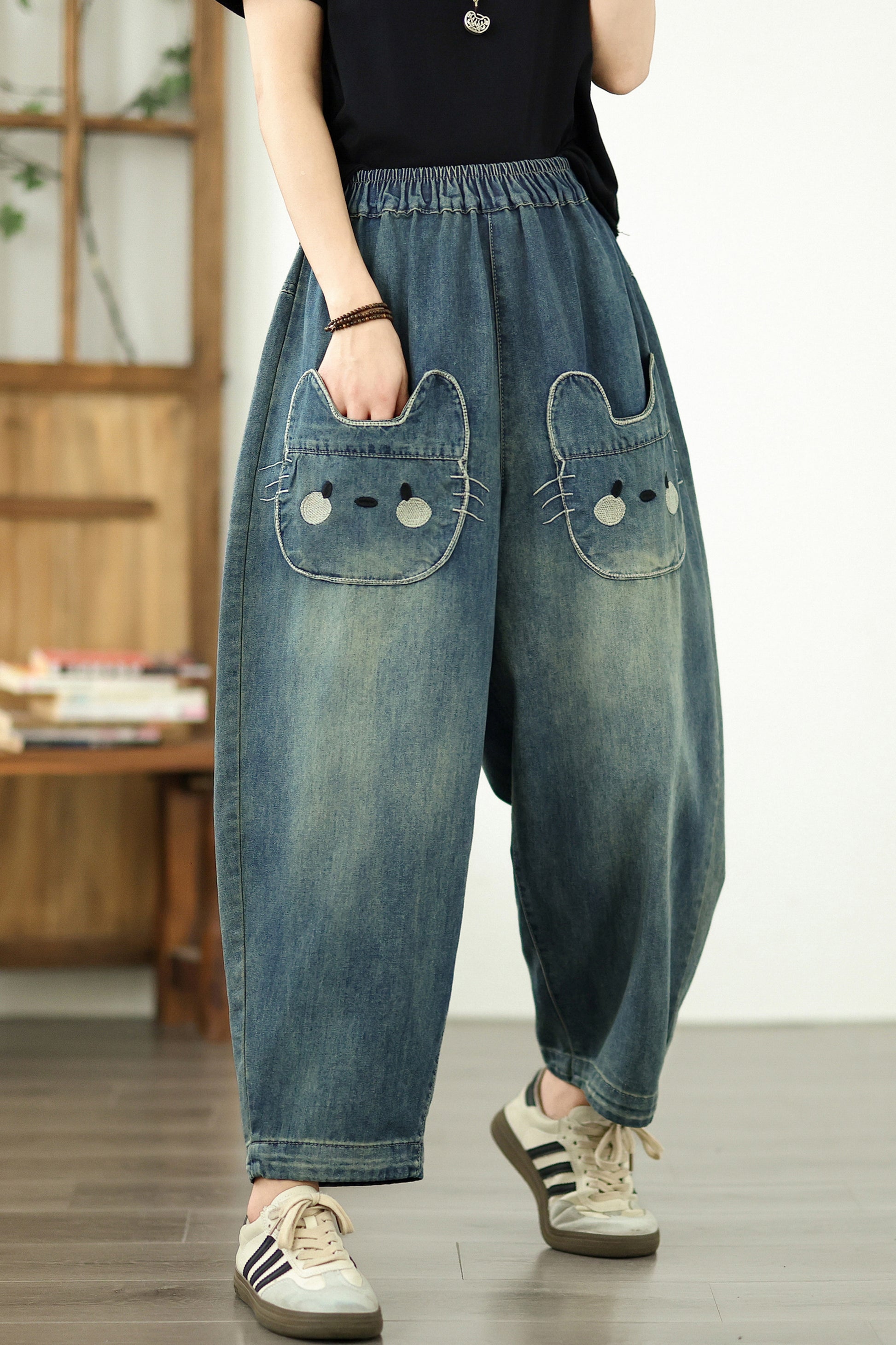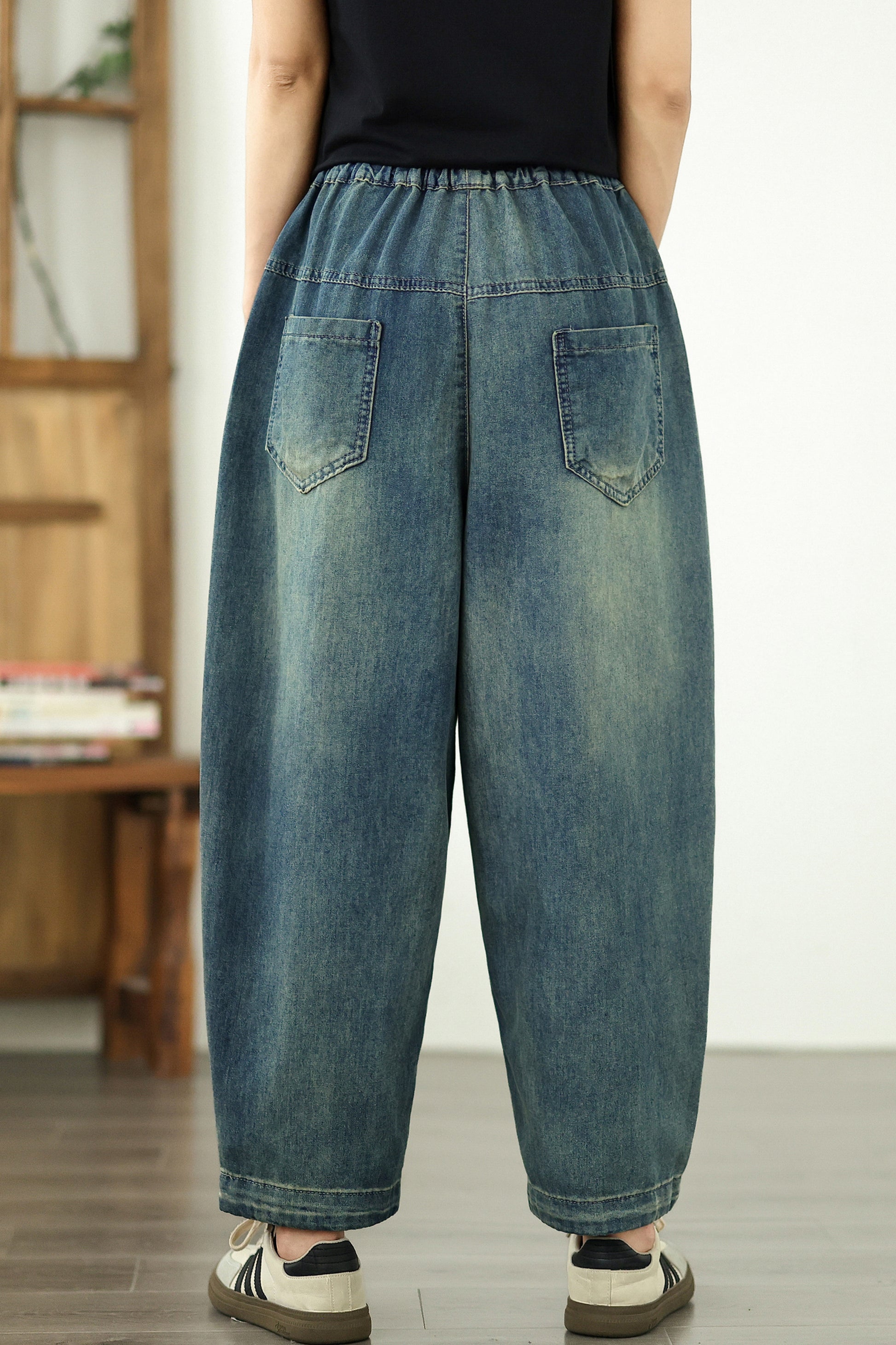 • Features: Elastic Waist,denim,Side Pockets,Length pants, Classic denim,Hip-hop,Casual Loose fit.