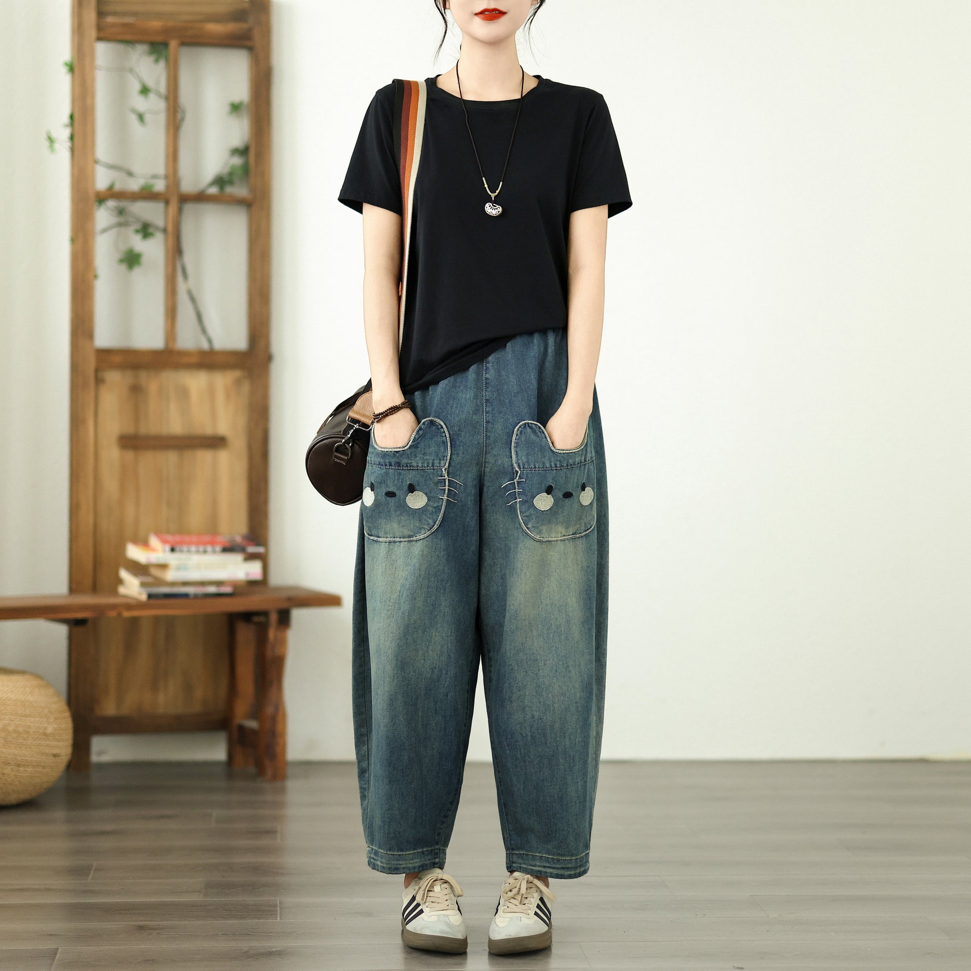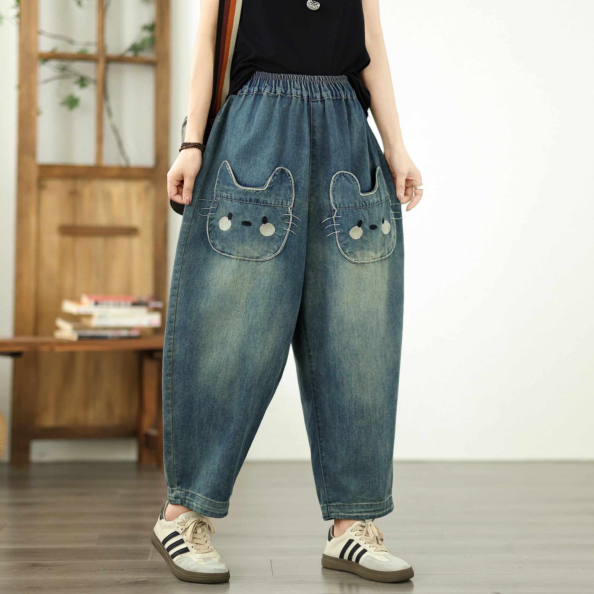 Women's Baggy Jeans Pattern Elastic Waist Pants