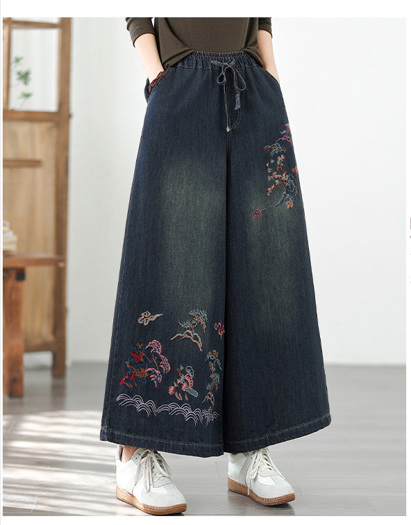 Women's Baggy Wide Leg Jeans Embroidery Pants