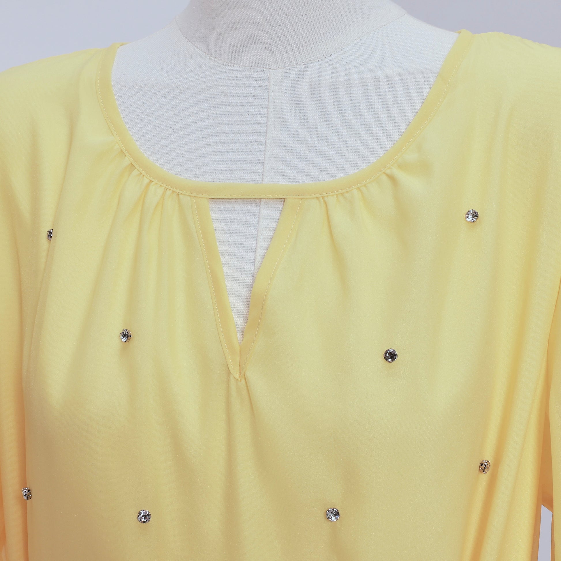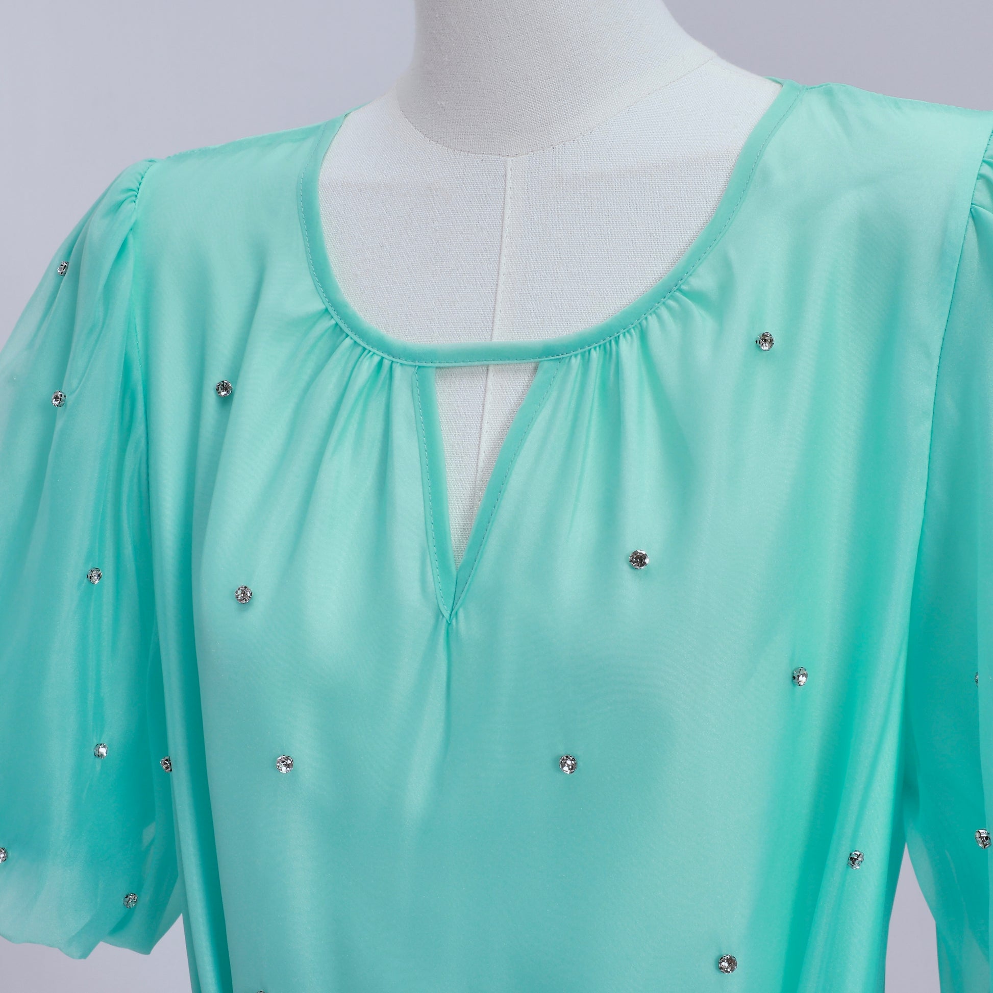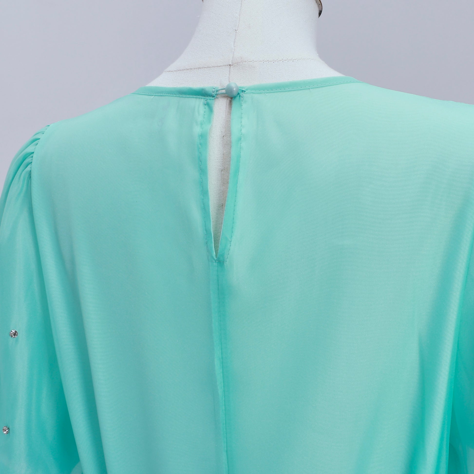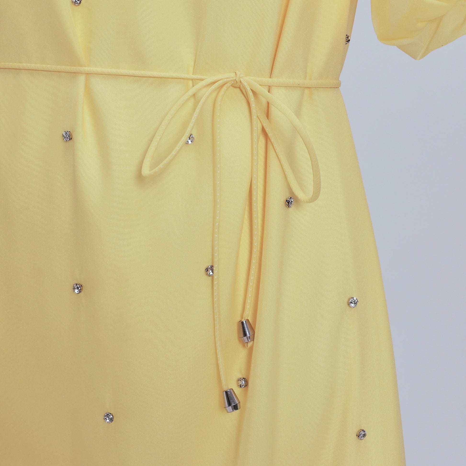 - Features: Beaded, cut out round neck, puffed sleeves, ruffled hem, loose, belt, summer casual dress.